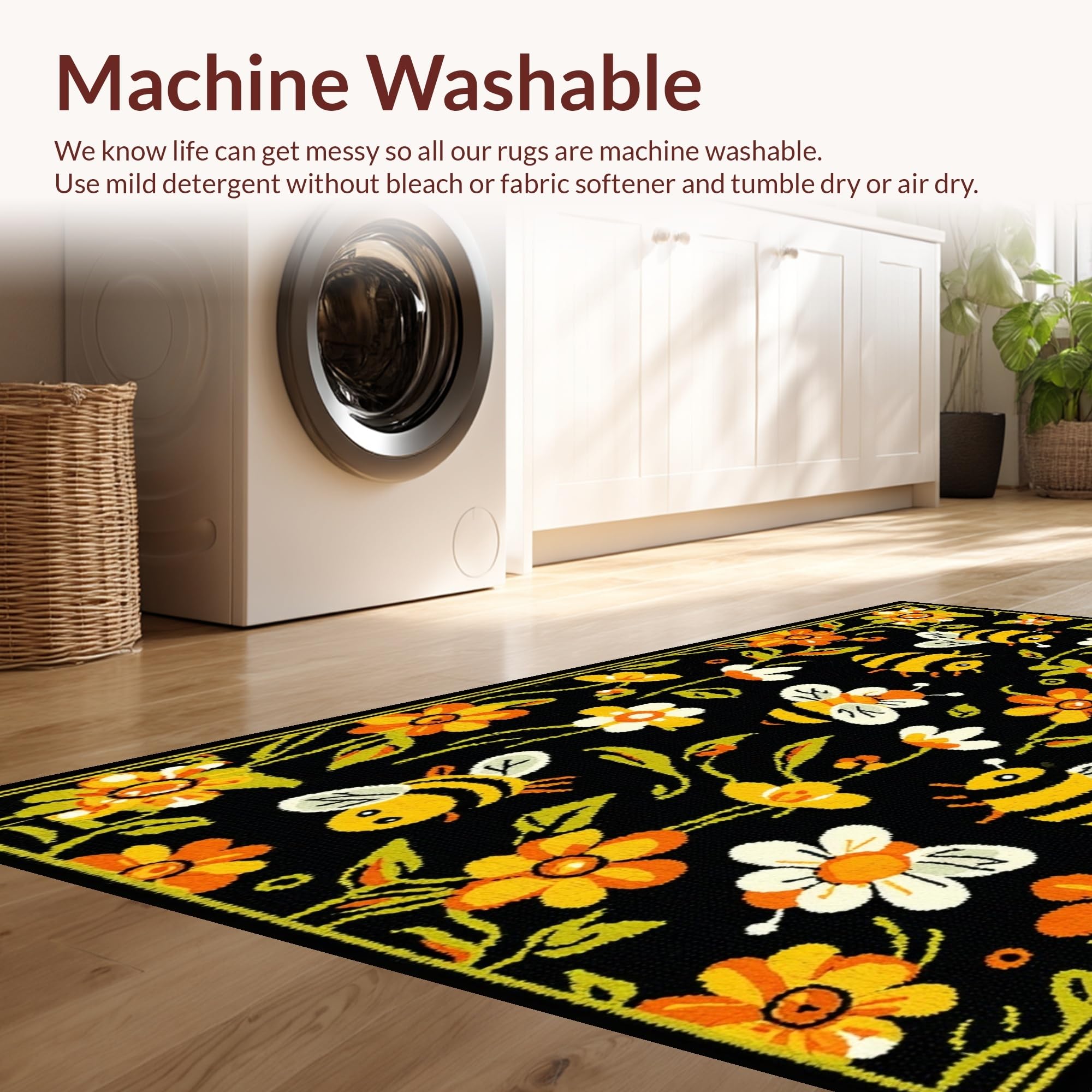 - Machine Washable: Our rugs can be easily thrown in the wash machine.