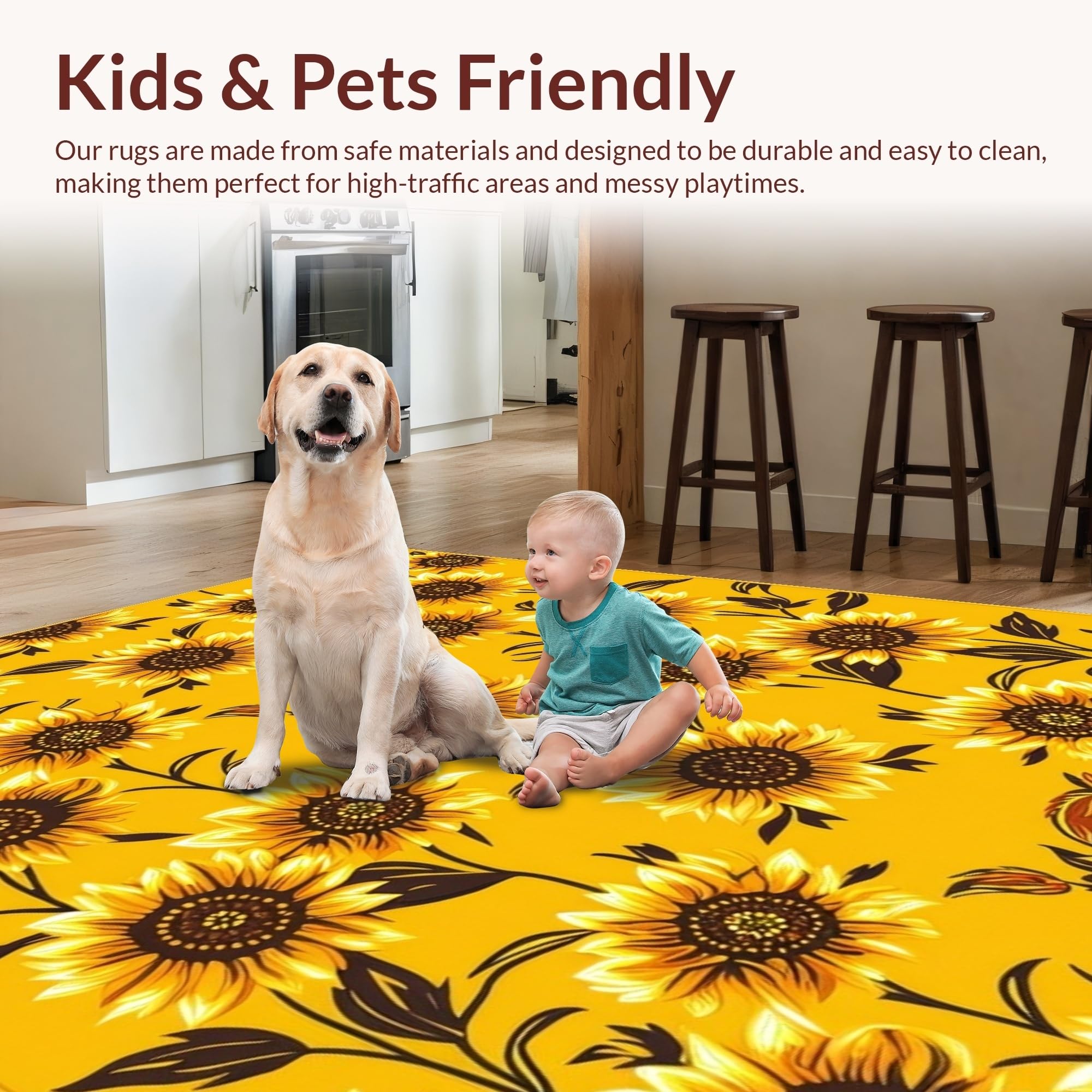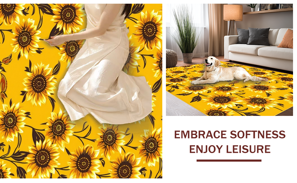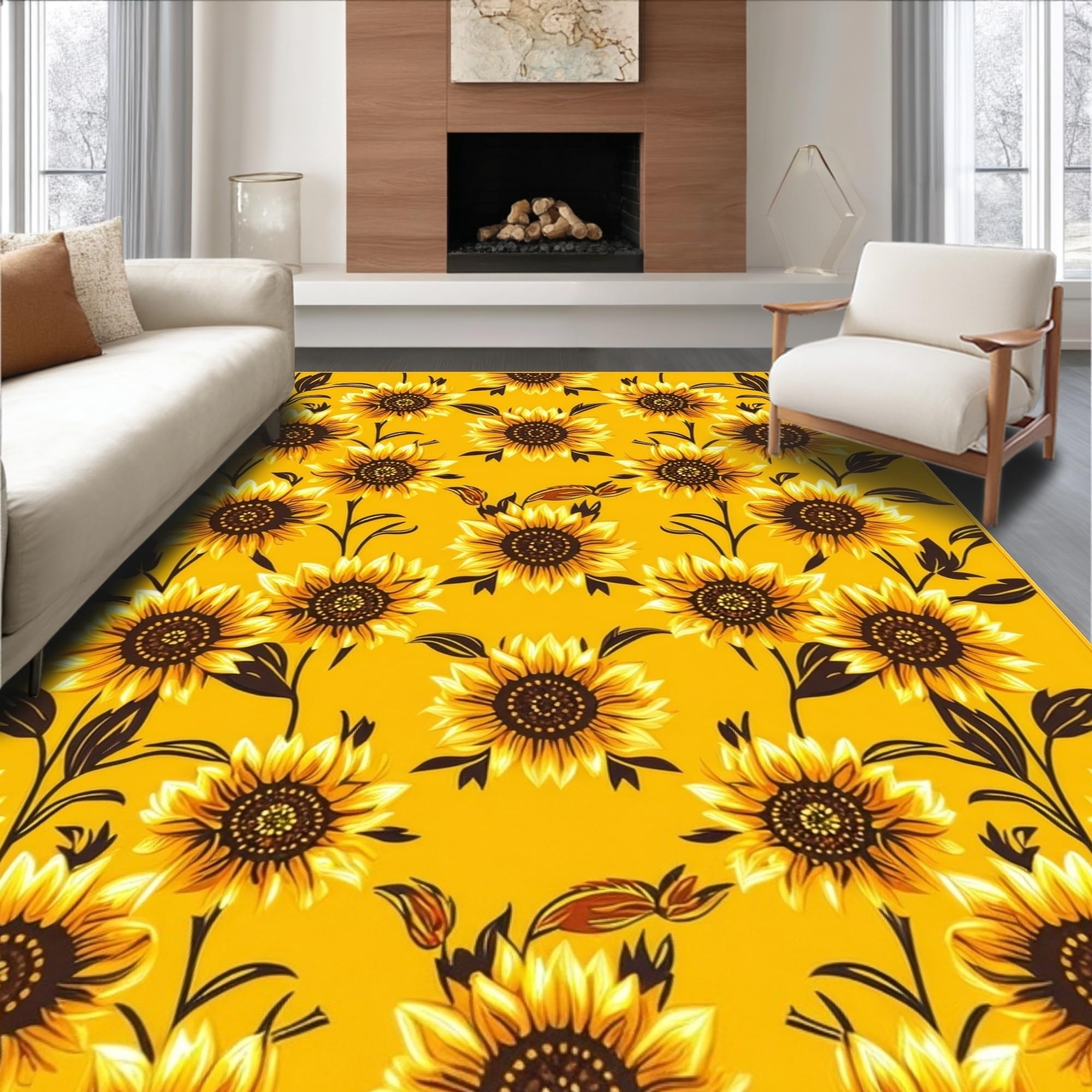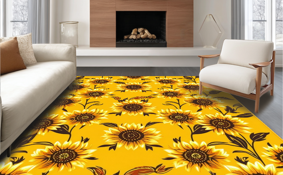 Ultra Soft Area Rug, Non Slip, Stain Resistant, Washable Area Rugs for Living Room, Bedroom, Elegant Nature-Inspired Floral Art(Yellow) Overview: