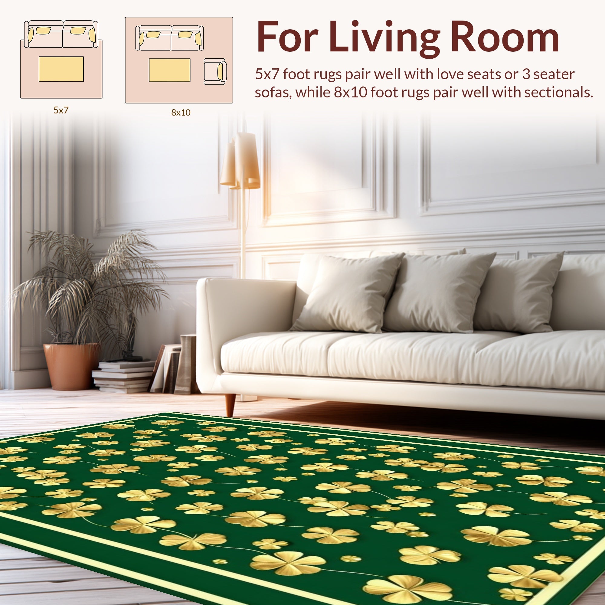 Flatwoven High Traffic Area Rug, Elegant Nature Inspired, Non Slip, Stain Resistant, Washable Area Rugs for Living Room, Bedroom (Green) Overview: