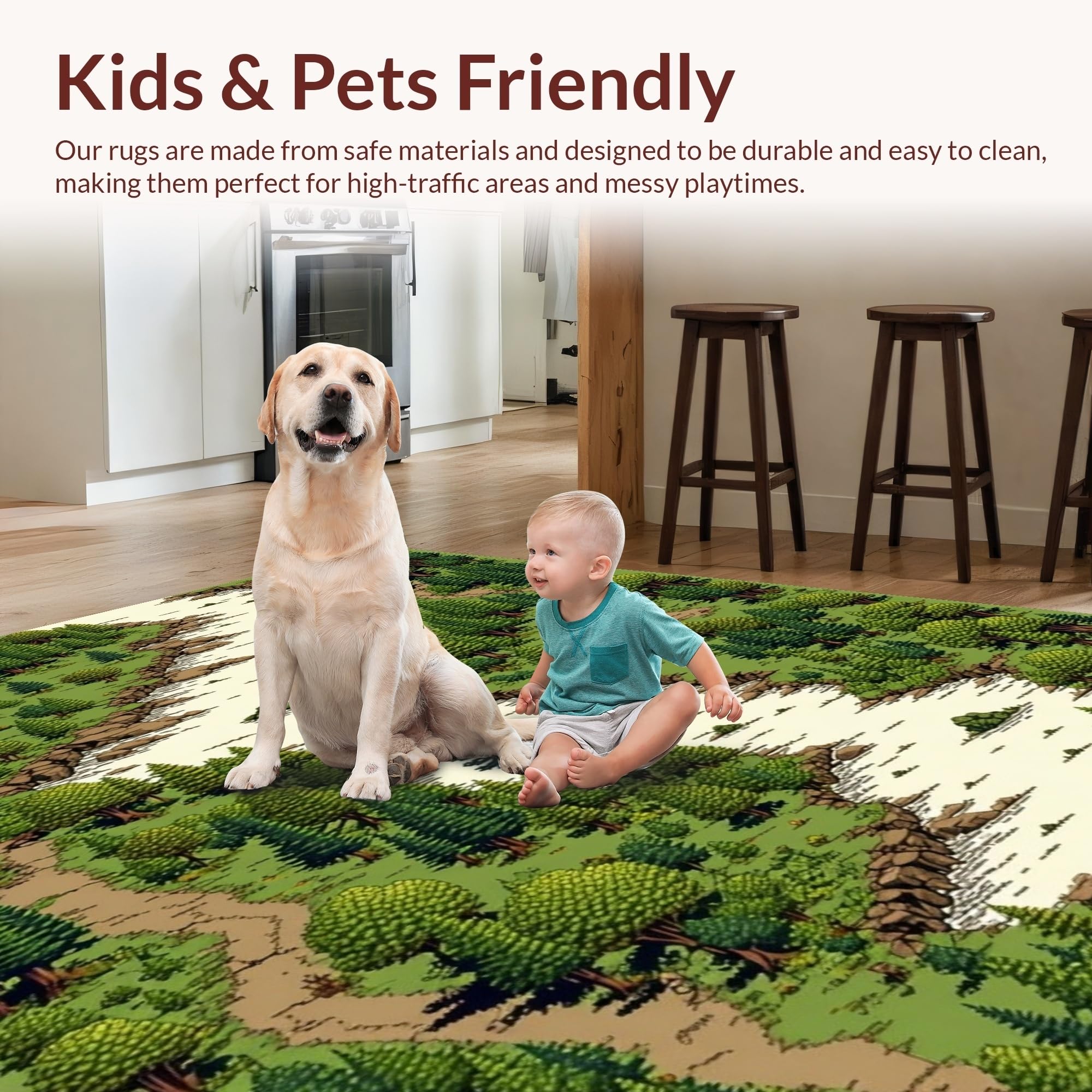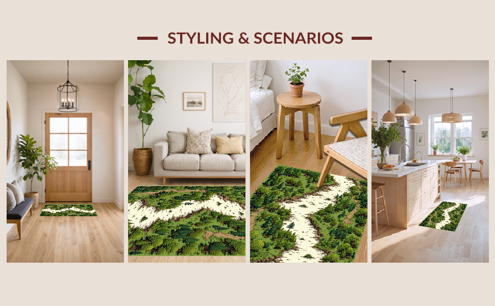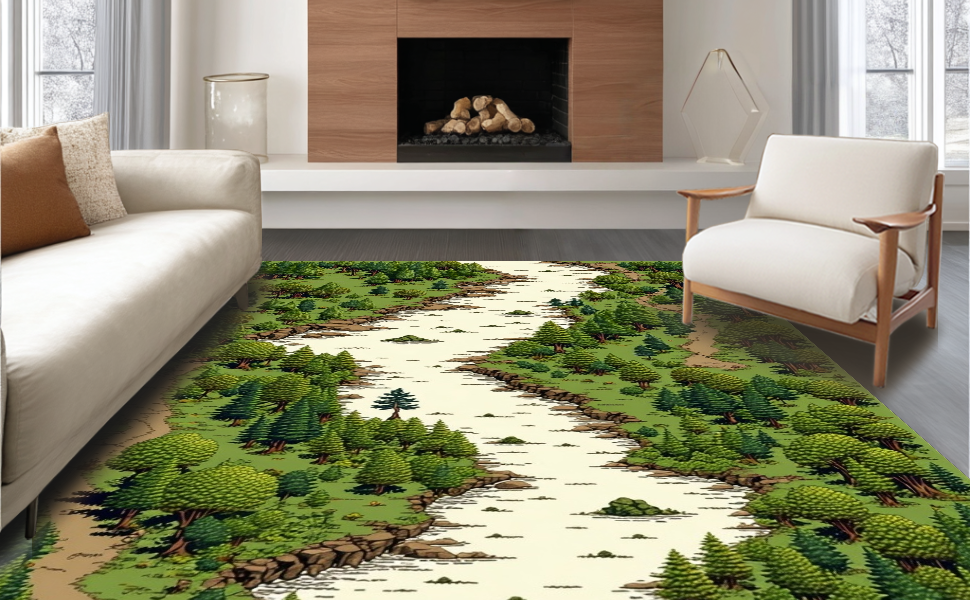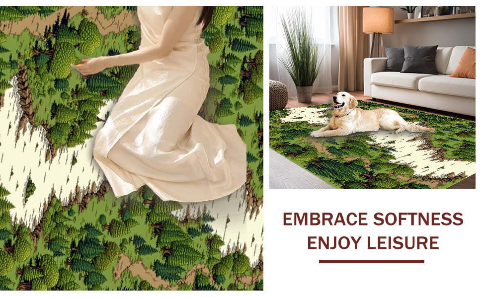 Ultra Soft Area Rug, Non Slip, Stain Resistant, Washable Area Rugs for Living Room, Bedroom, Elegant Nature-Inspired Play Surface(Green) Overview: