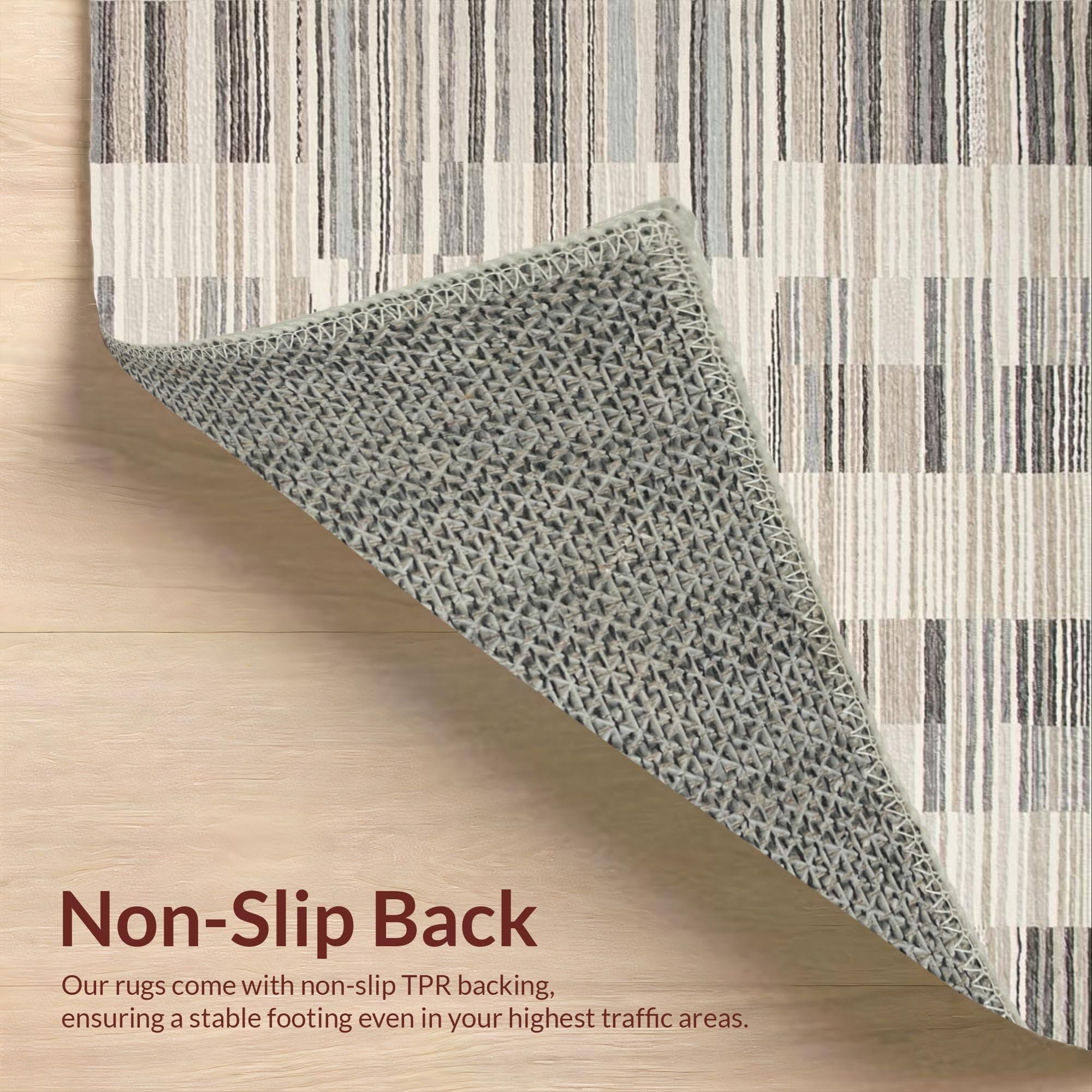 Ultra Soft Area Rug, Non Slip, Stain Resistant, Washable Area Rugs for Living Room, Bedroom, Elegant Neutral Tiled Arrangement(Gray) Overview: