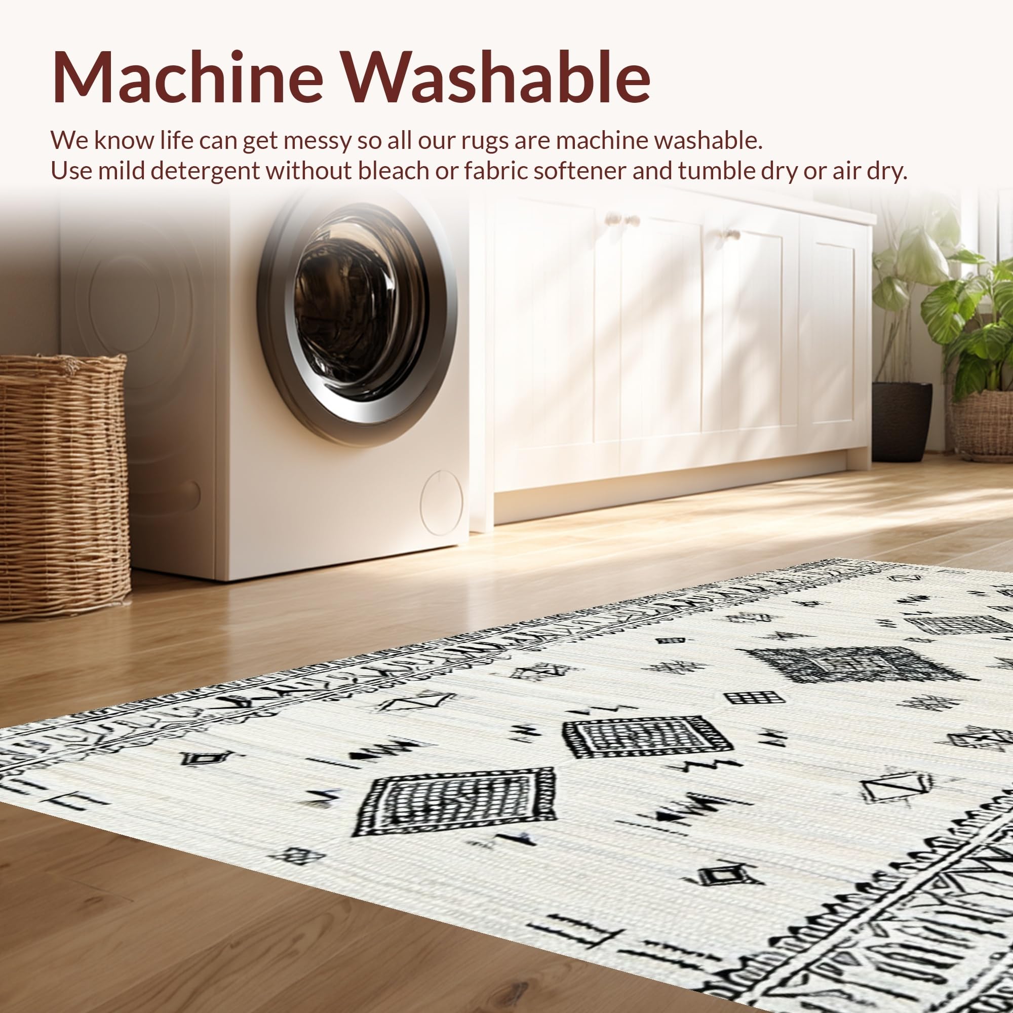 - Machine Washable: Our rugs can be easily thrown in the wash machine.