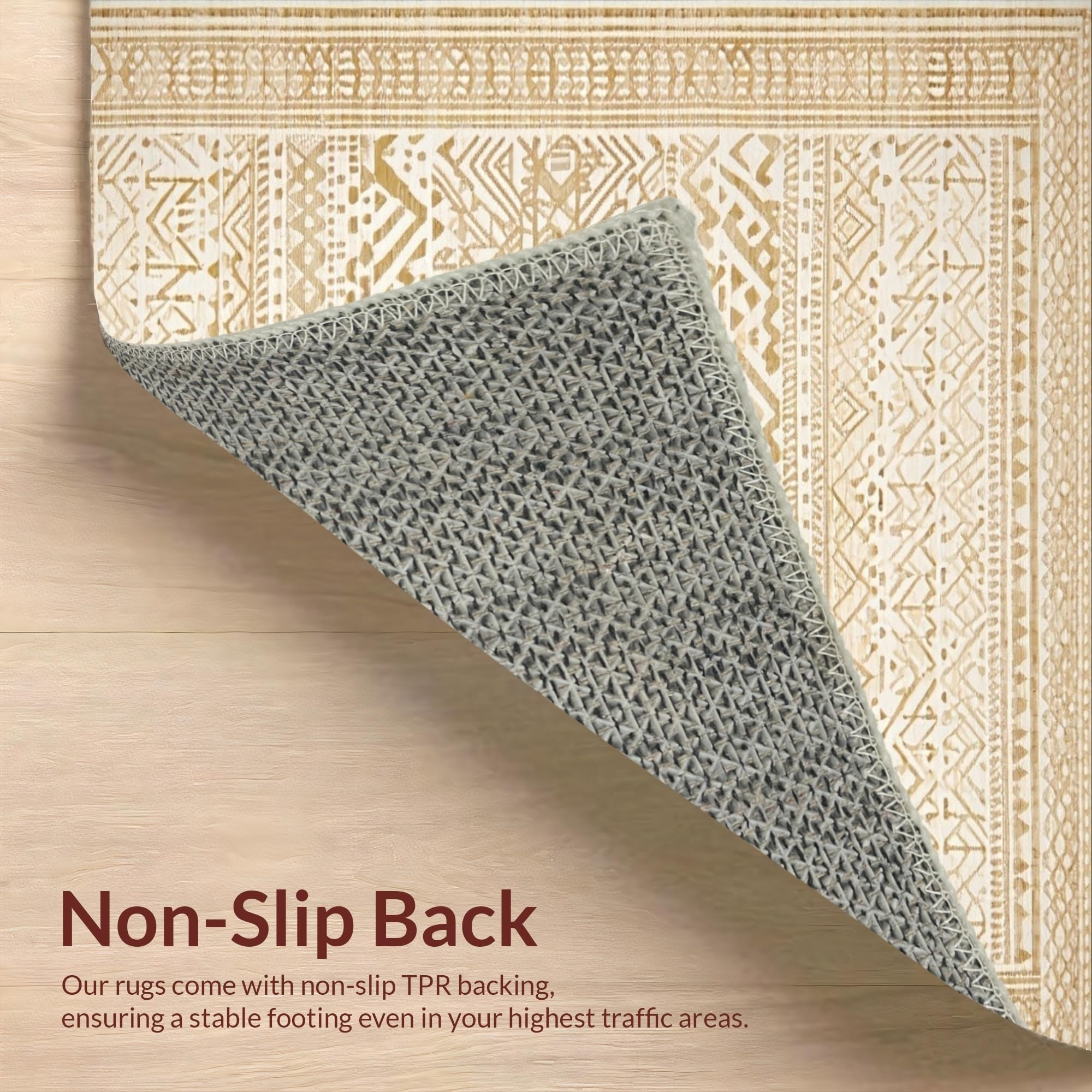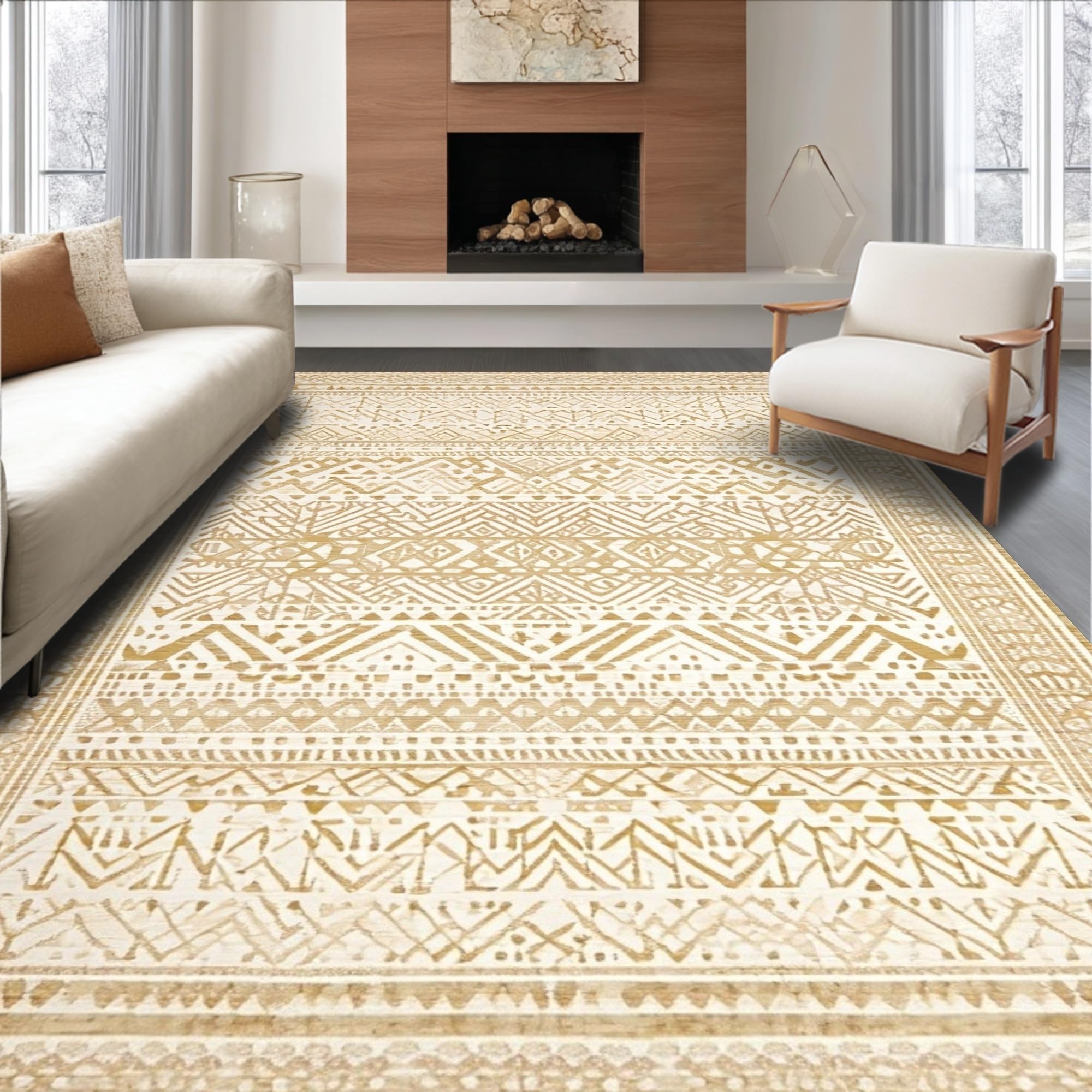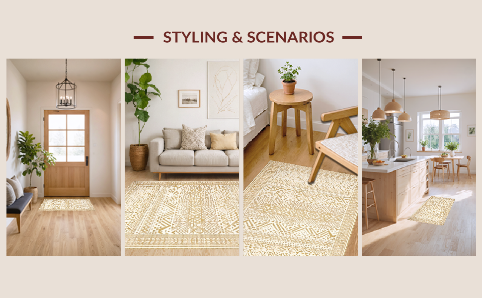 Ultra Soft Area Rug, Non Slip, Stain Resistant, Washable Area Rugs for Living Room, Bedroom, Elegant Ogee Style Abstract Arrangement(Beige) Overview: