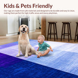 Ultra Soft Area Rug, Non Slip, Stain Resistant, Washable Area Rugs for Living Room, Bedroom, Elegant Ombre Flowing Motif(Blue) Overview: