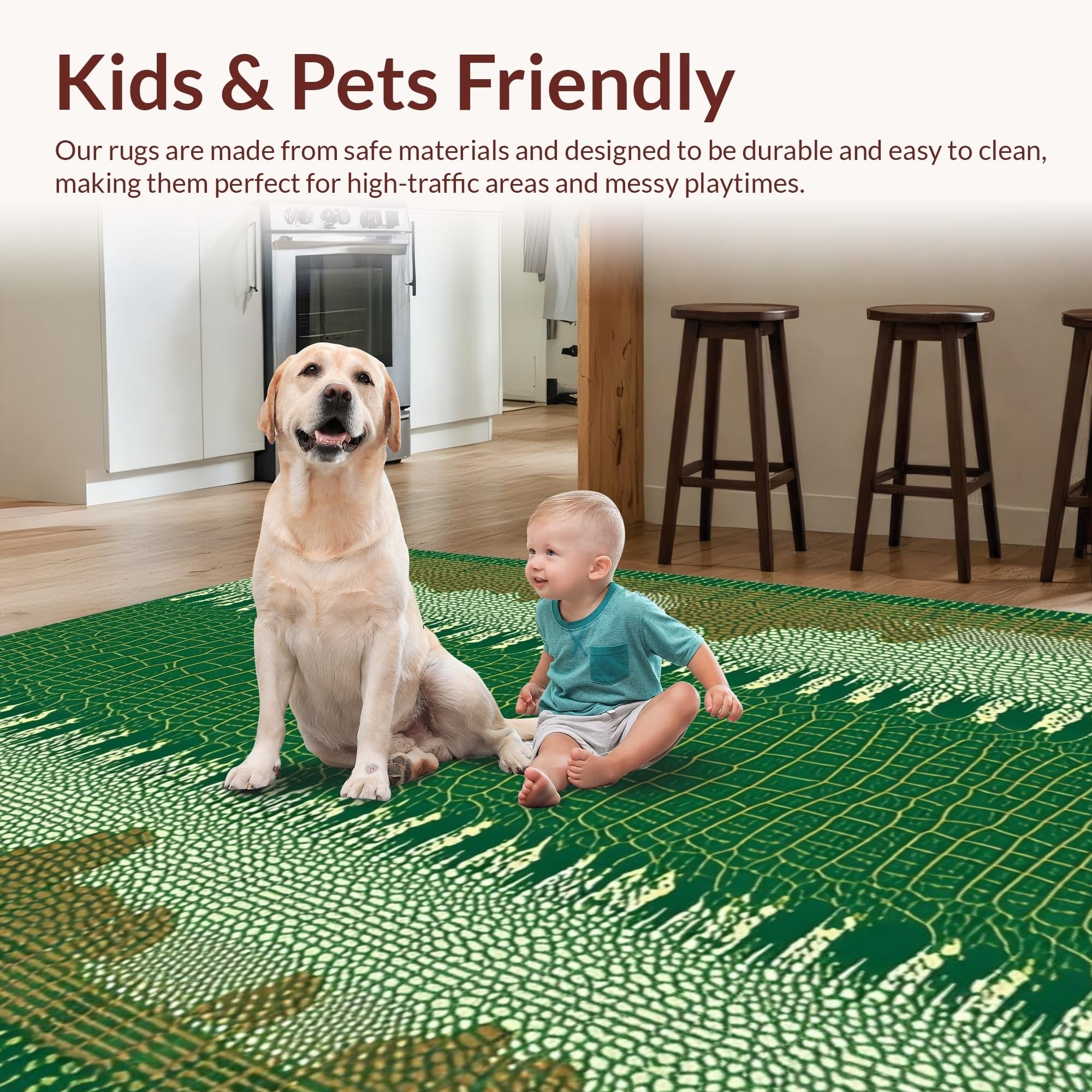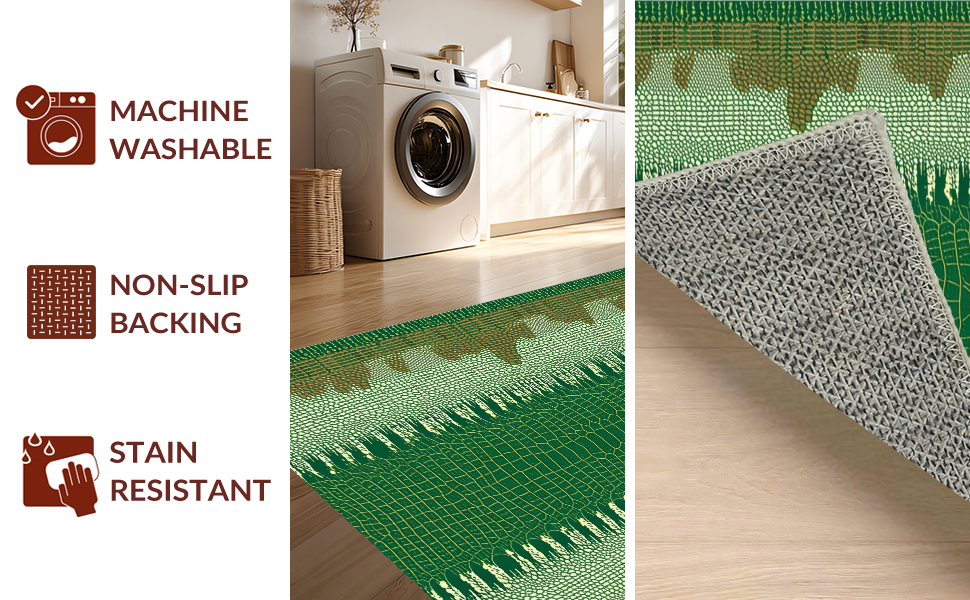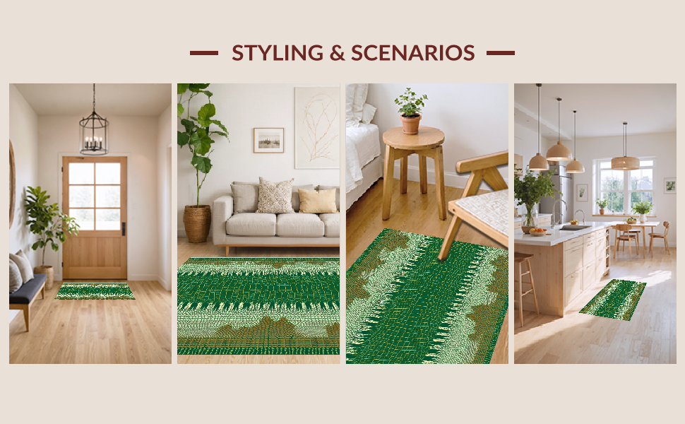 Ultra Soft Area Rug, Non Slip, Stain Resistant, Washable Area Rugs for Living Room, Bedroom, Elegant Organic Print Home Accent(Green) Overview: