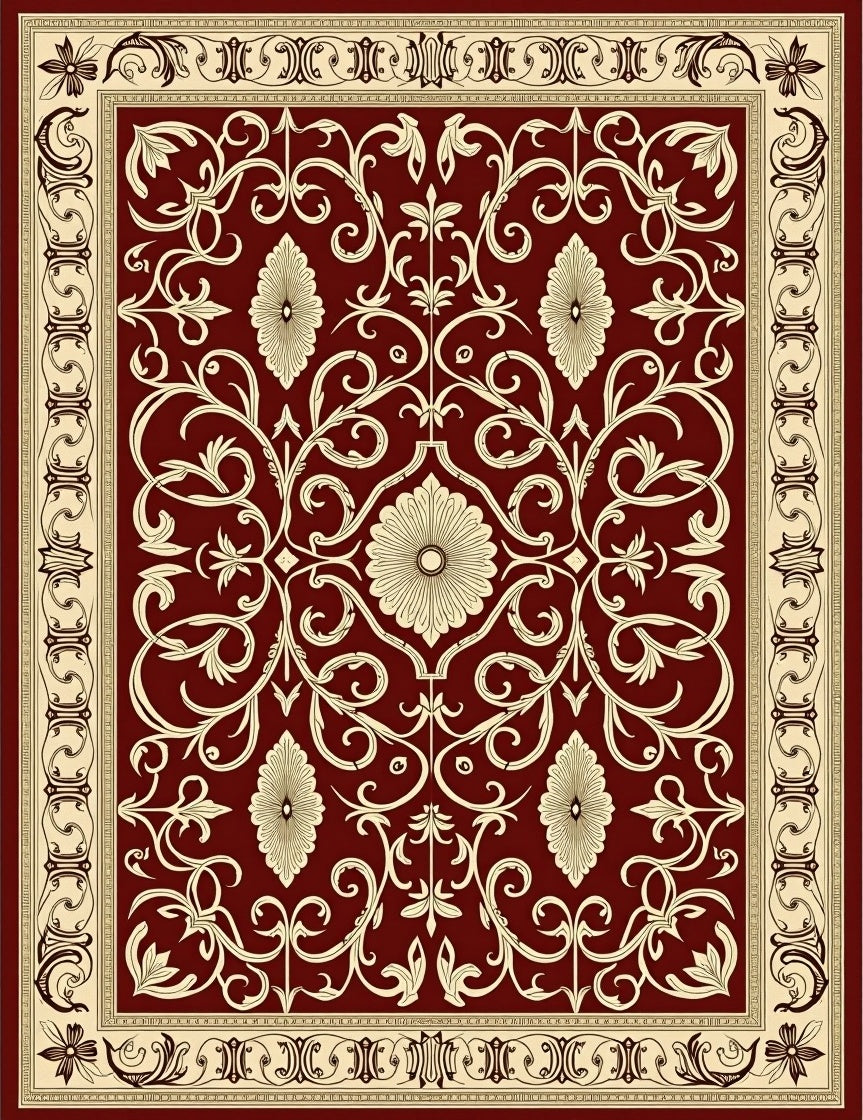 Elegant Ornamental Lattice with Repetitive Curved Vine and Floral(Red)