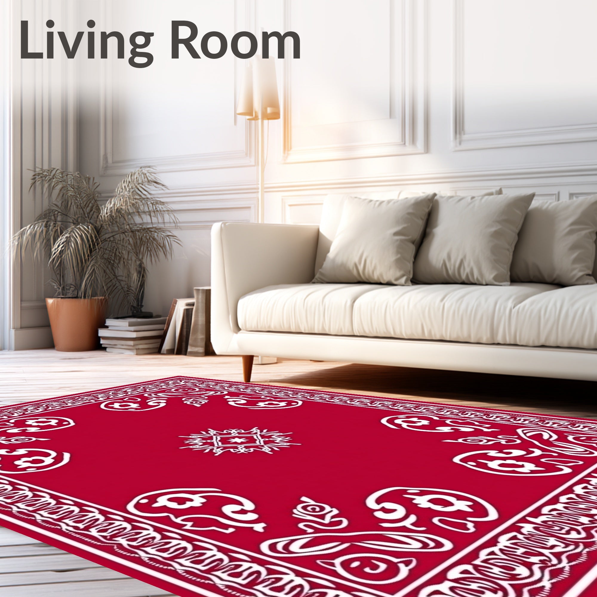 Ultra Soft Area Rug, Non Slip, Stain Resistant, Washable Area Rugs for Living Room, Bedroom, Elegant Paisley Swirl Celebration Collection(Red) Overview: