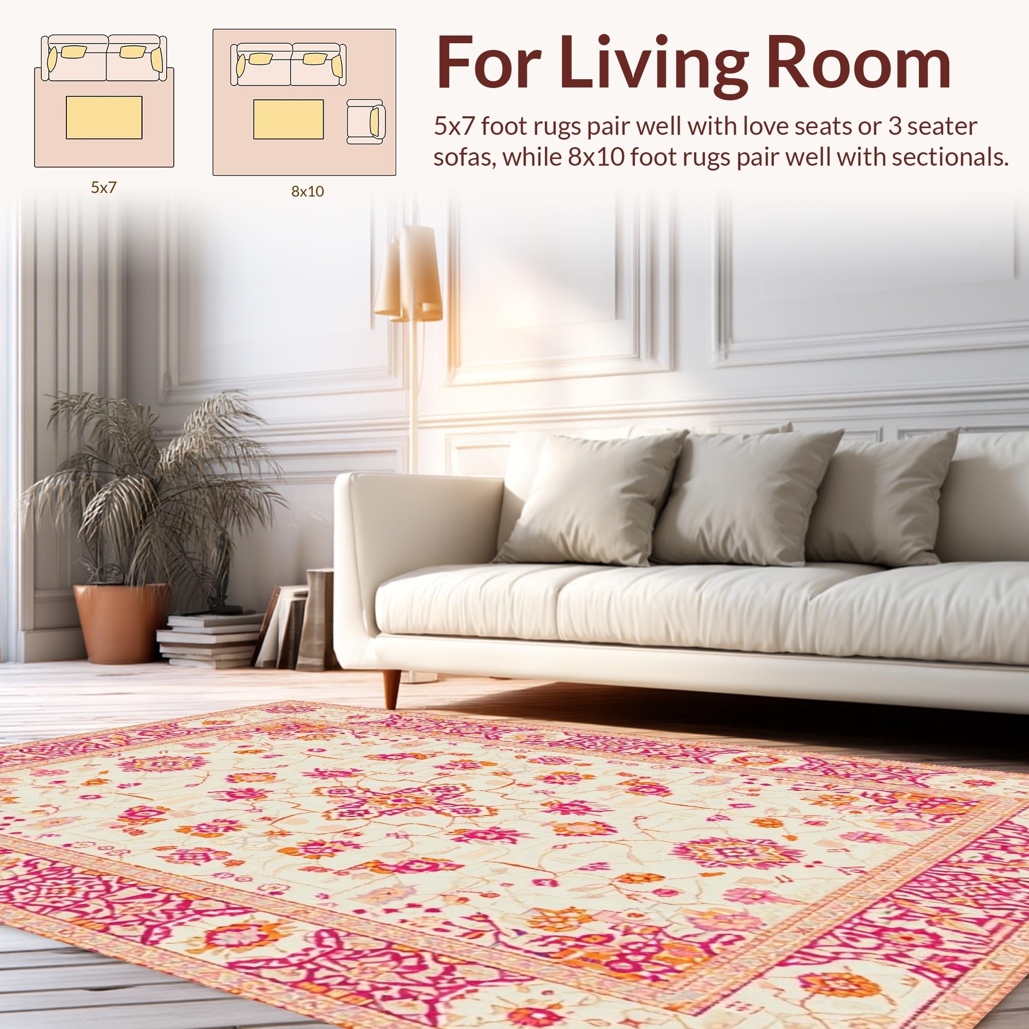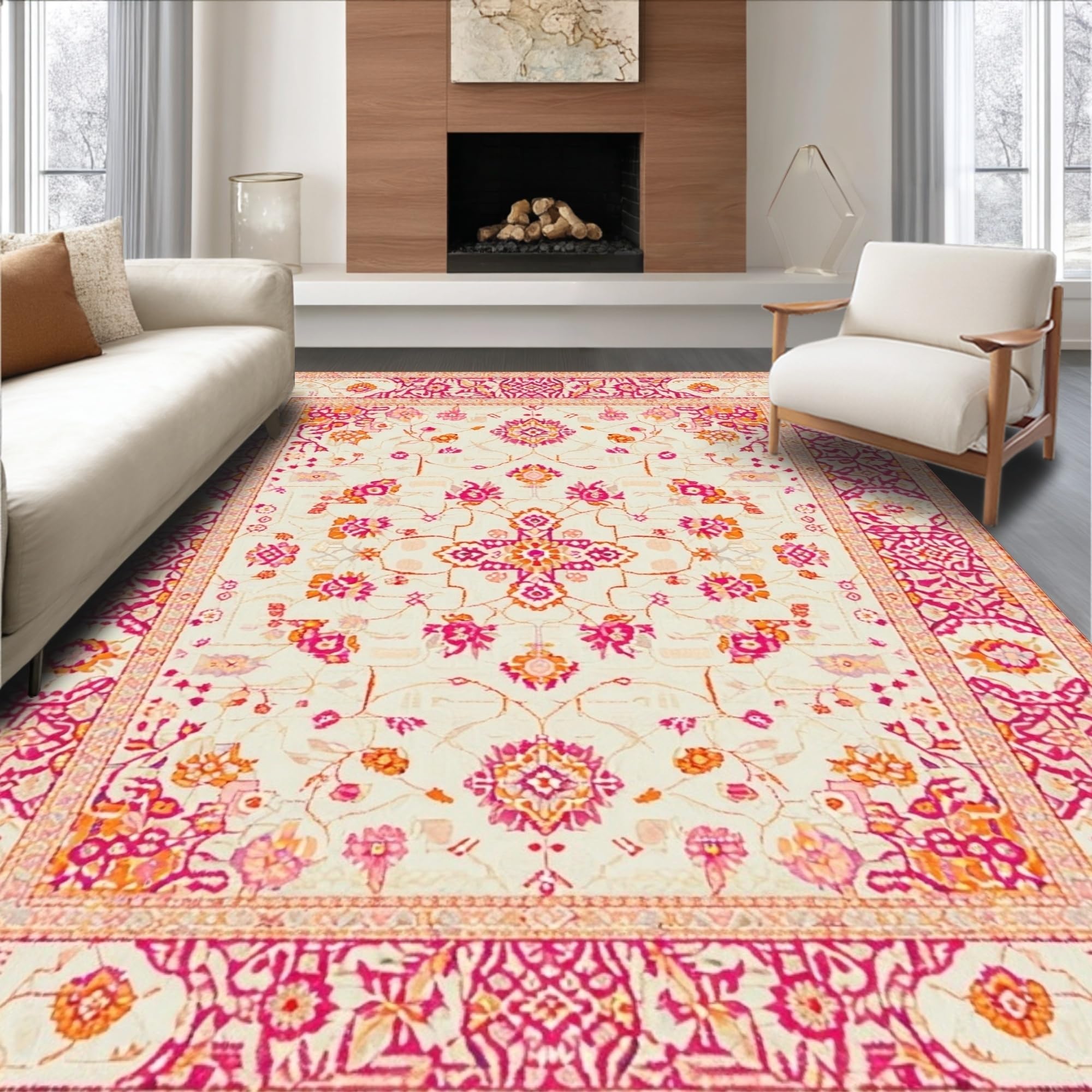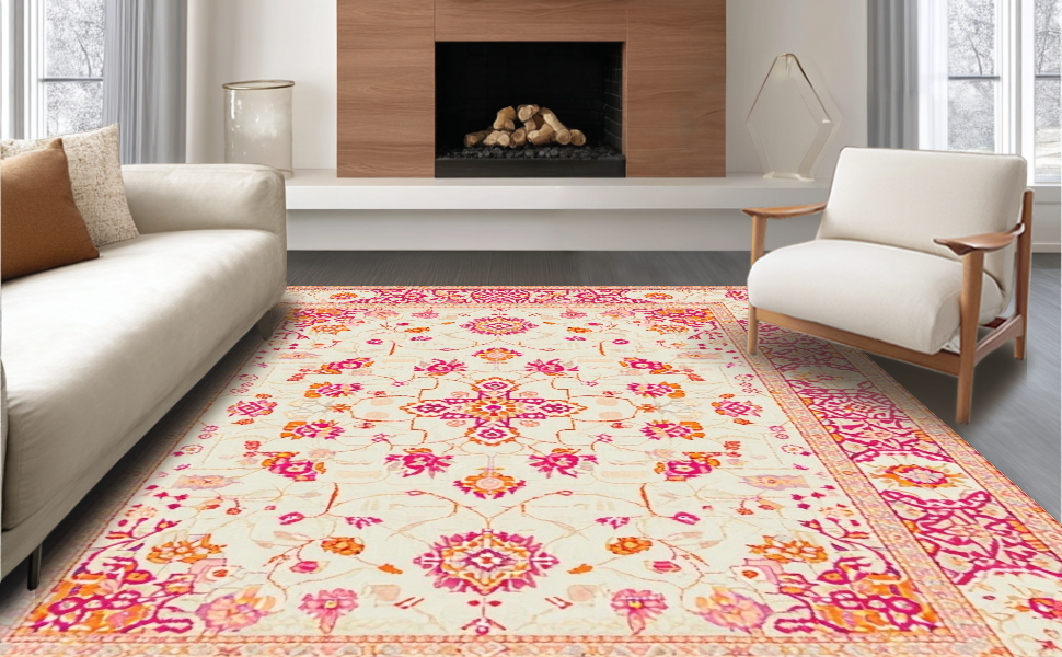 Ultra Soft Area Rug, Non Slip, Stain Resistant, Washable Area Rugs for Living Room, Bedroom, Elegant Pastel Bloom Composition(Ivory) Overview: