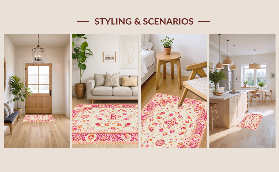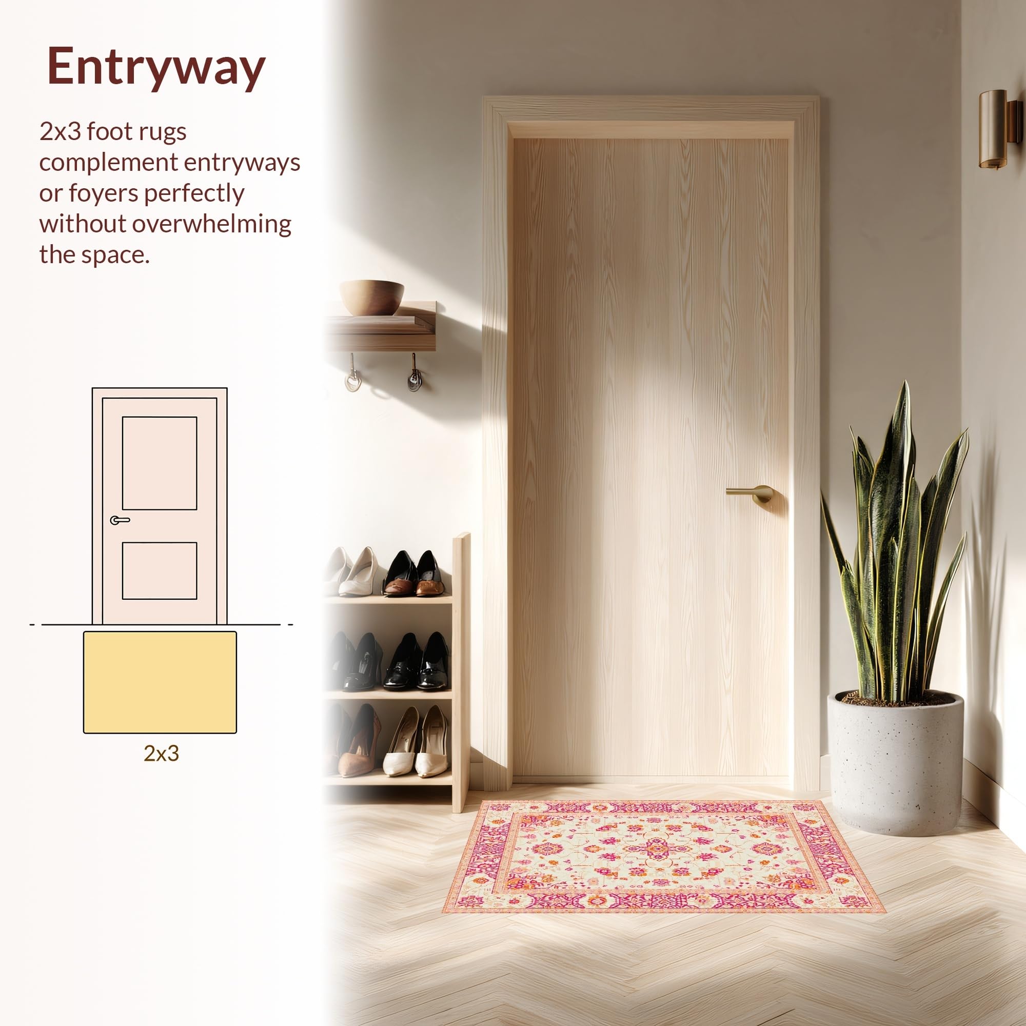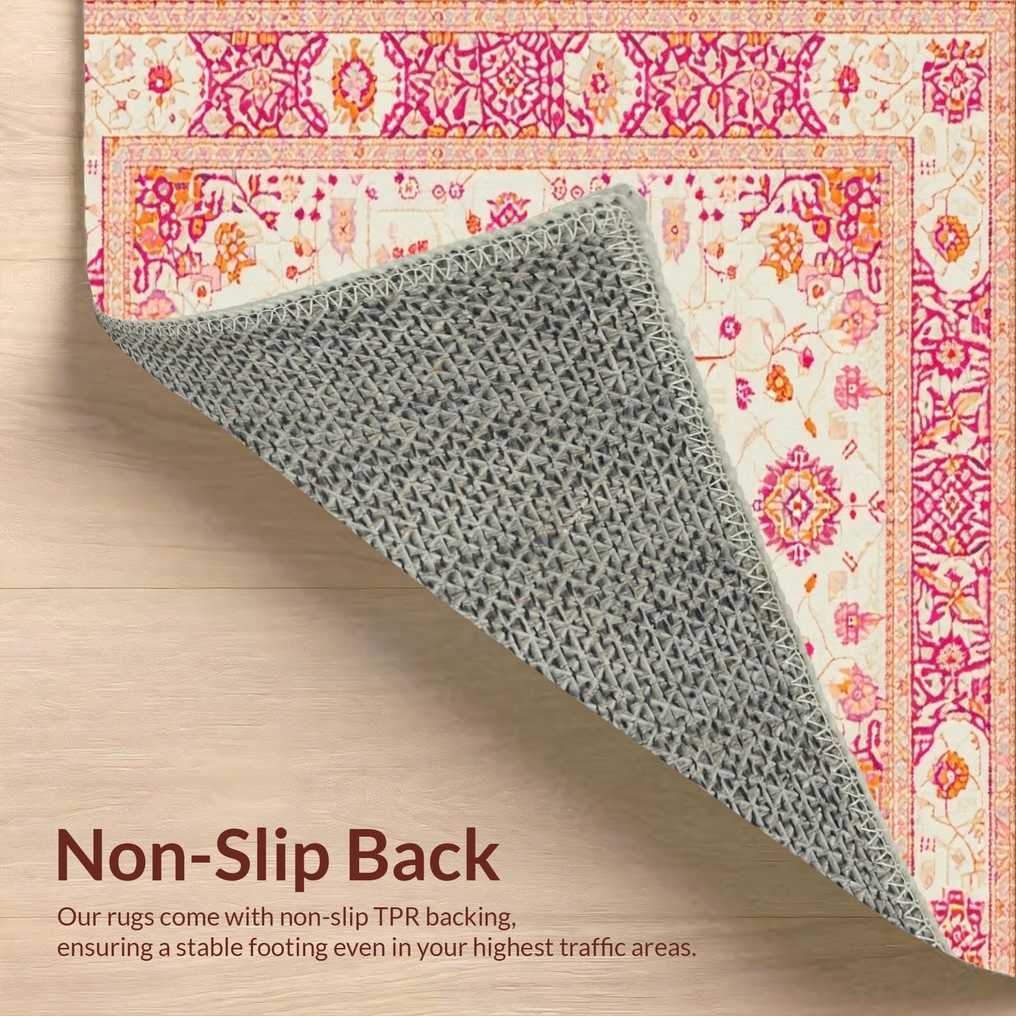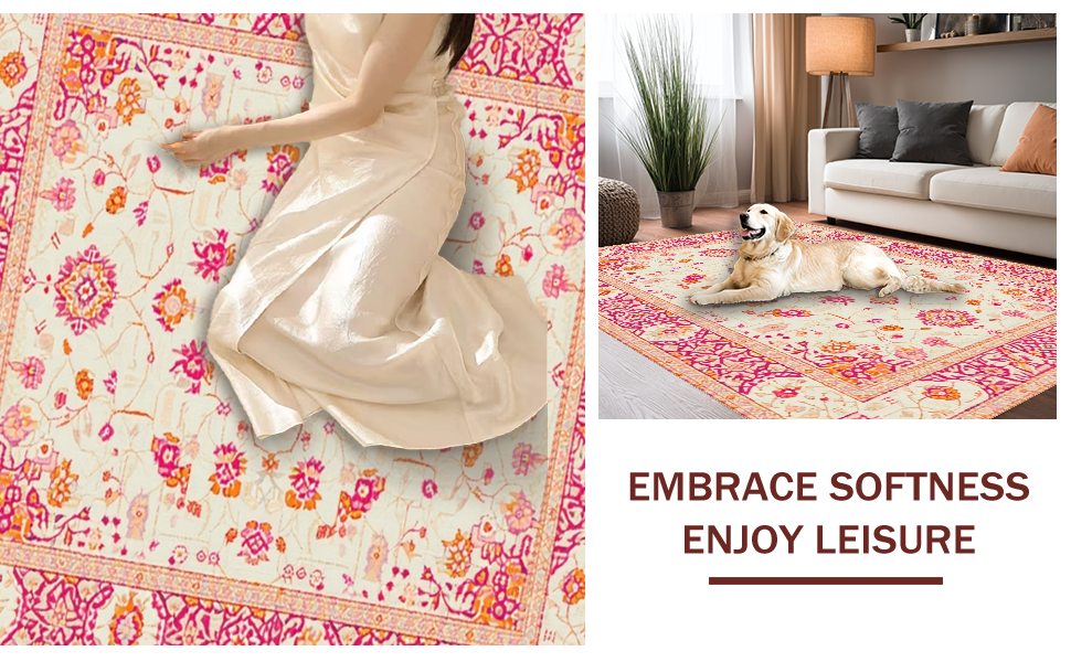 Ultra Soft Area Rug, Non Slip, Stain Resistant, Washable Area Rugs for Living Room, Bedroom, Elegant Pastel Bloom Composition(Ivory) Overview: