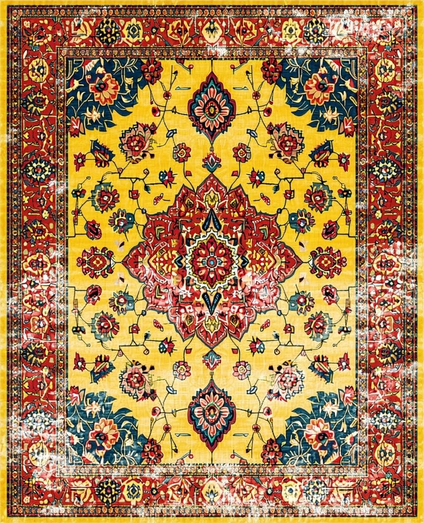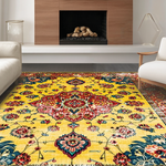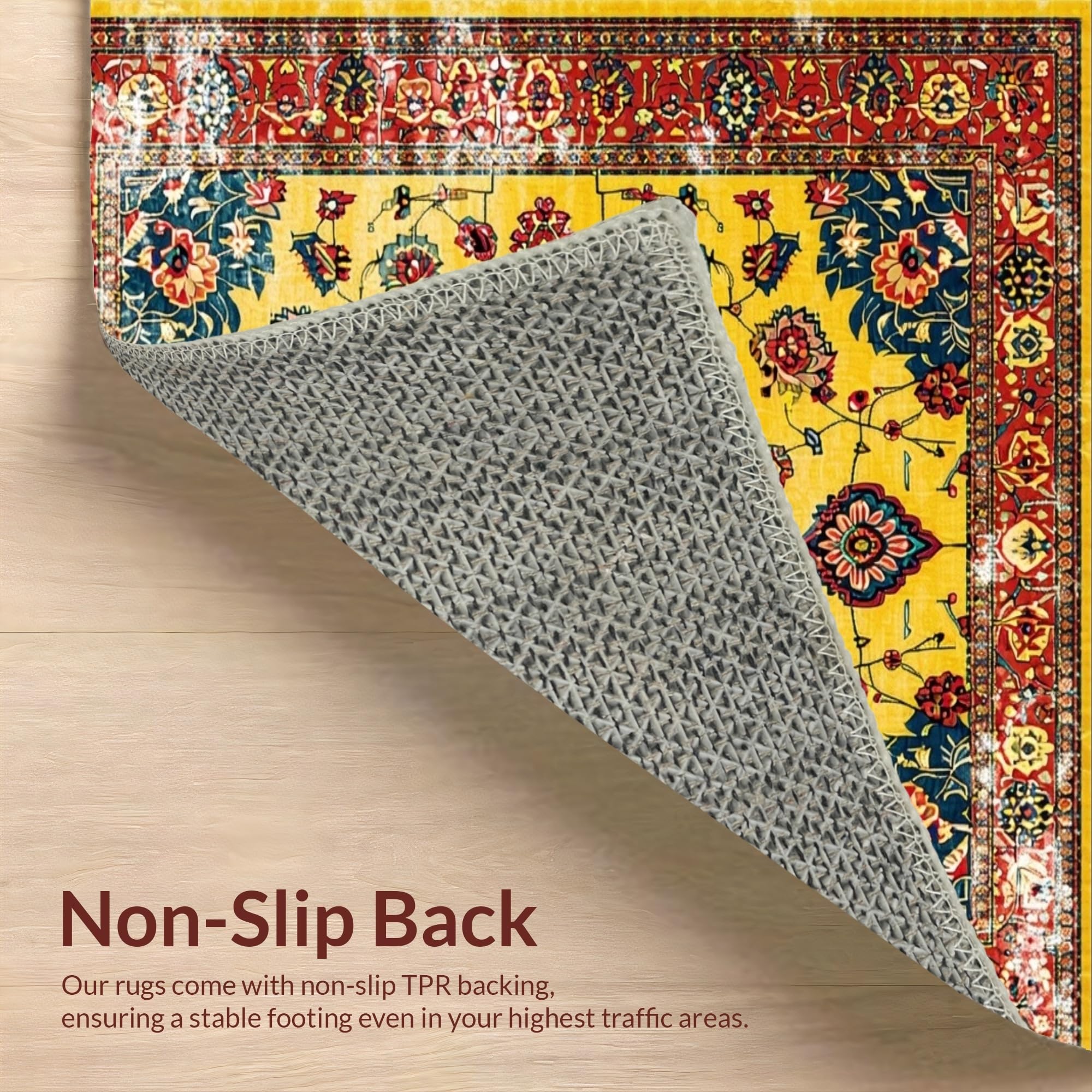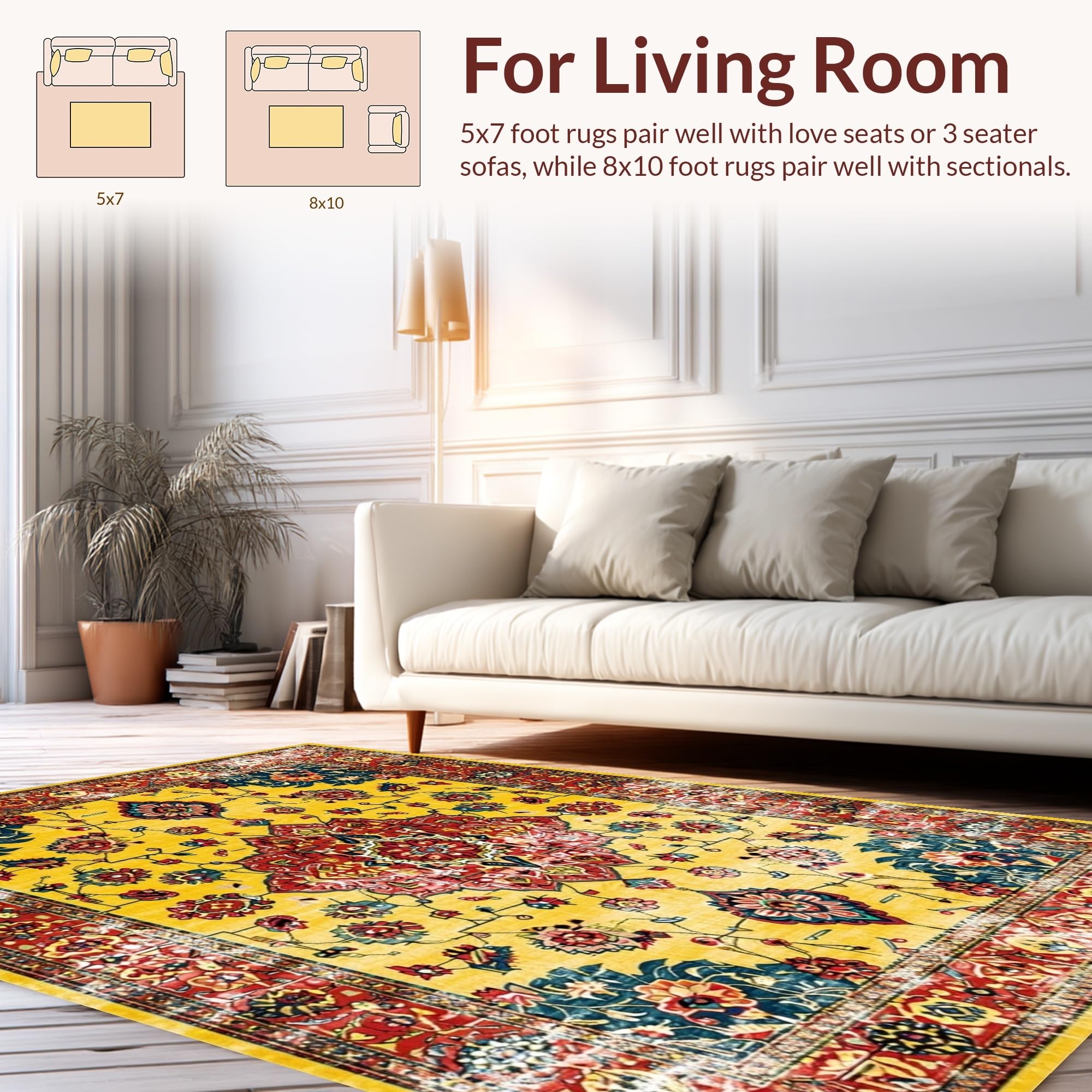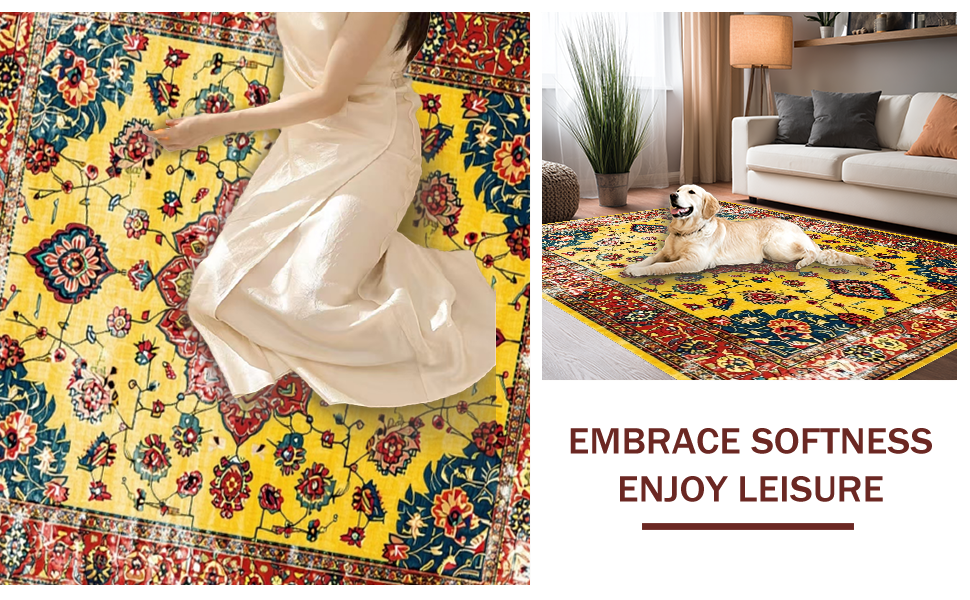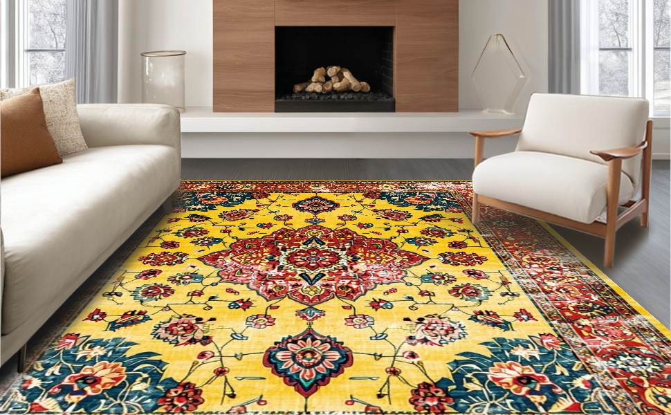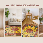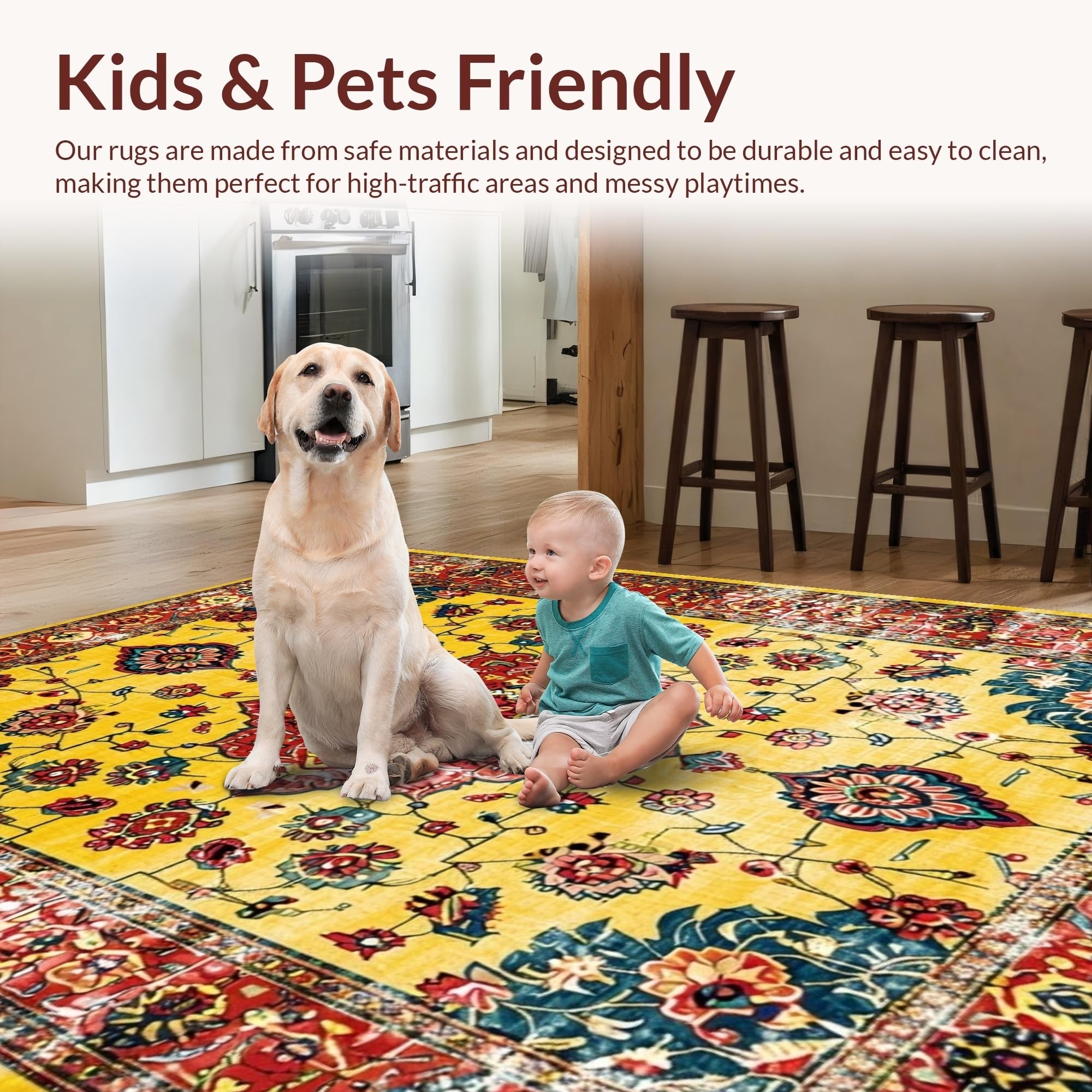 Ultra Soft Area Rug, Non Slip, Stain Resistant, Washable Area Rugs for Living Room, Bedroom, Elegant Pastel Garden Motif(Yellow) Overview: