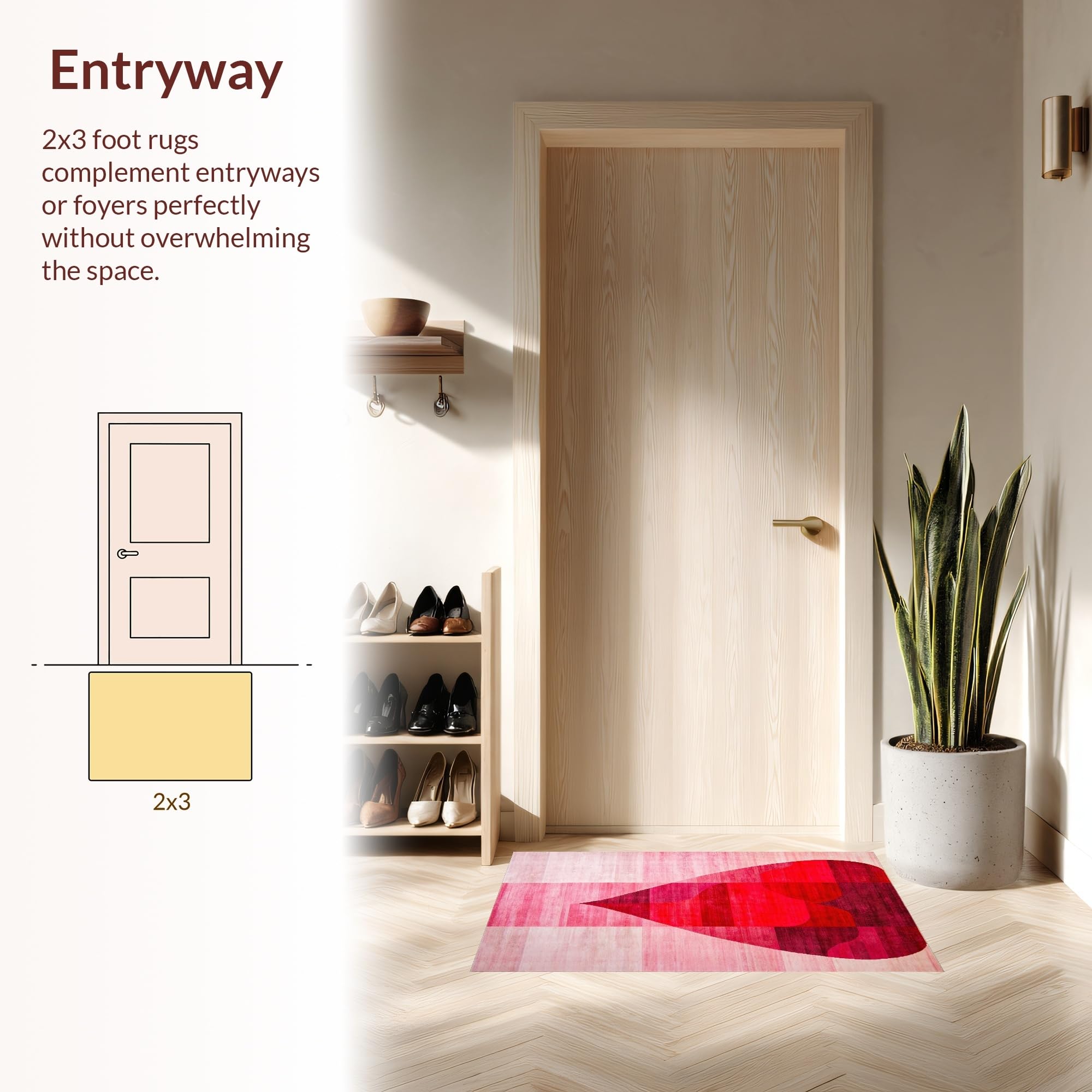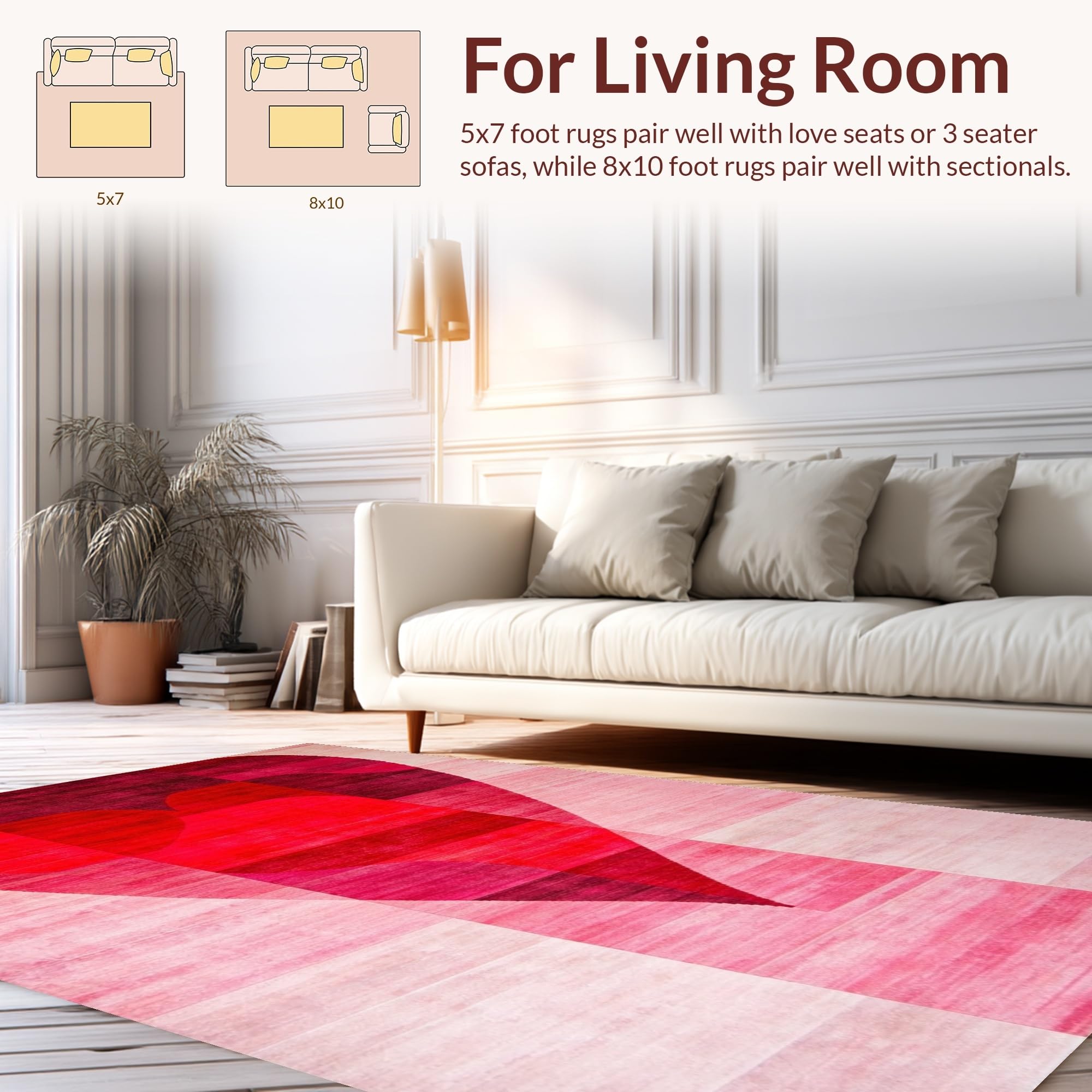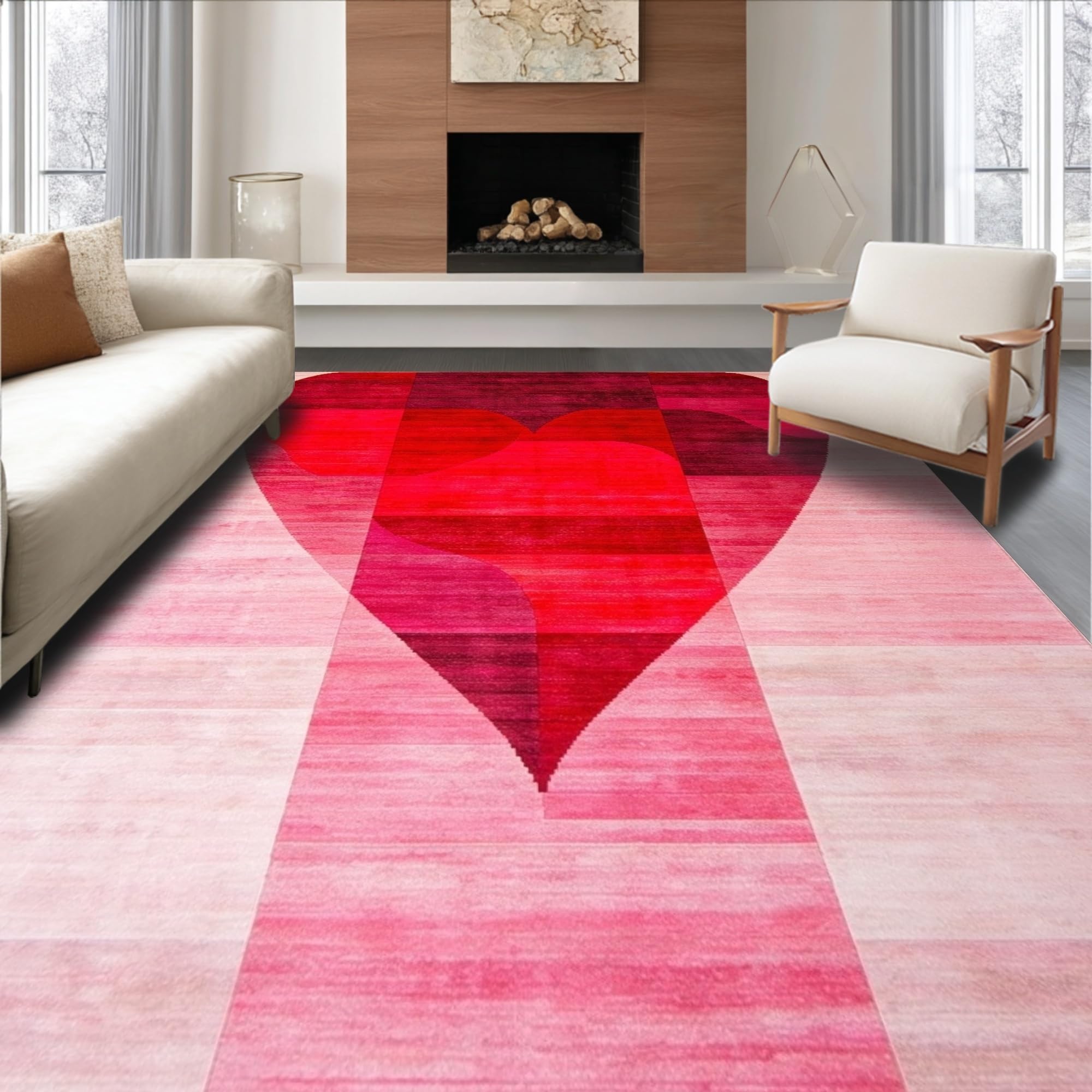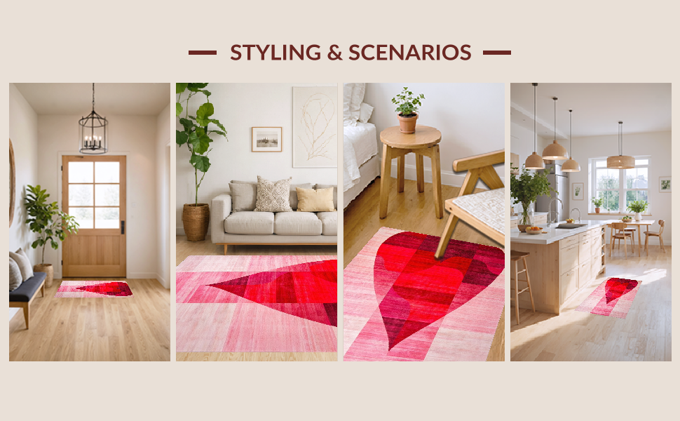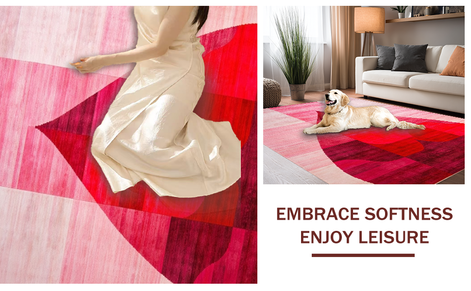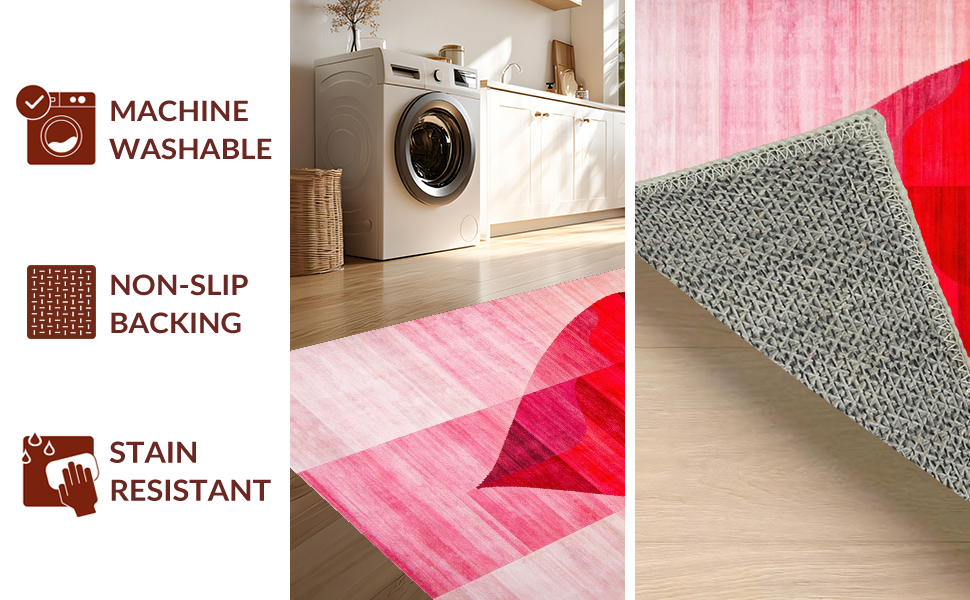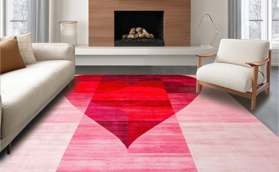Ultra Soft Area Rug, Non Slip, Stain Resistant, Washable Area Rugs for Living Room, Bedroom, Elegant Pink Heart Silhouette Art(Red) Overview: