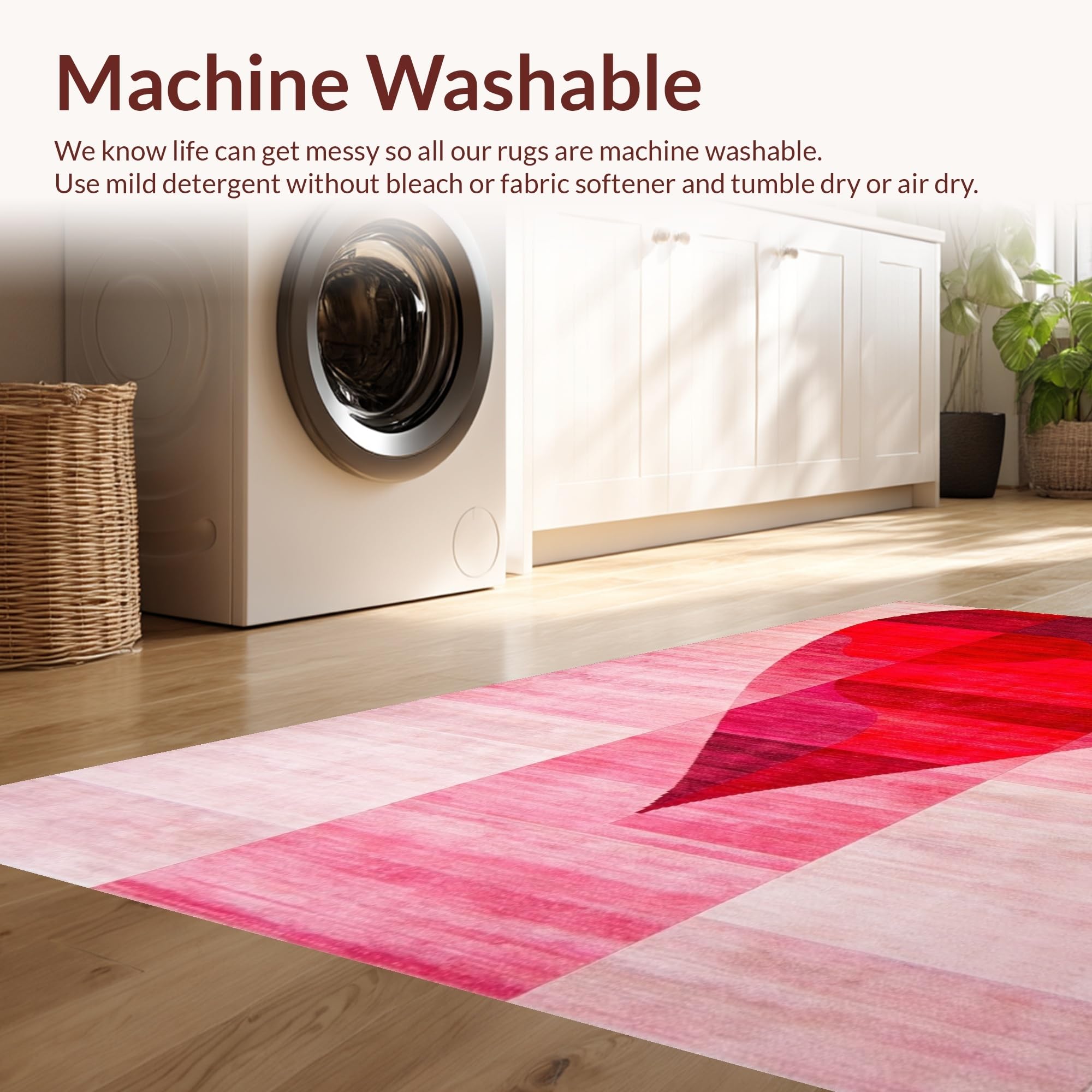 - Machine Washable: Our rugs can be easily thrown in the wash machine.
