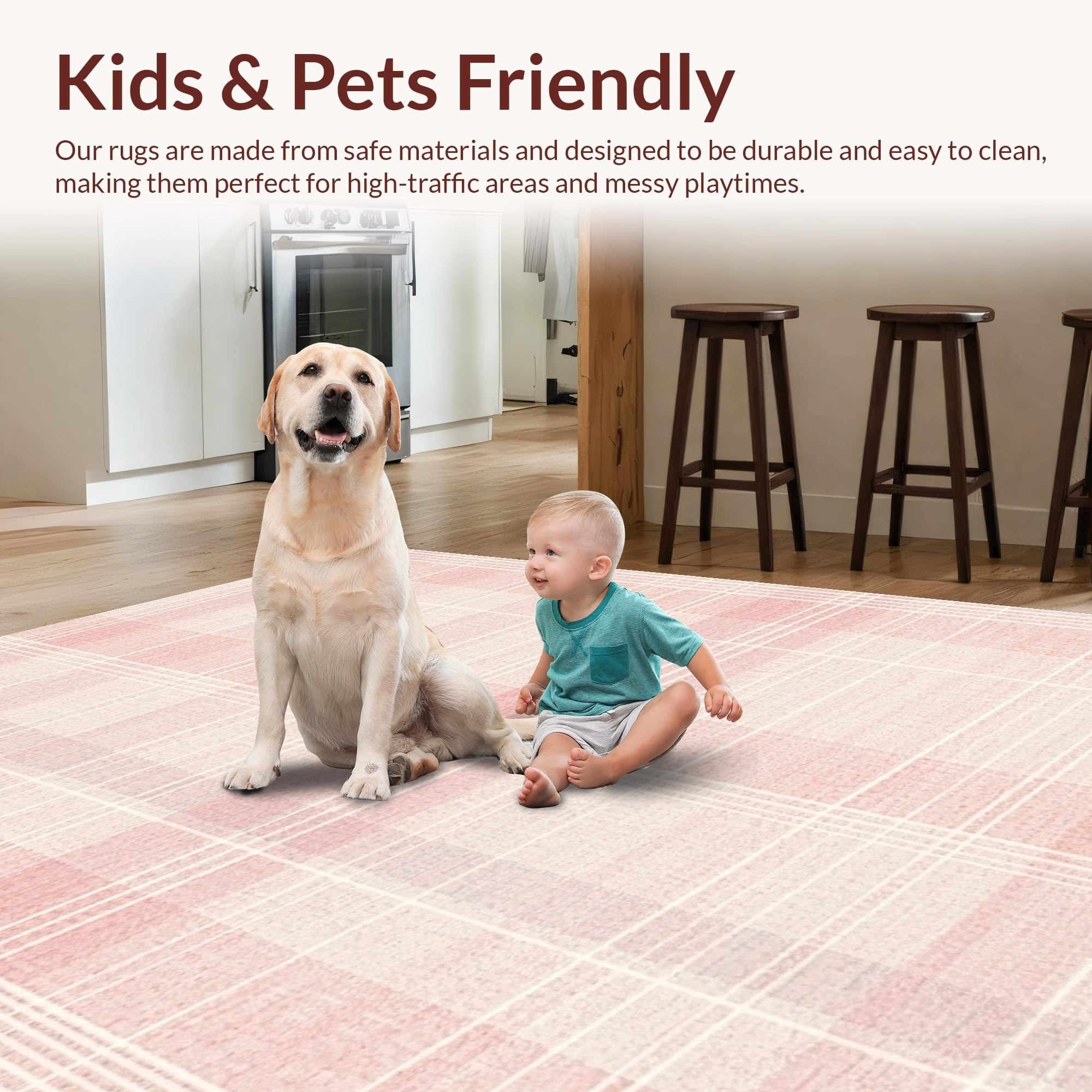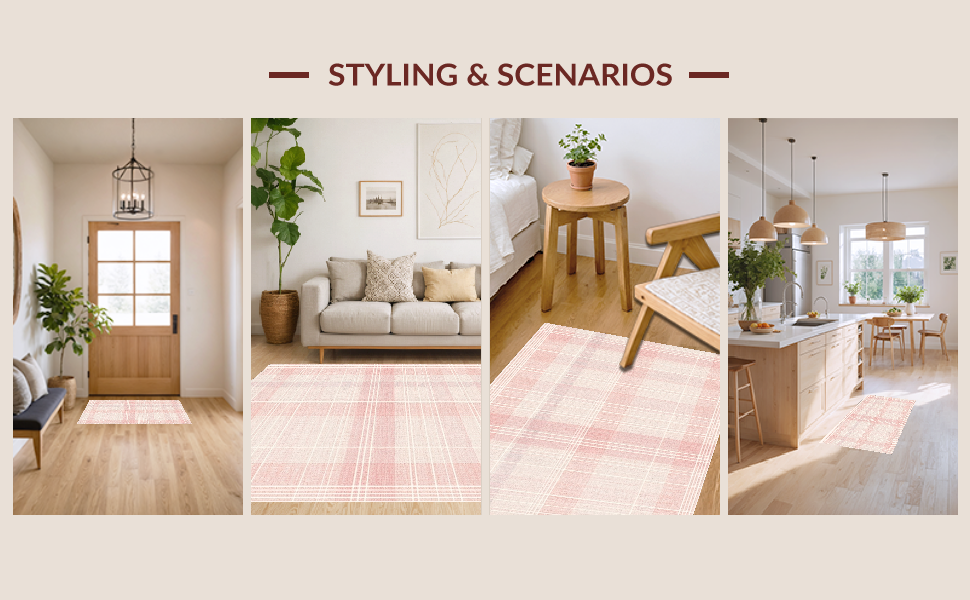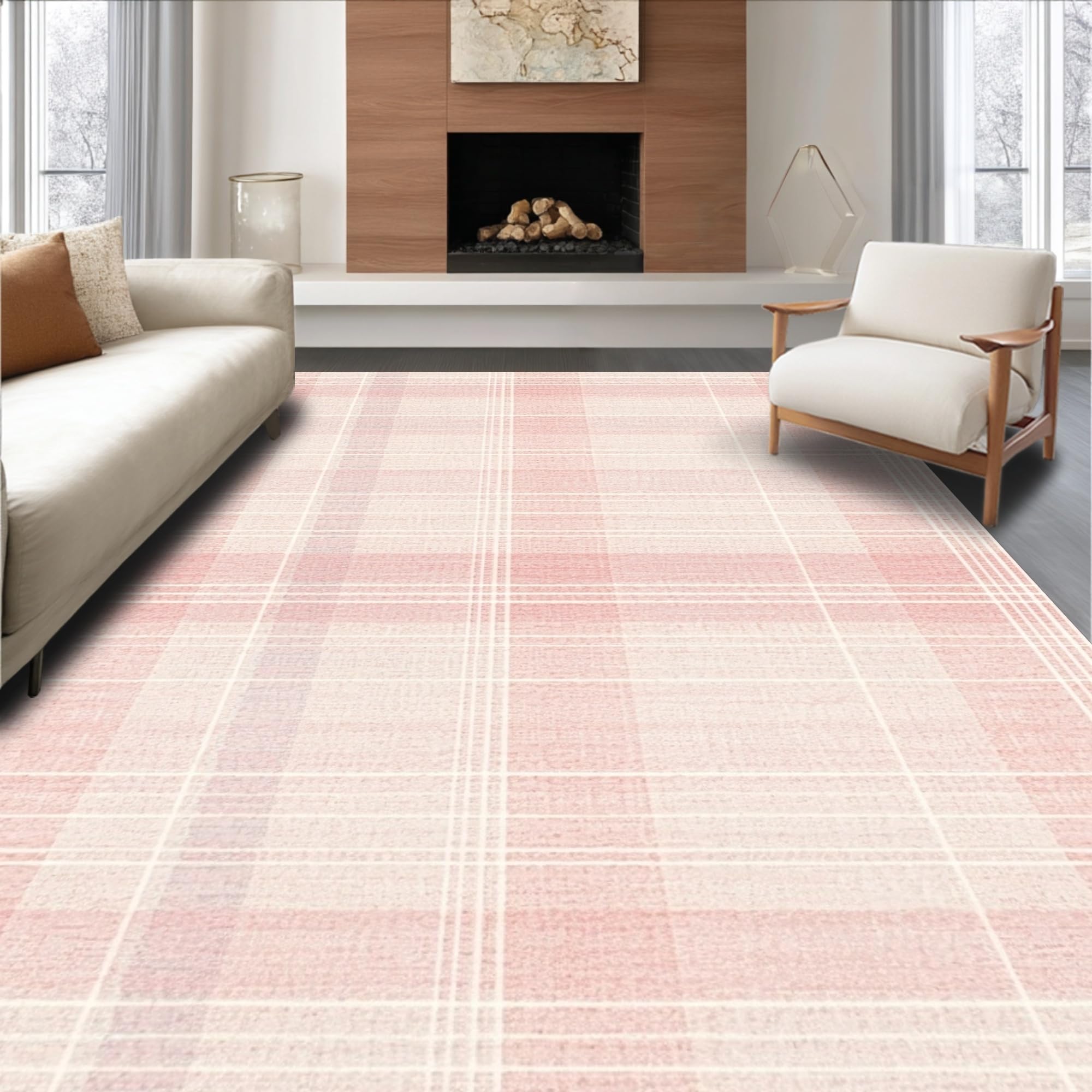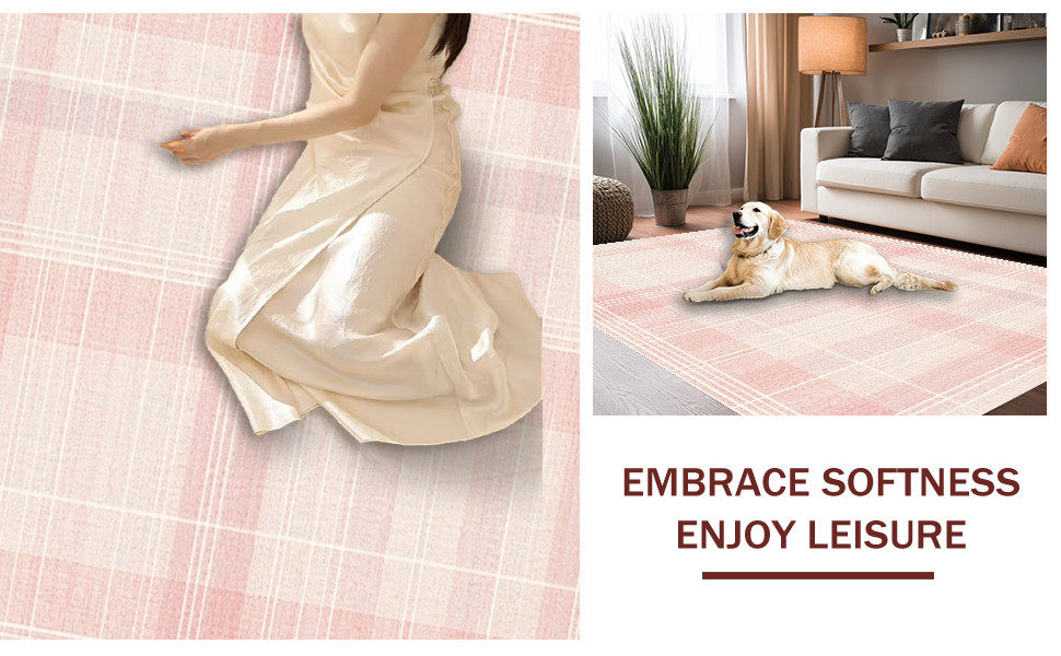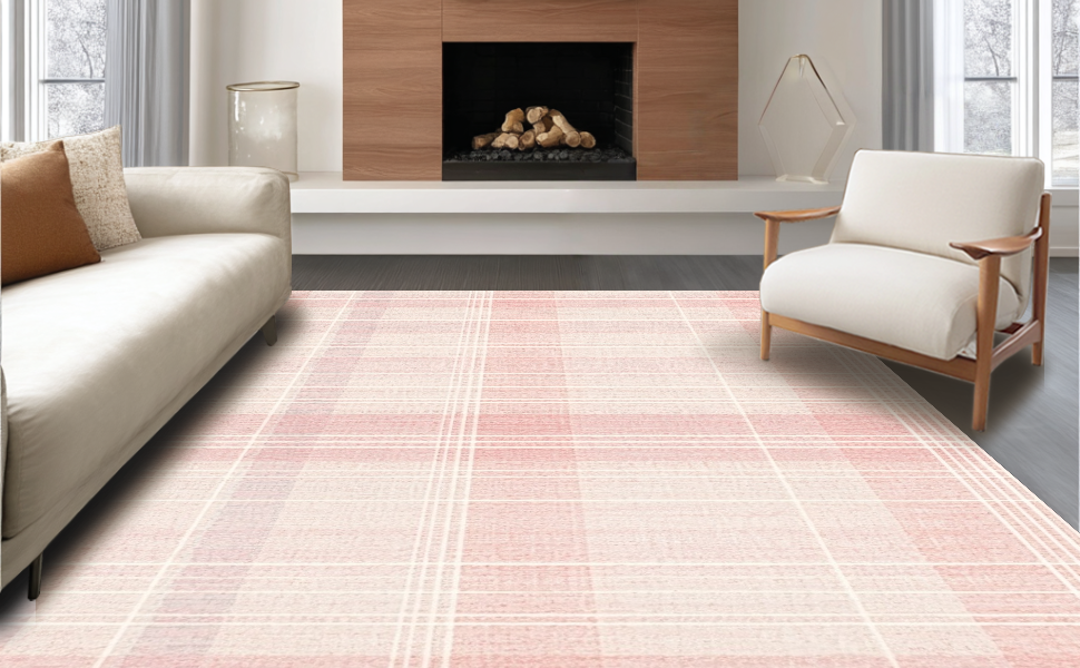 Ultra Soft Area Rug, Non Slip, Stain Resistant, Washable Area Rugs for Living Room, Bedroom, Elegant Pink Minimalist Motif(Pink) Overview: