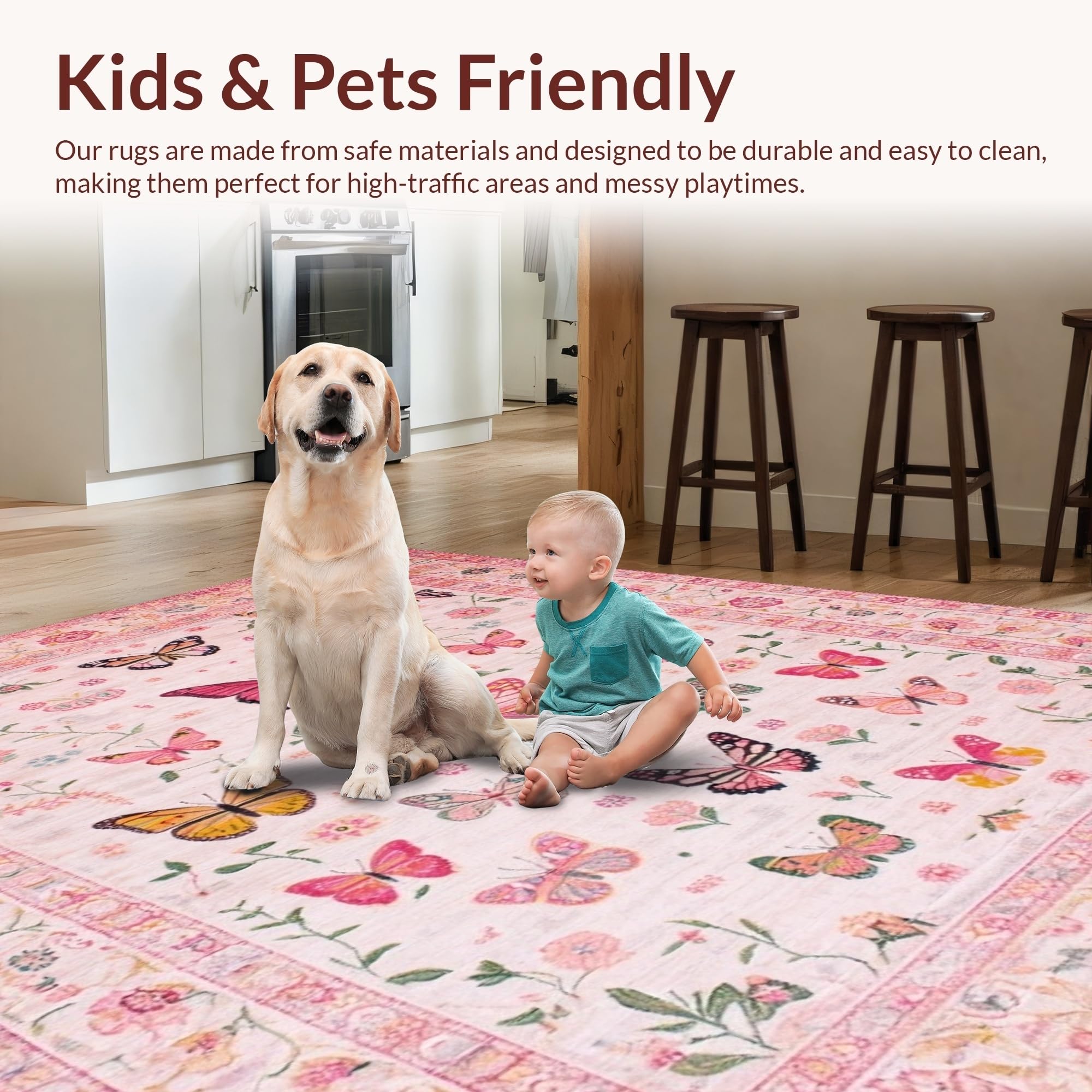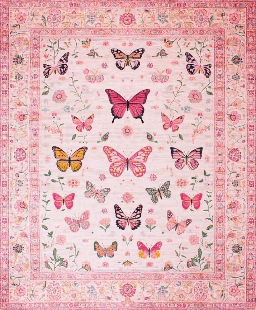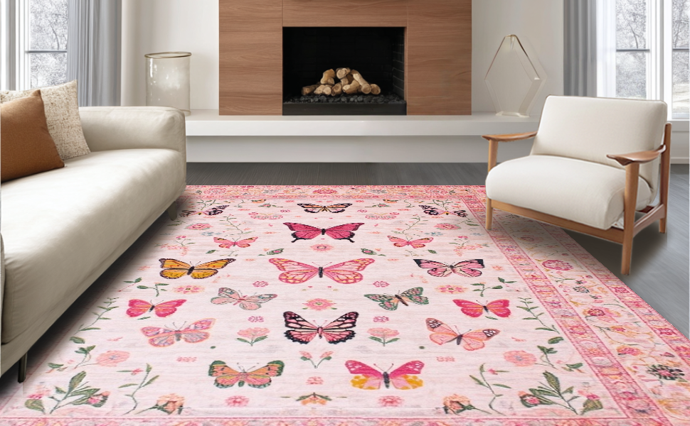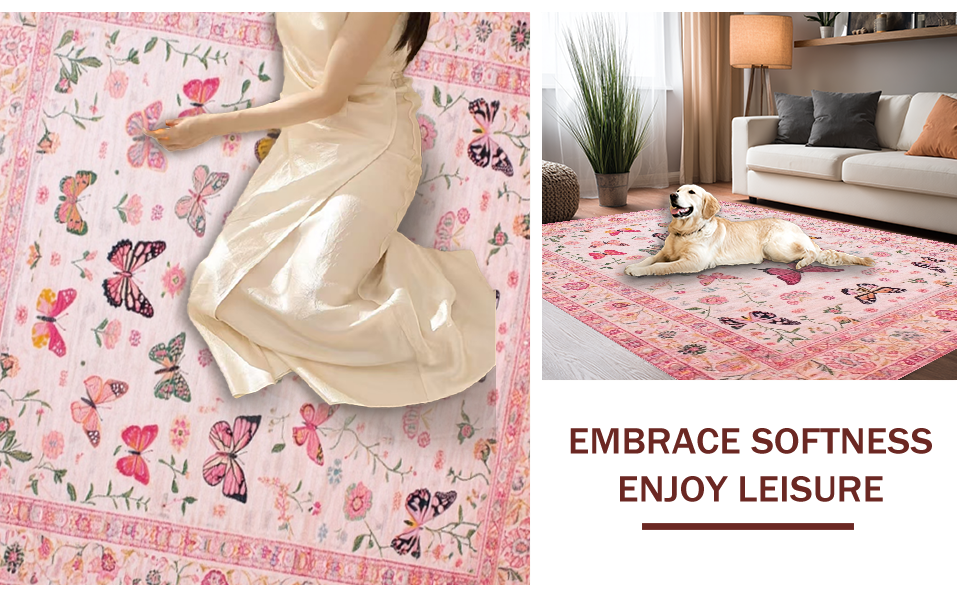 Ultra Soft Area Rug, Non Slip, Stain Resistant, Washable Area Rugs for Living Room, Bedroom, Elegant Pink Nature-Inspired Design(Pink) Overview: