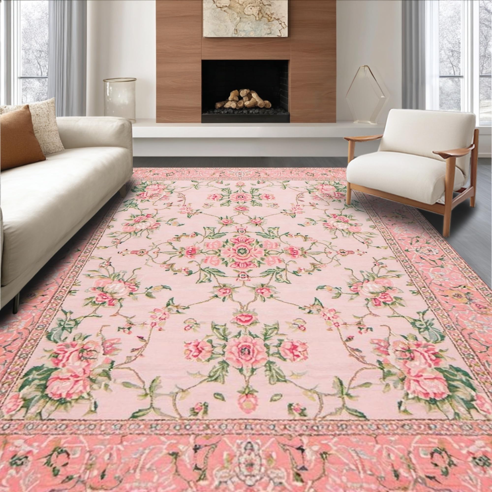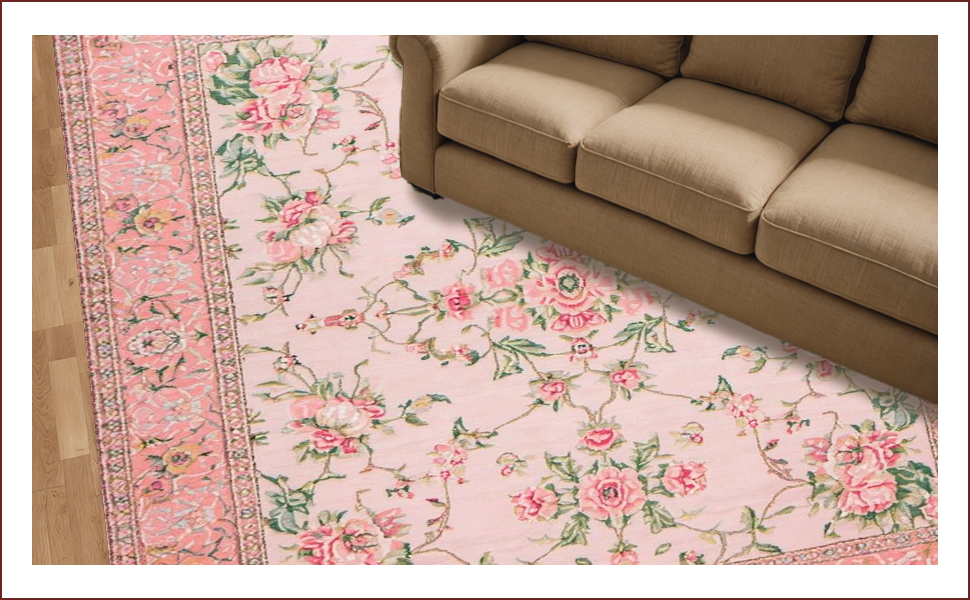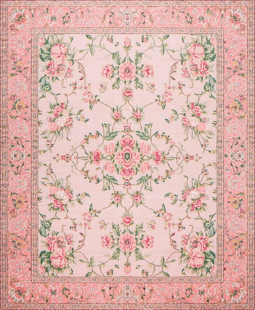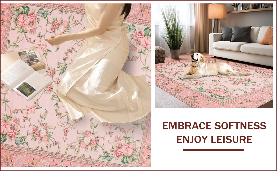 Ultra Soft Area Rug, Non Slip, Stain Resistant, Washable Area Rugs for Living Room, Bedroom, Elegant Pink Rose Embellishments(Pink) Overview: