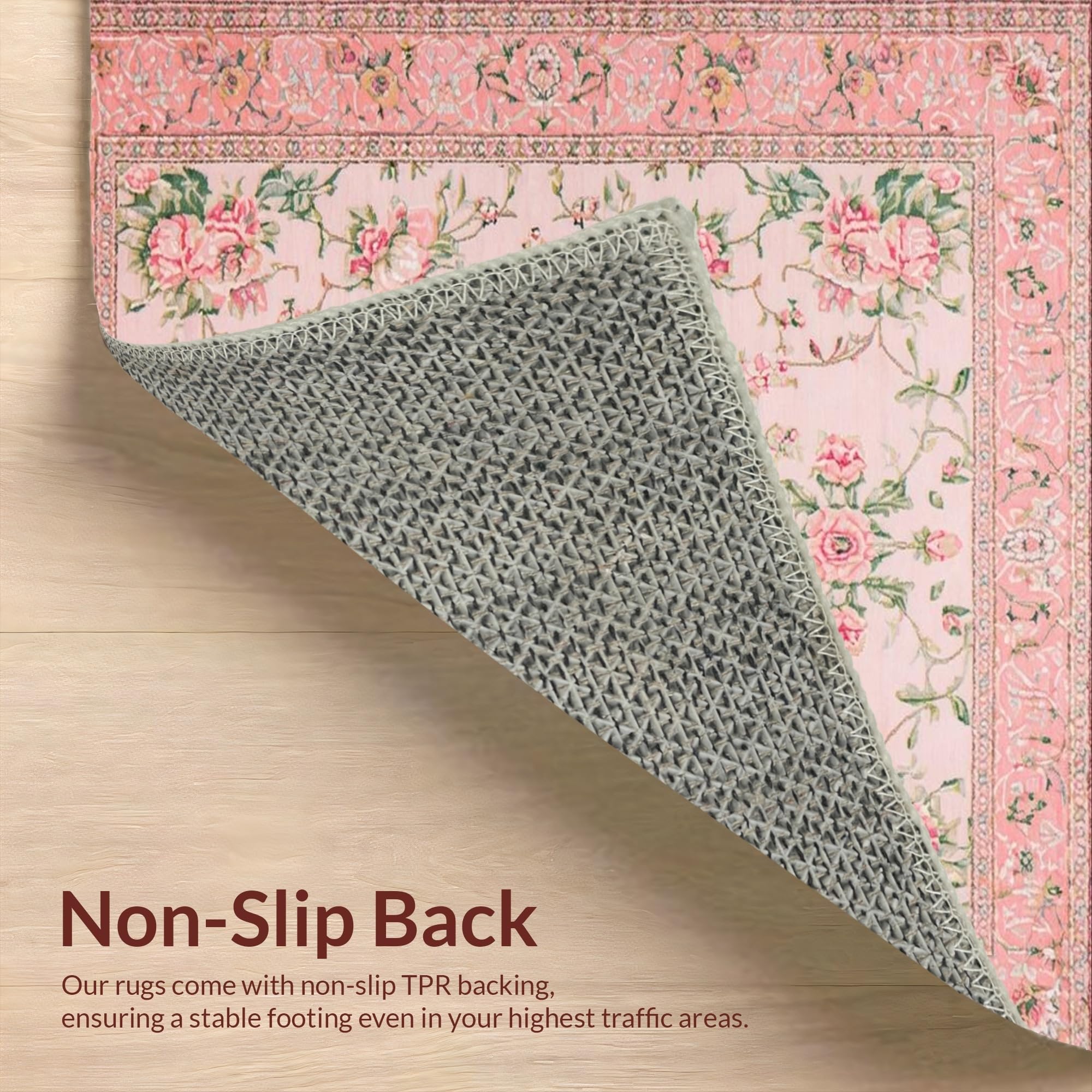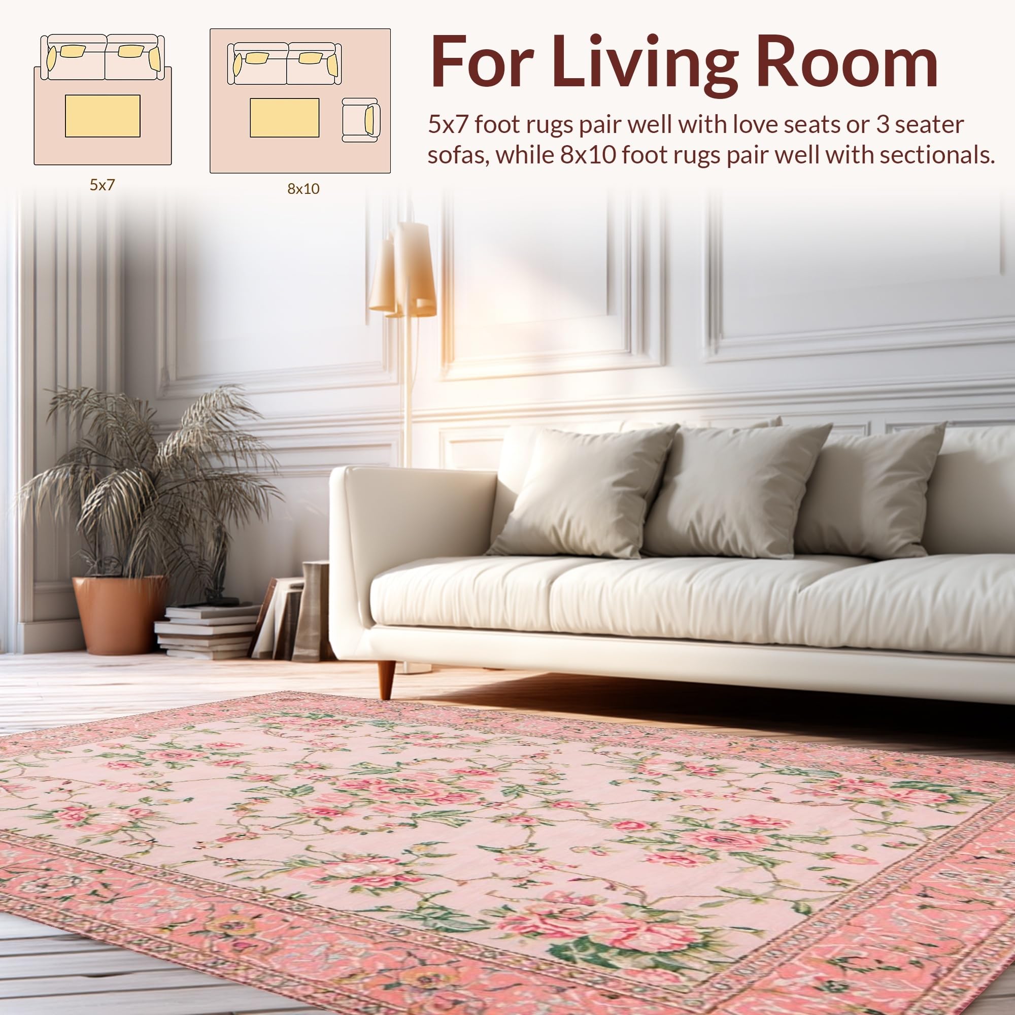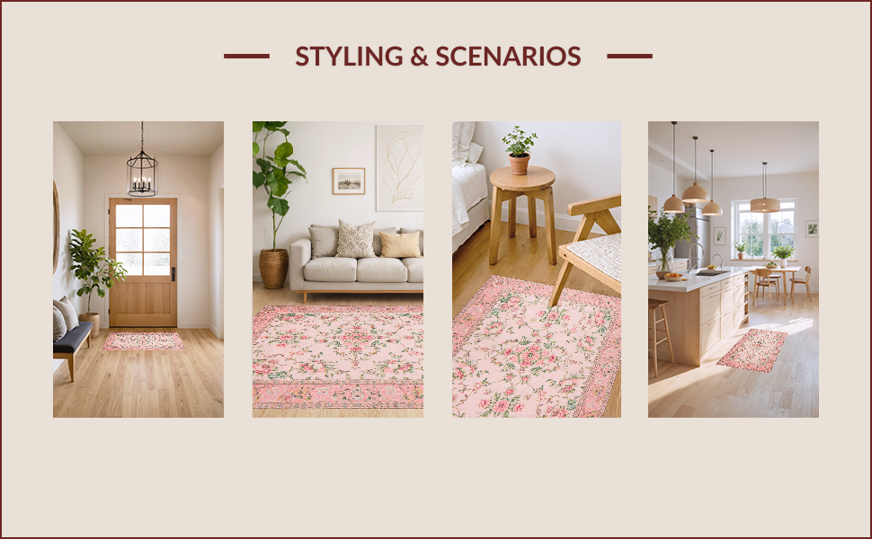 Ultra Soft Area Rug, Non Slip, Stain Resistant, Washable Area Rugs for Living Room, Bedroom, Elegant Pink Rose Embellishments(Pink) Overview: