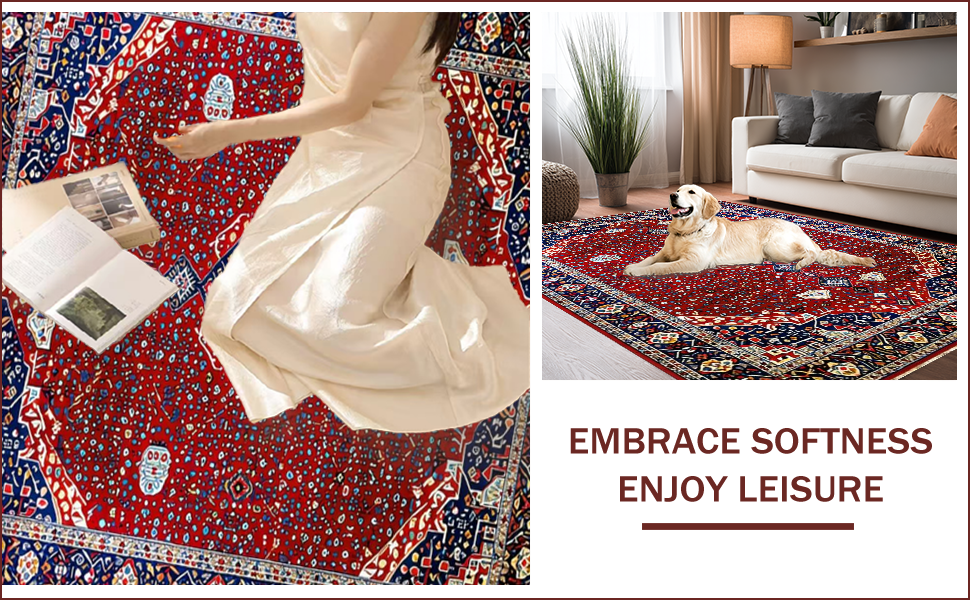 Ultra Soft Area Rug, Non Slip, Stain Resistant, Washable Area Rugs for Living Room, Bedroom, Elegant Red and Blue Medallion(Red) Overview: