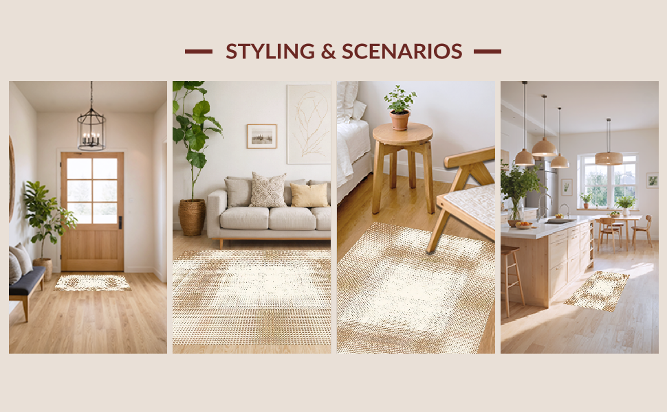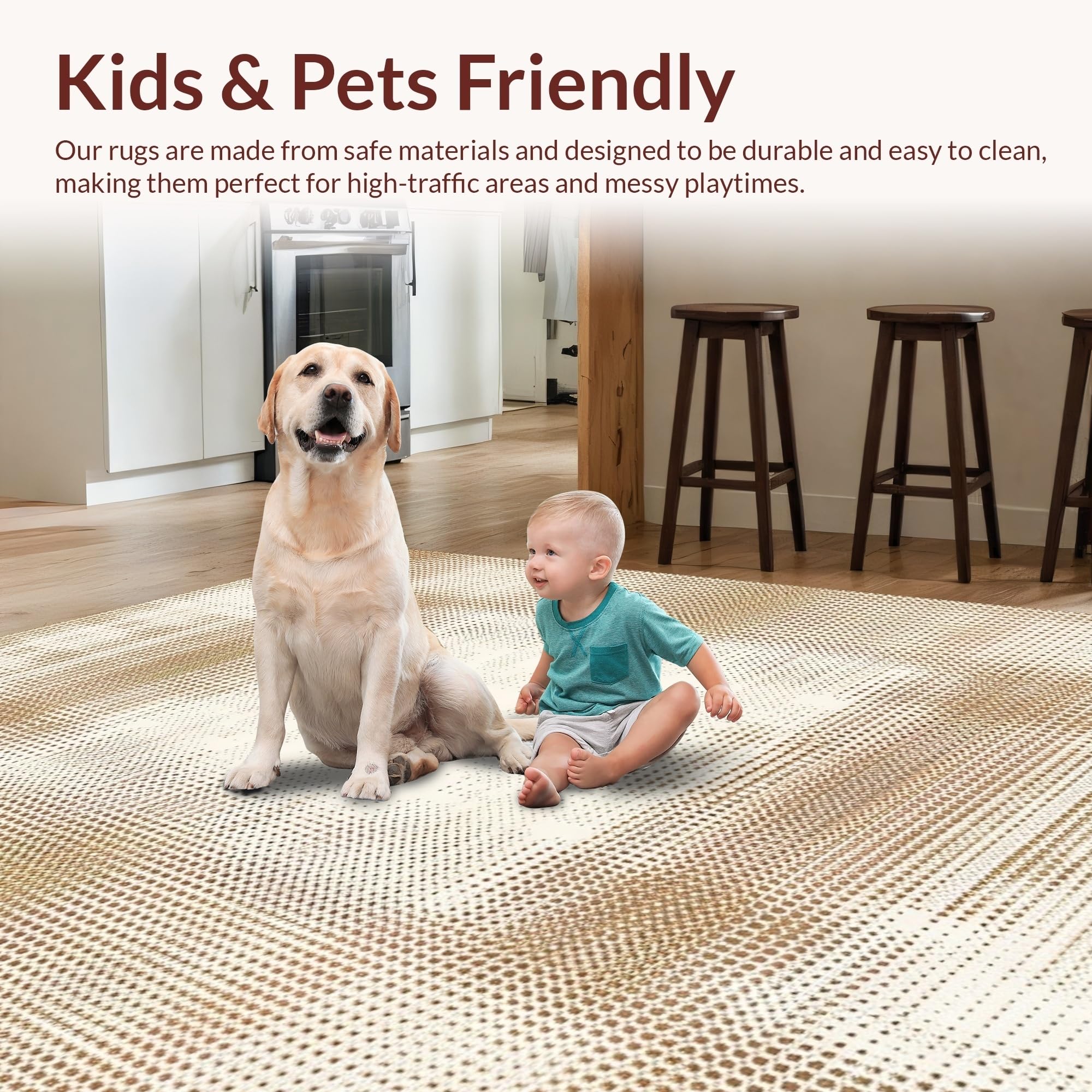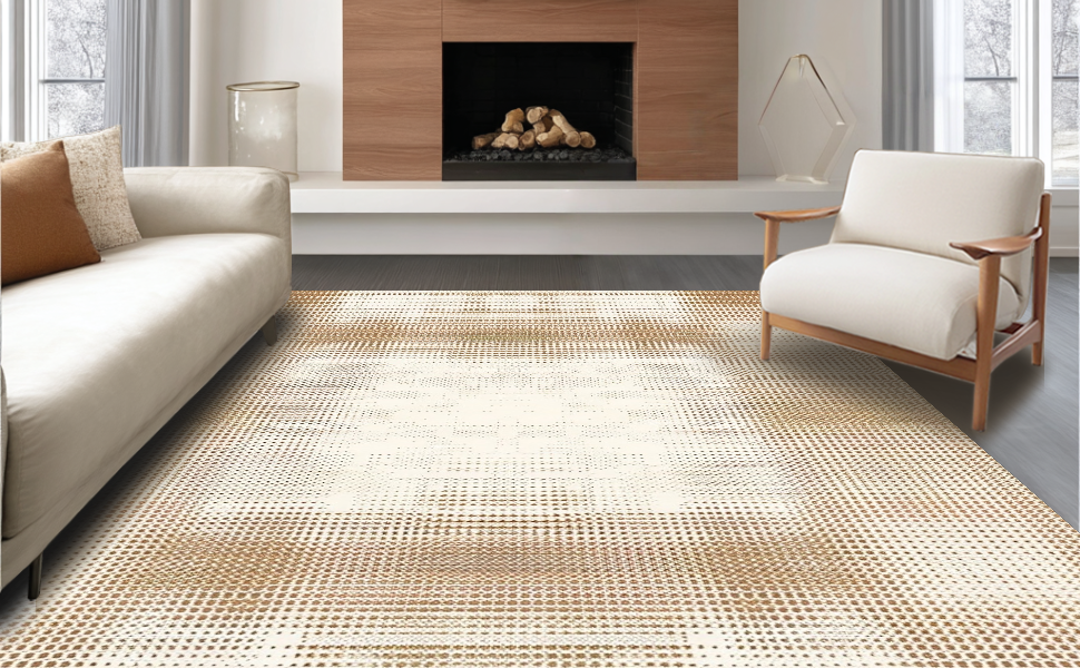 Ultra Soft Area Rug, Non Slip, Stain Resistant, Washable Area Rugs for Living Room, Bedroom, Elegant Rustic Farm Decor Style(Beige) Overview: