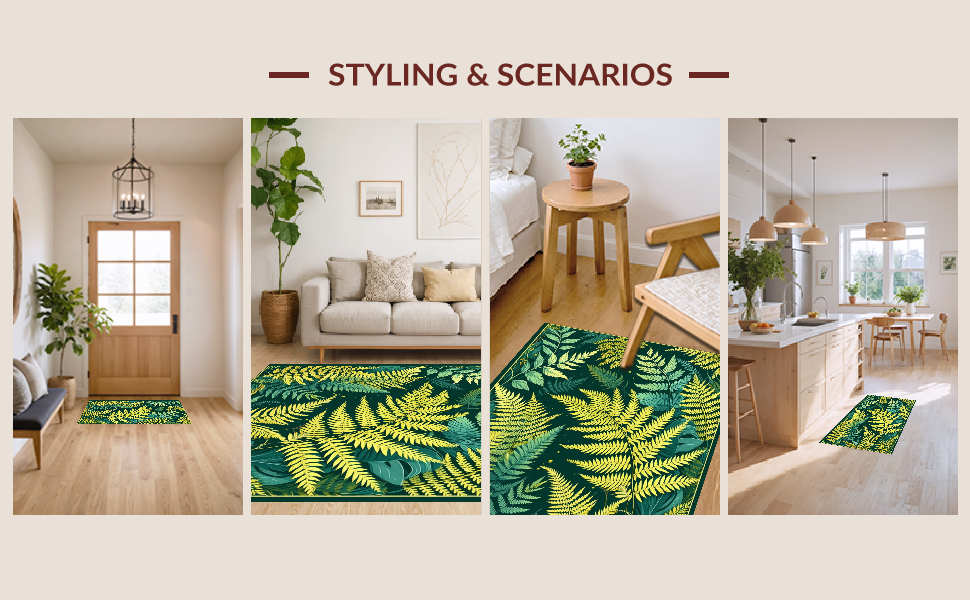Ultra Soft Area Rug, Non Slip, Stain Resistant, Washable Area Rugs for Living Room, Bedroom, Elegant Rustic Geometric Harmony(Green) Overview: