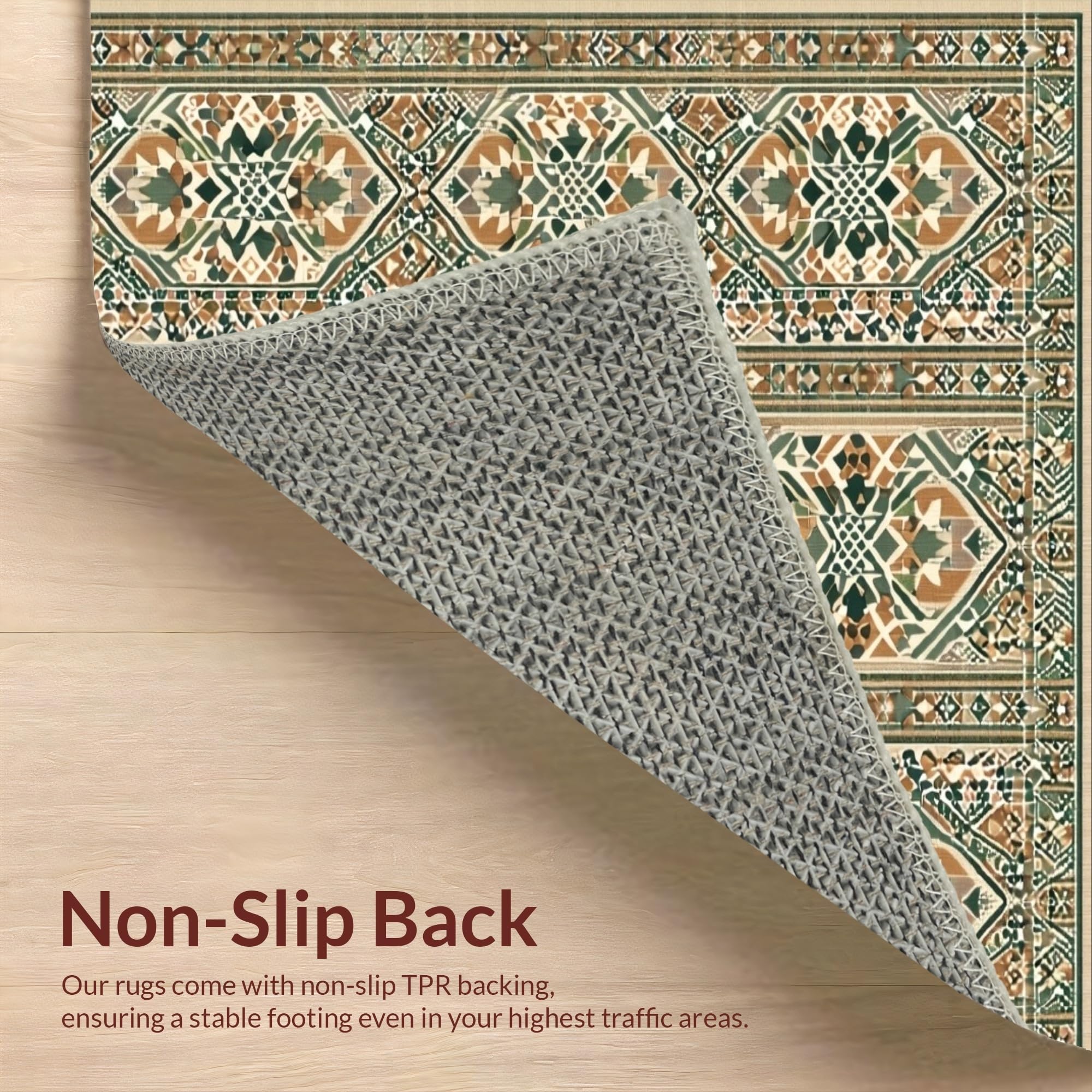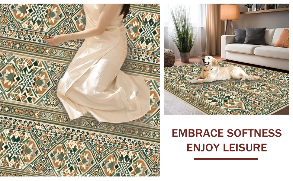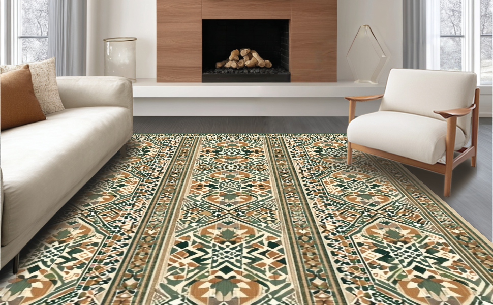 Ultra Soft Area Rug, Non Slip, Stain Resistant, Washable Area Rugs for Living Room, Bedroom, Elegant Rustic Lattice Composition(Beige) Overview: