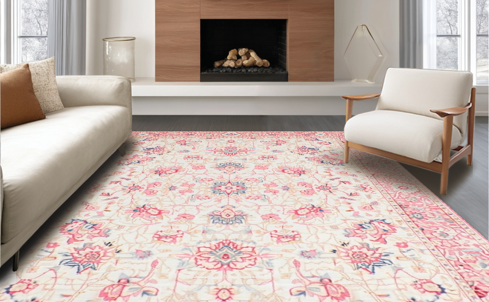 Ultra Soft Area Rug, Non Slip, Stain Resistant, Washable Area Rugs for Living Room, Bedroom, Elegant Rustic Leafy Aesthetic(Ivory) Overview: