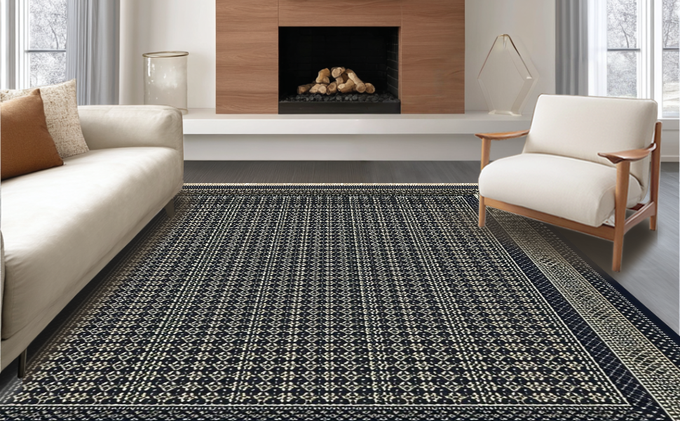 Ultra Soft Area Rug, Non Slip, Stain Resistant, Washable Area Rugs for Living Room, Bedroom, Elegant Rustic Ogee Design(Black) Overview: