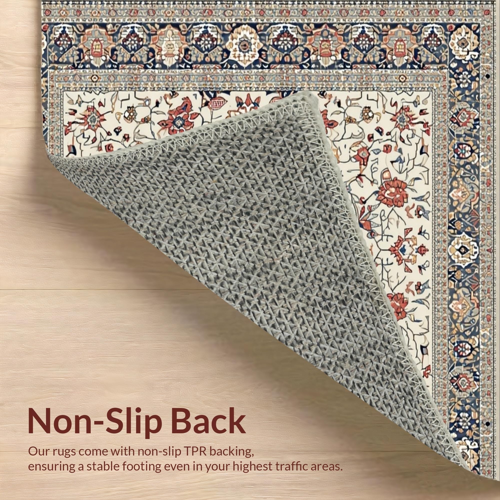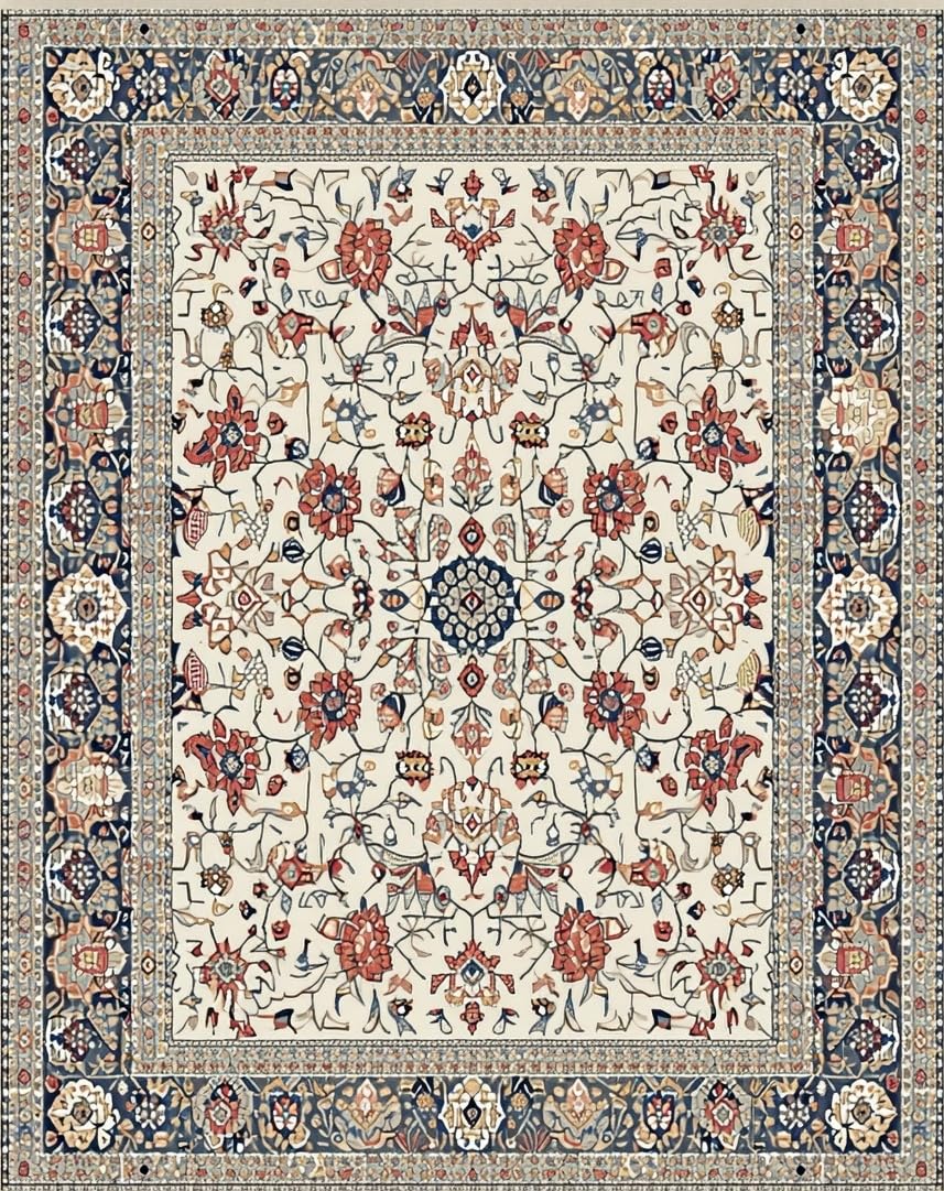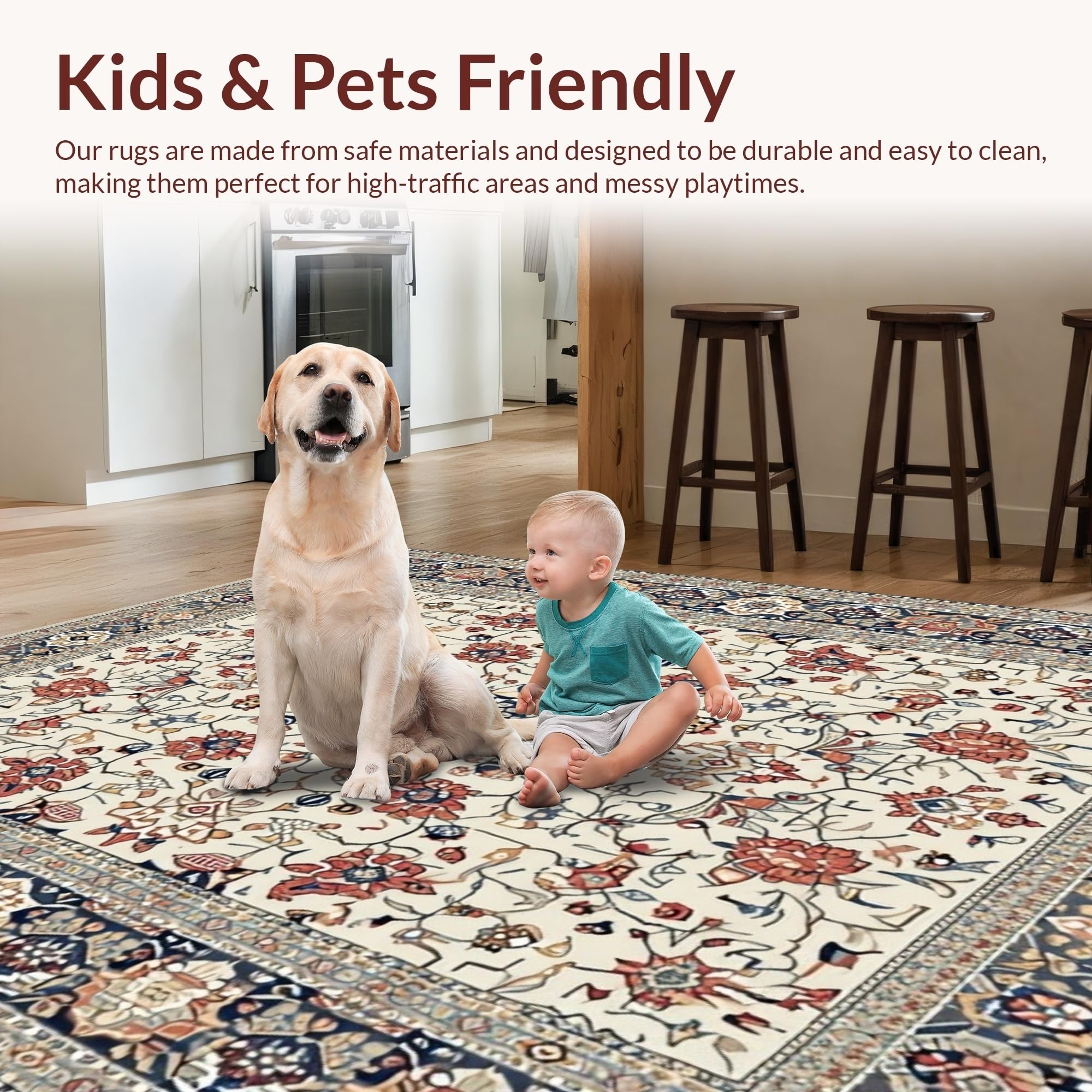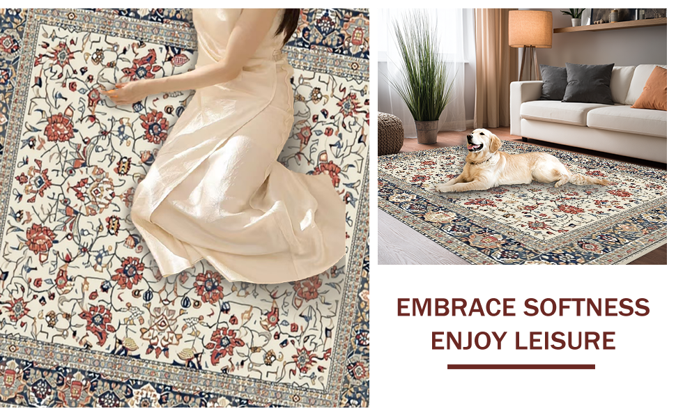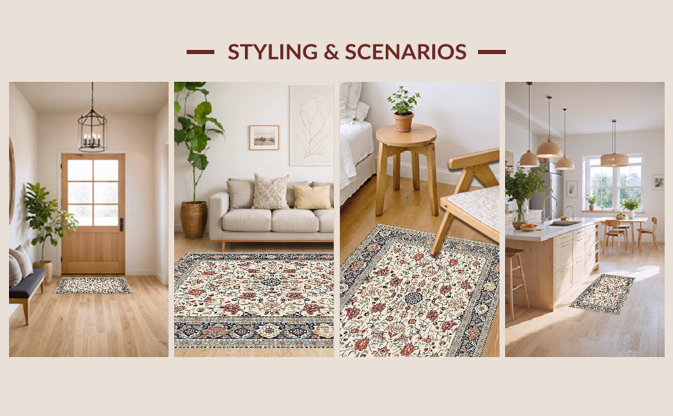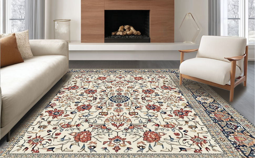 Ultra Soft Area Rug, Non Slip, Stain Resistant, Washable Area Rugs for Living Room, Bedroom, Elegant Rustic Tiled Motif(Ivory) Overview: