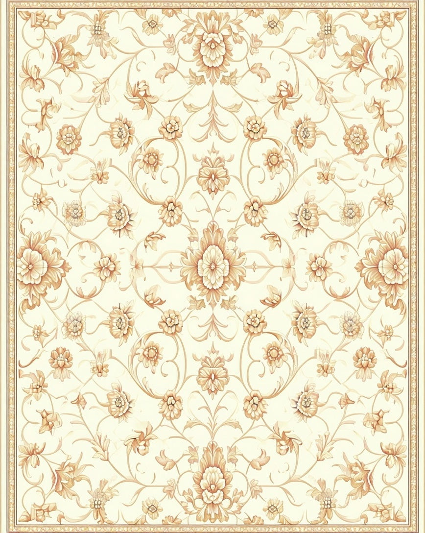 Elegant Scrollwork Area with Cream and Beige Damask Motifs for Classic Style(Beige)