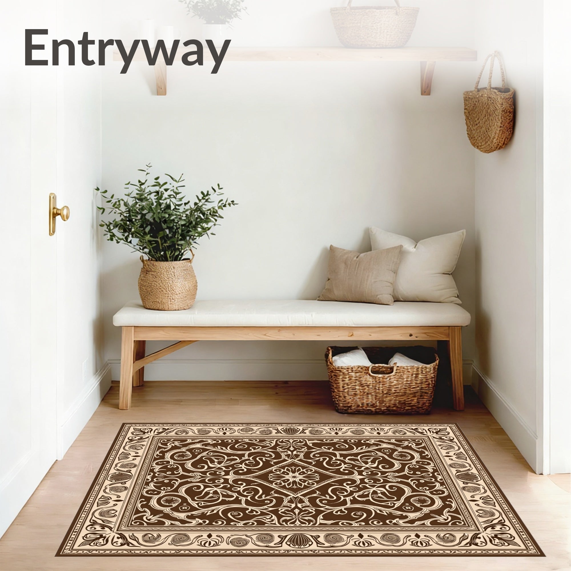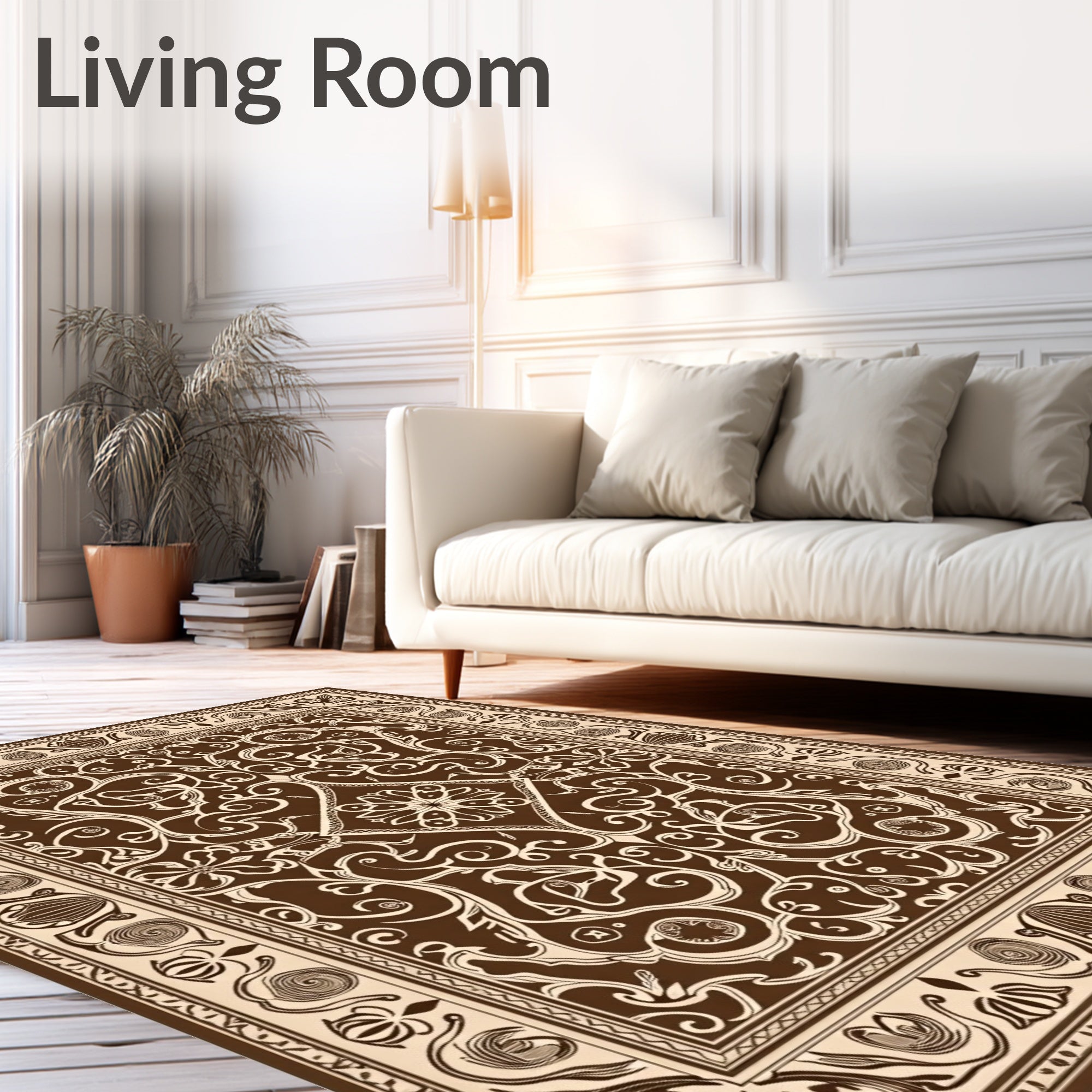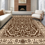 Flatwoven High Traffic Area Rug, Elegant Scrollwork With Delicate Swirls And Flourishes, Non Slip, Stain Resistant, Washable Area Rugs for Living Room, Bedroom (Brown) Overview: