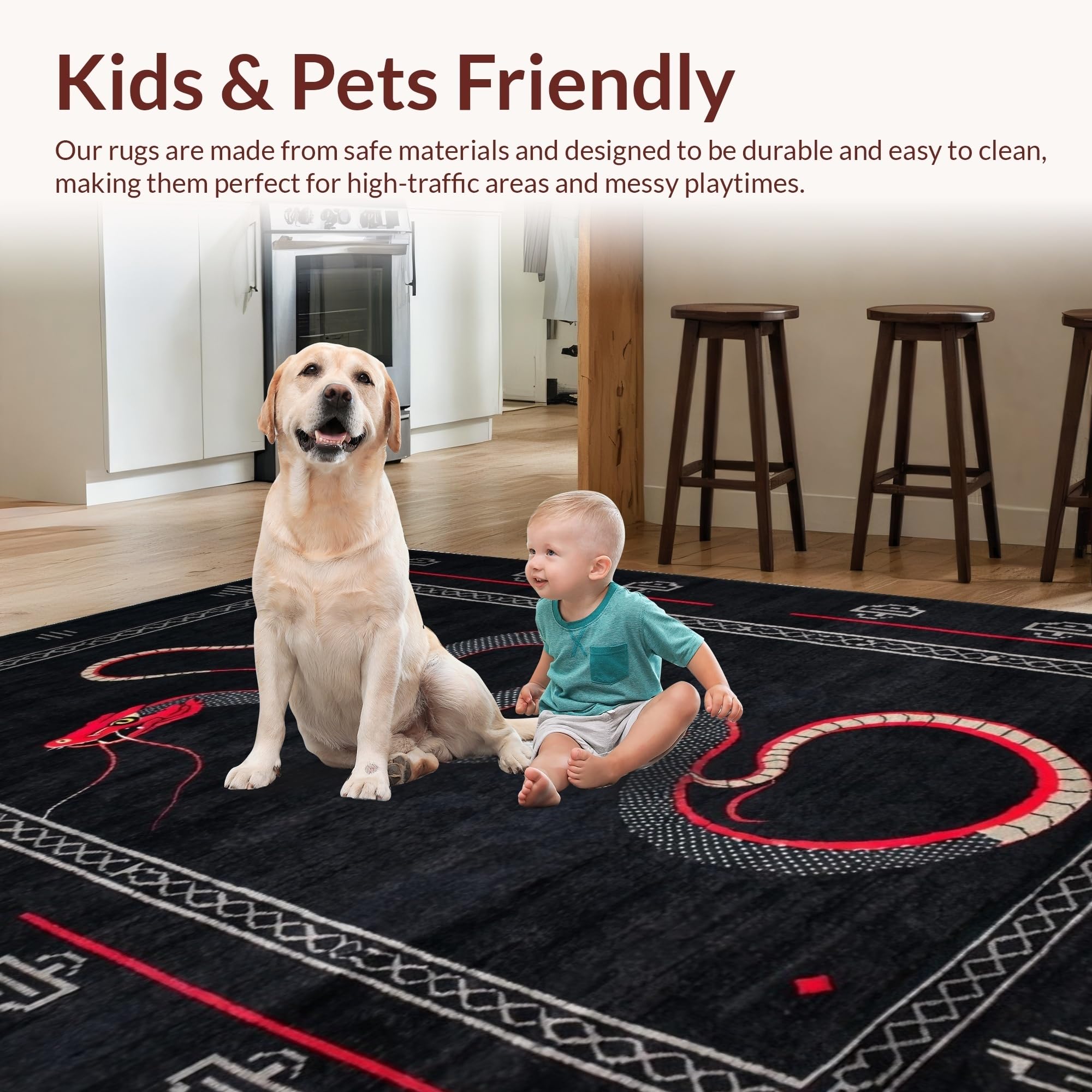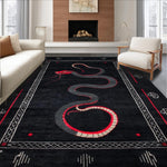 Ultra Soft Area Rug, Non Slip, Stain Resistant, Washable Area Rugs for Living Room, Bedroom, Elegant Serpent Motif Aesthetic(Black) Overview: