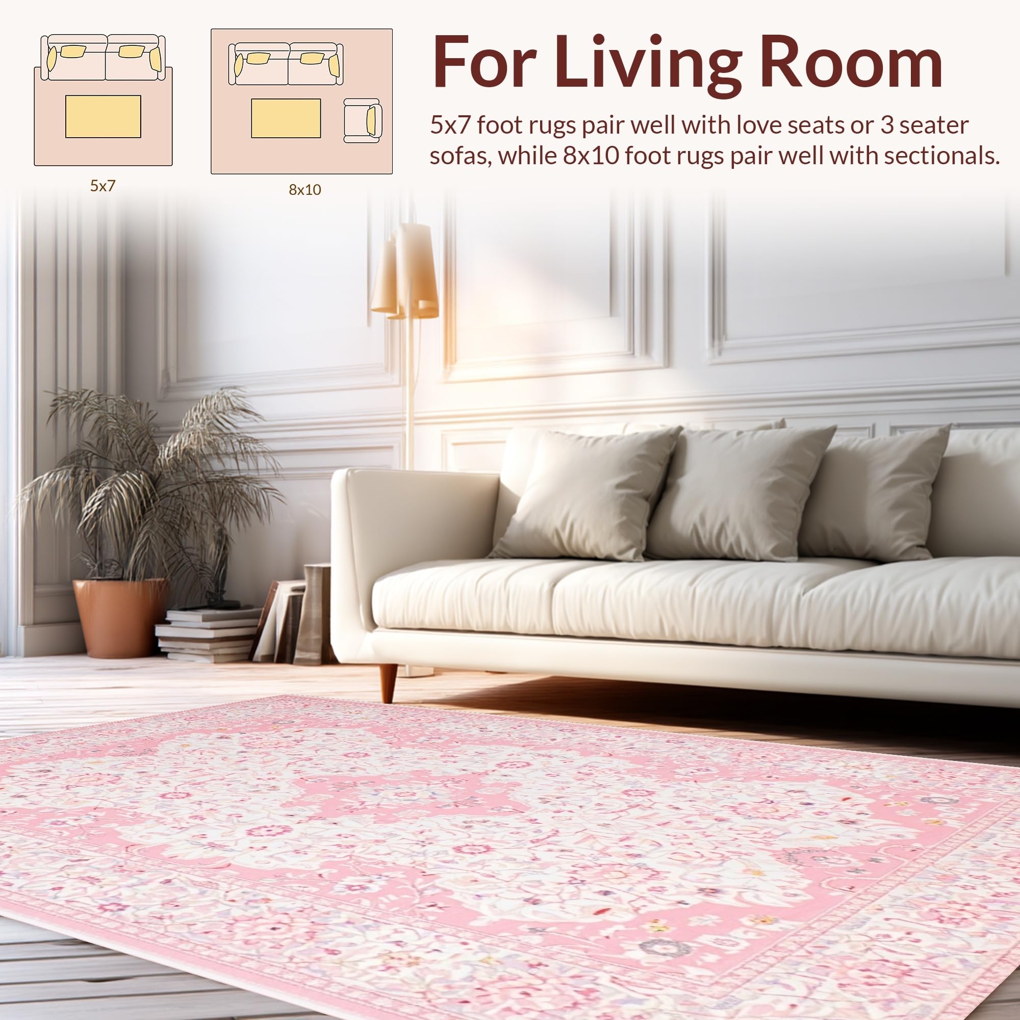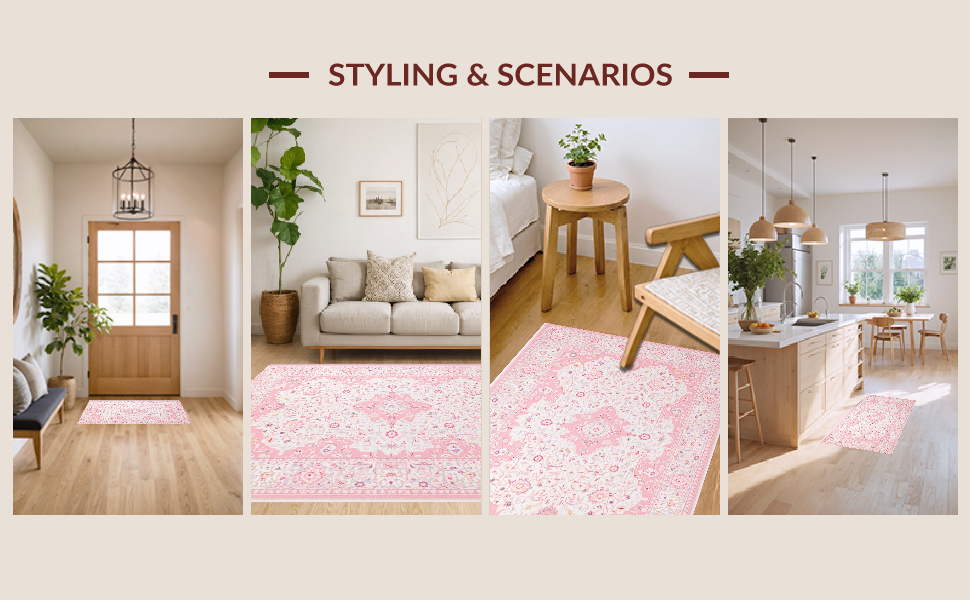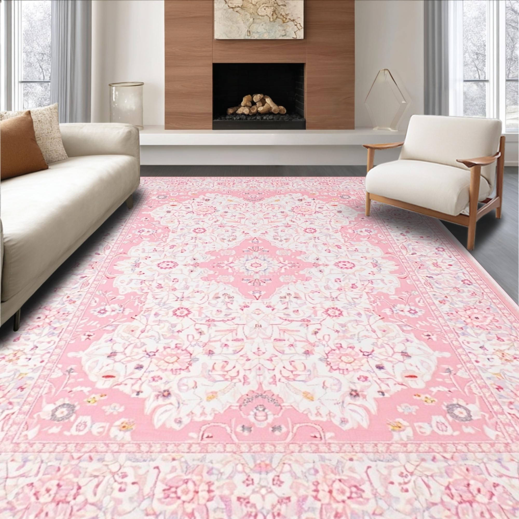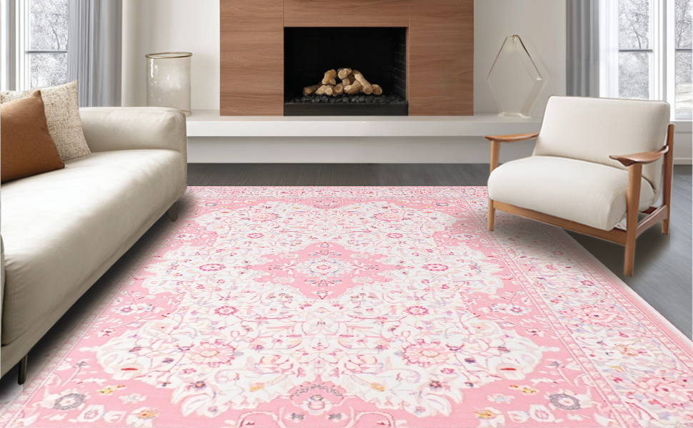 Ultra Soft Area Rug, Non Slip, Stain Resistant, Washable Area Rugs for Living Room, Bedroom, Elegant Shaggy Pink Textured Delight(Pink) Overview: