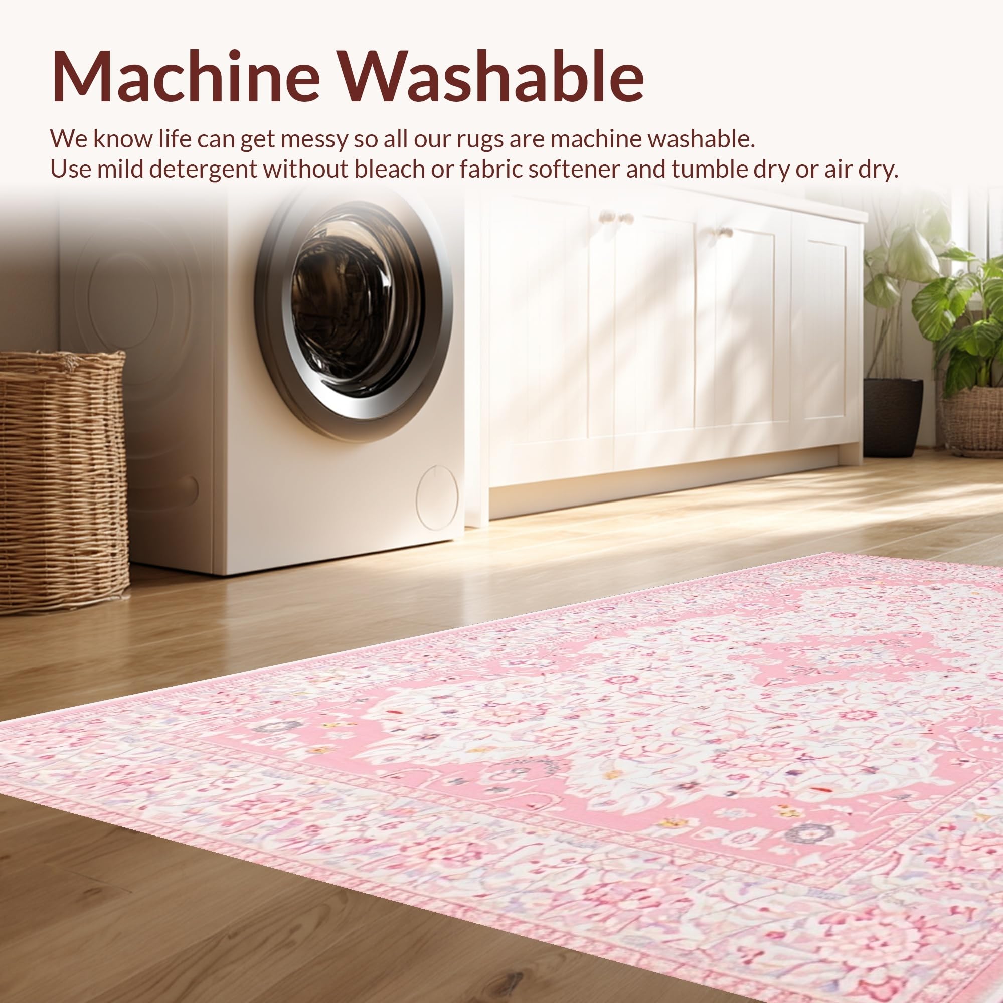 - Machine Washable: Our rugs can be easily thrown in the wash machine.