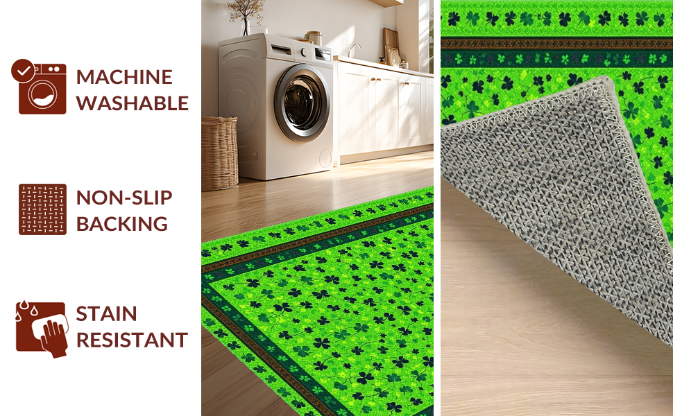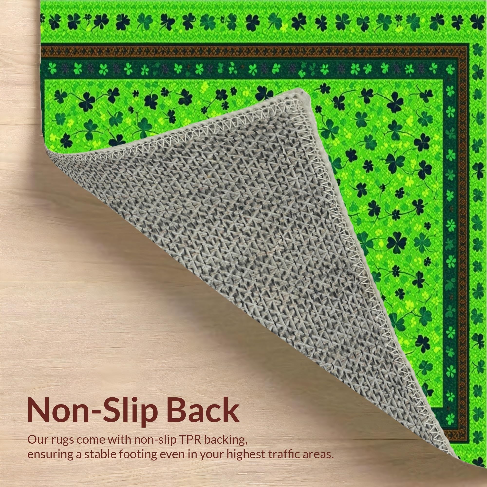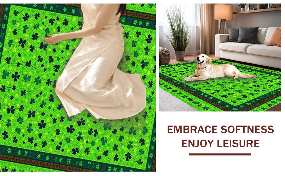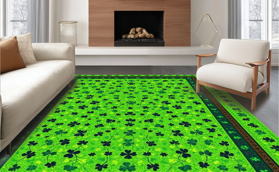 Ultra Soft Area Rug, Non Slip, Stain Resistant, Washable Area Rugs for Living Room, Bedroom, Elegant Shamrock Patterned Accent(Green) Overview: