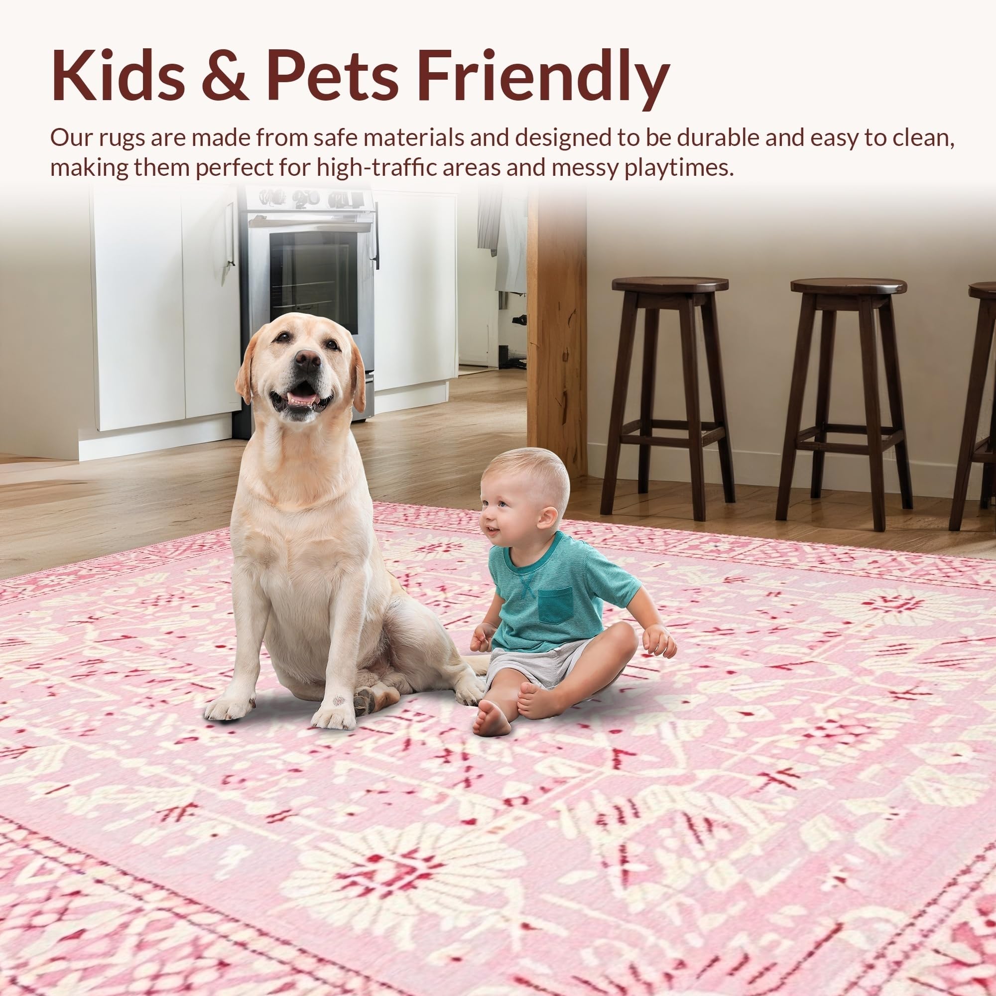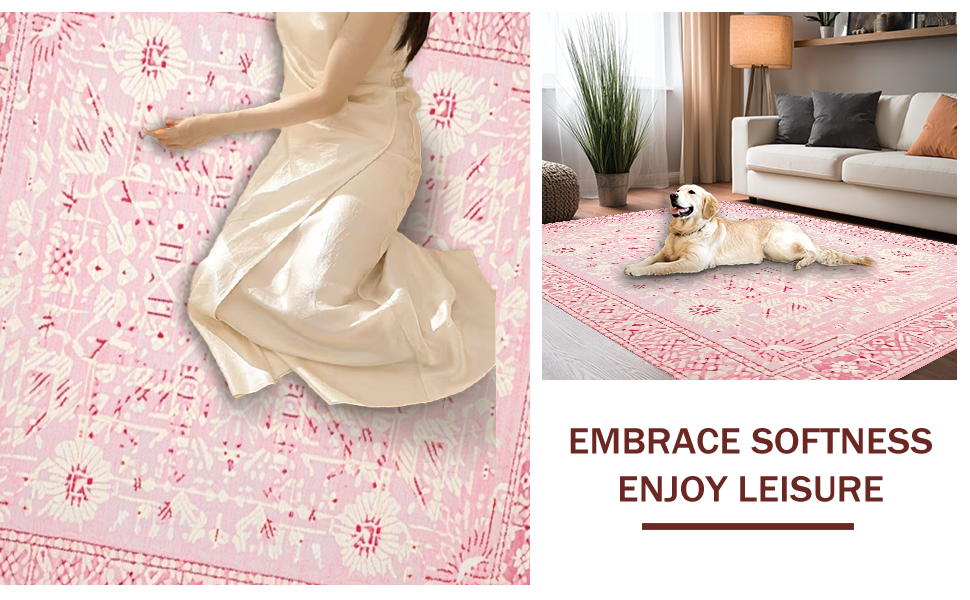 Ultra Soft Area Rug, Non Slip, Stain Resistant, Washable Area Rugs for Living Room, Bedroom, Elegant Soft Geometric Touch(Pink) Overview:
