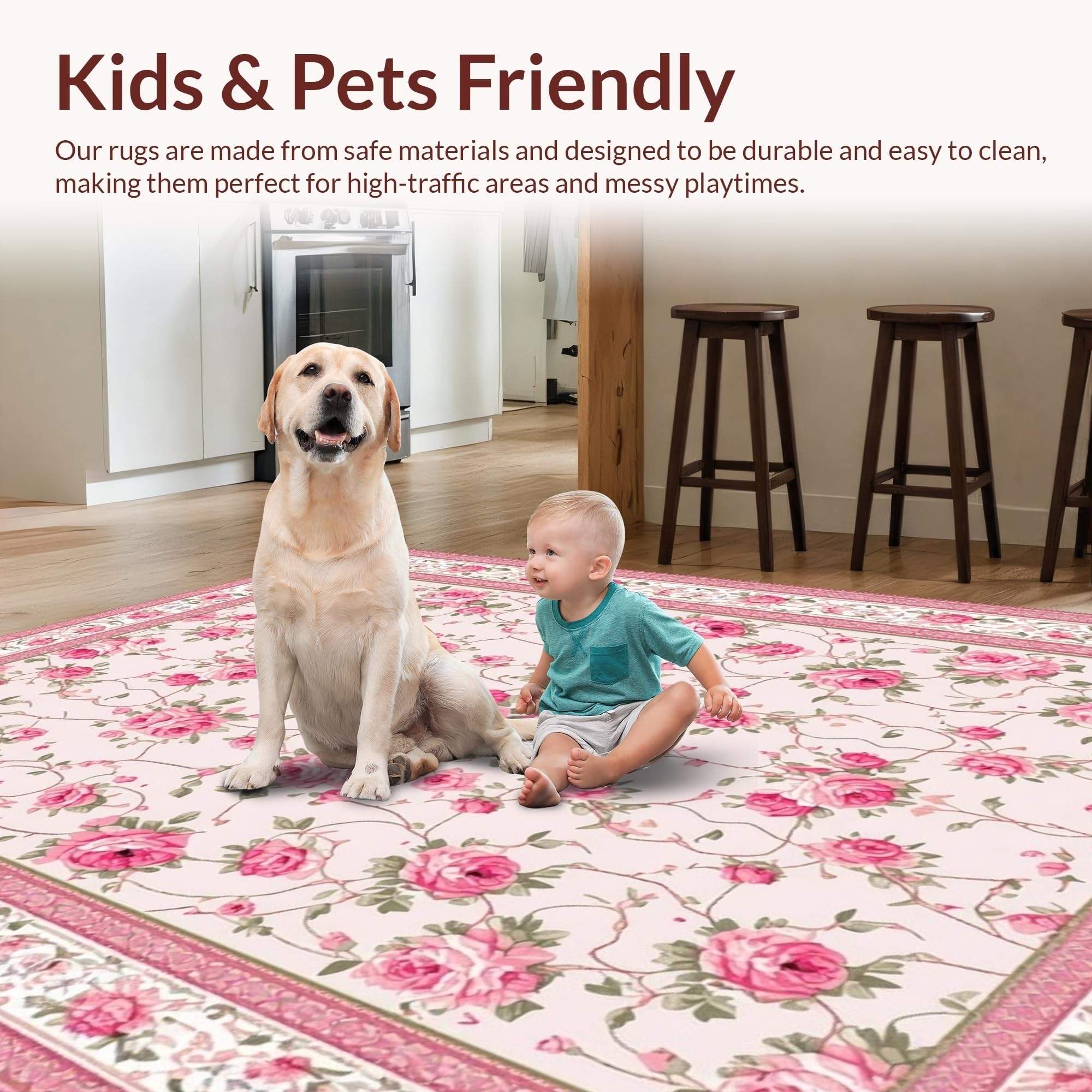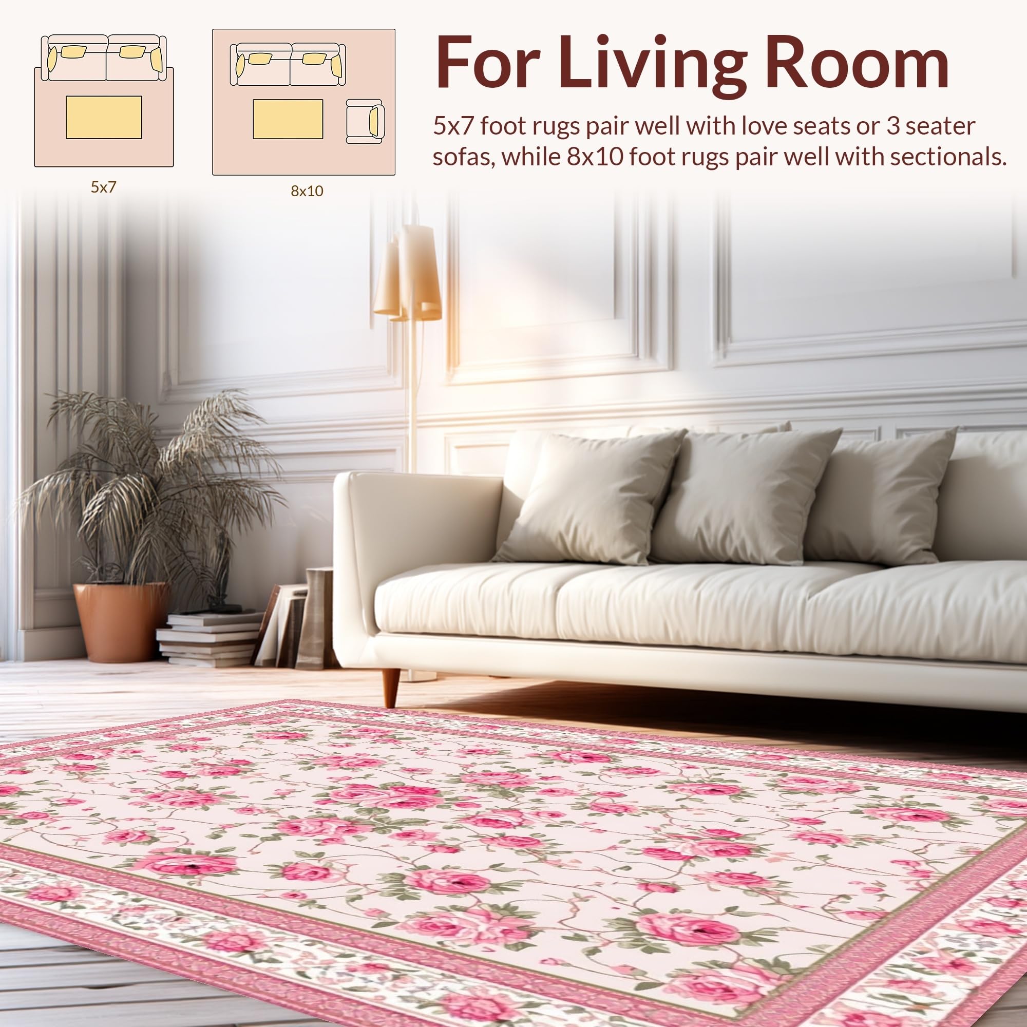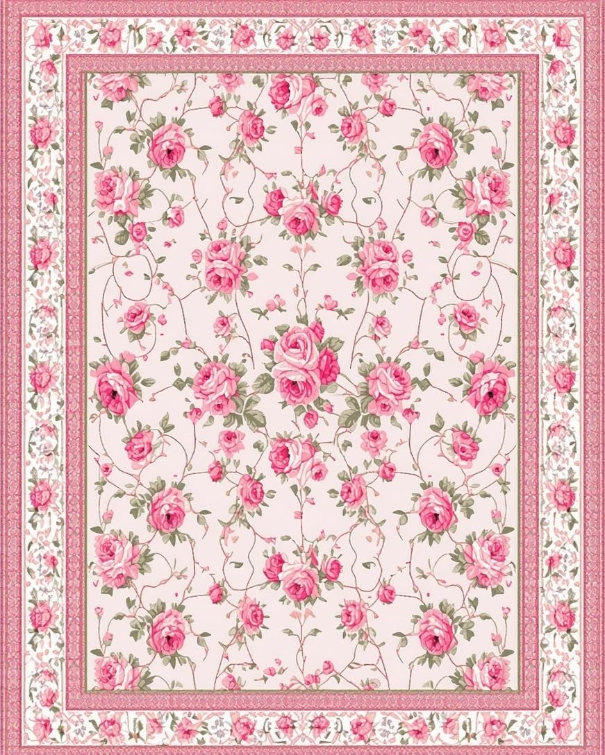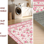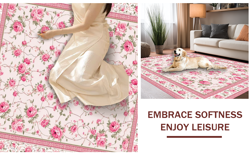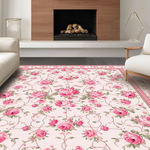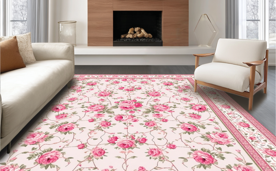Ultra Soft Area Rug, Non Slip, Stain Resistant, Washable Area Rugs for Living Room, Bedroom, Elegant Soft Green Floral Motif(Pink) Overview: