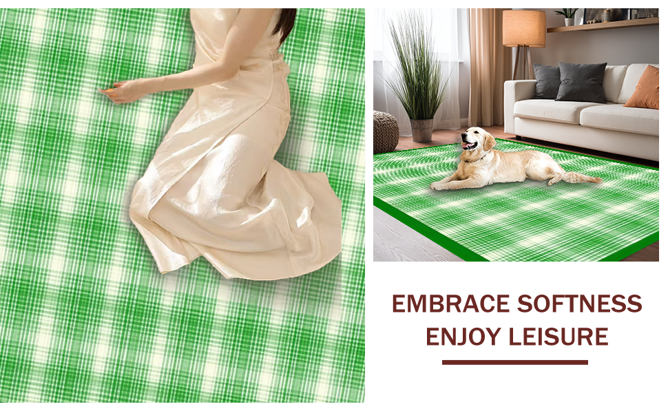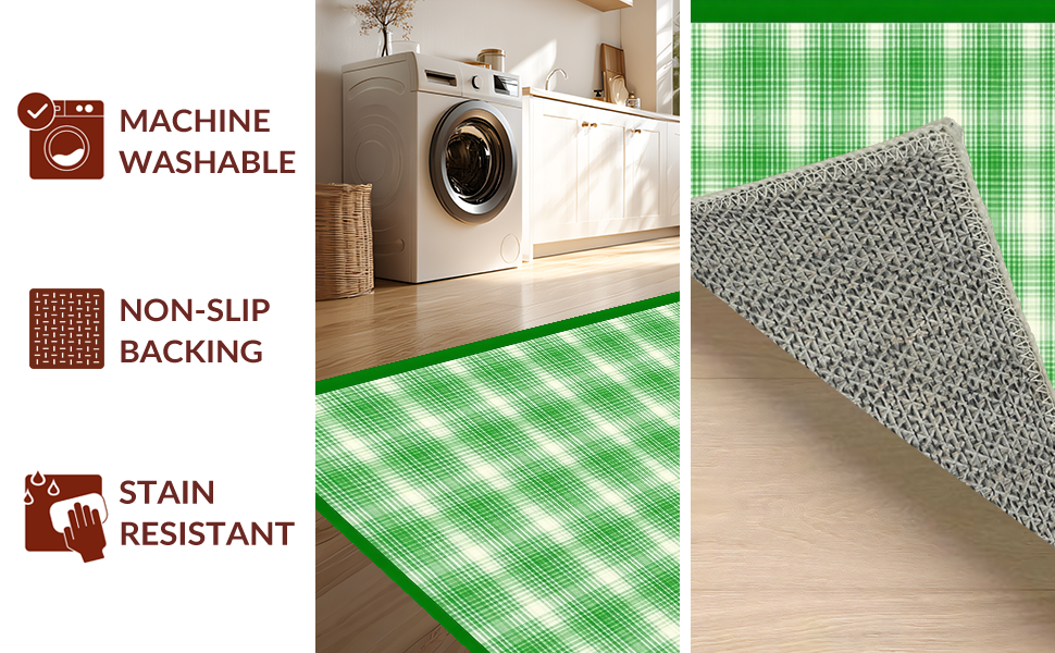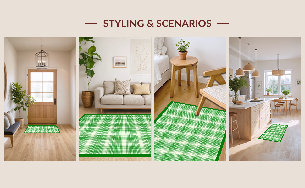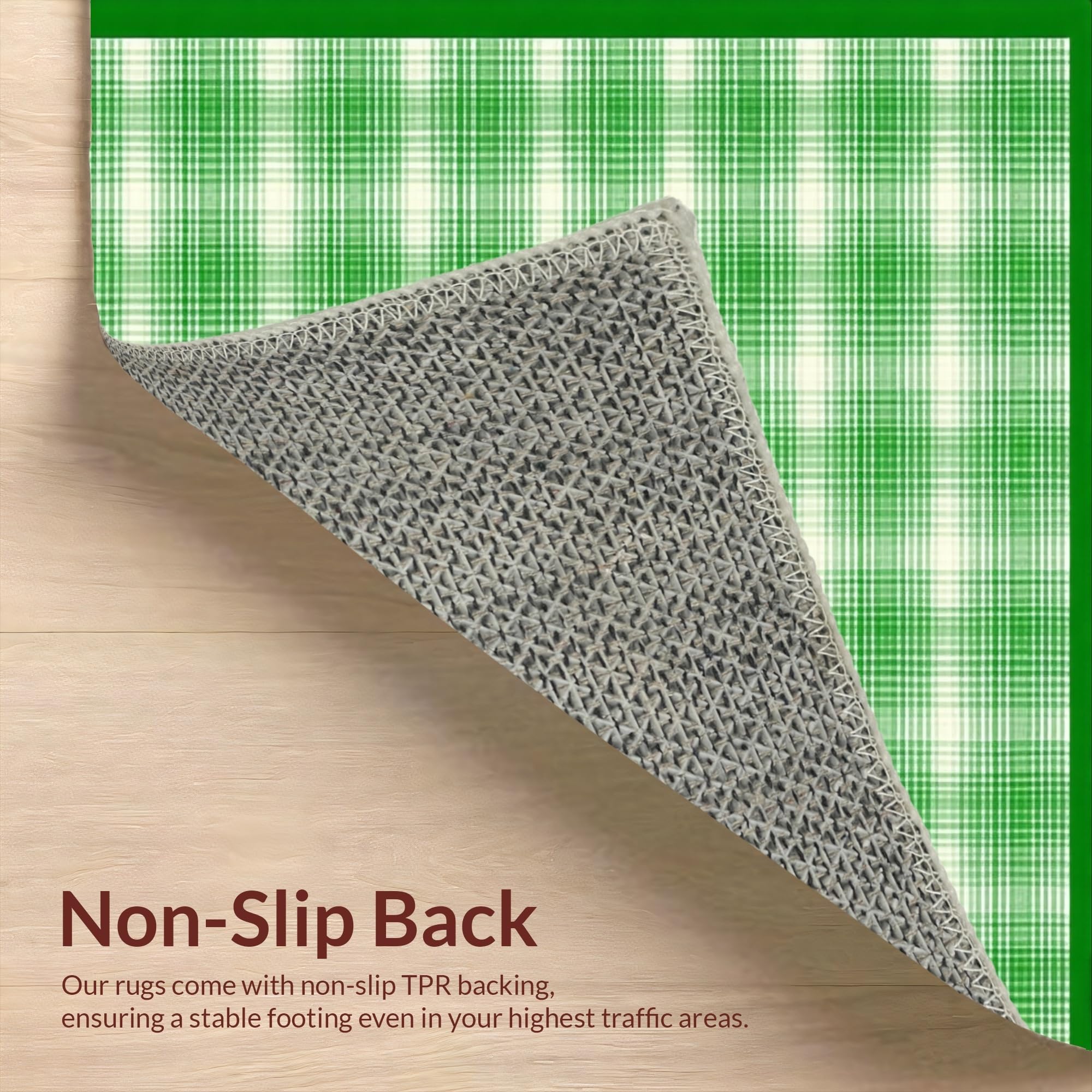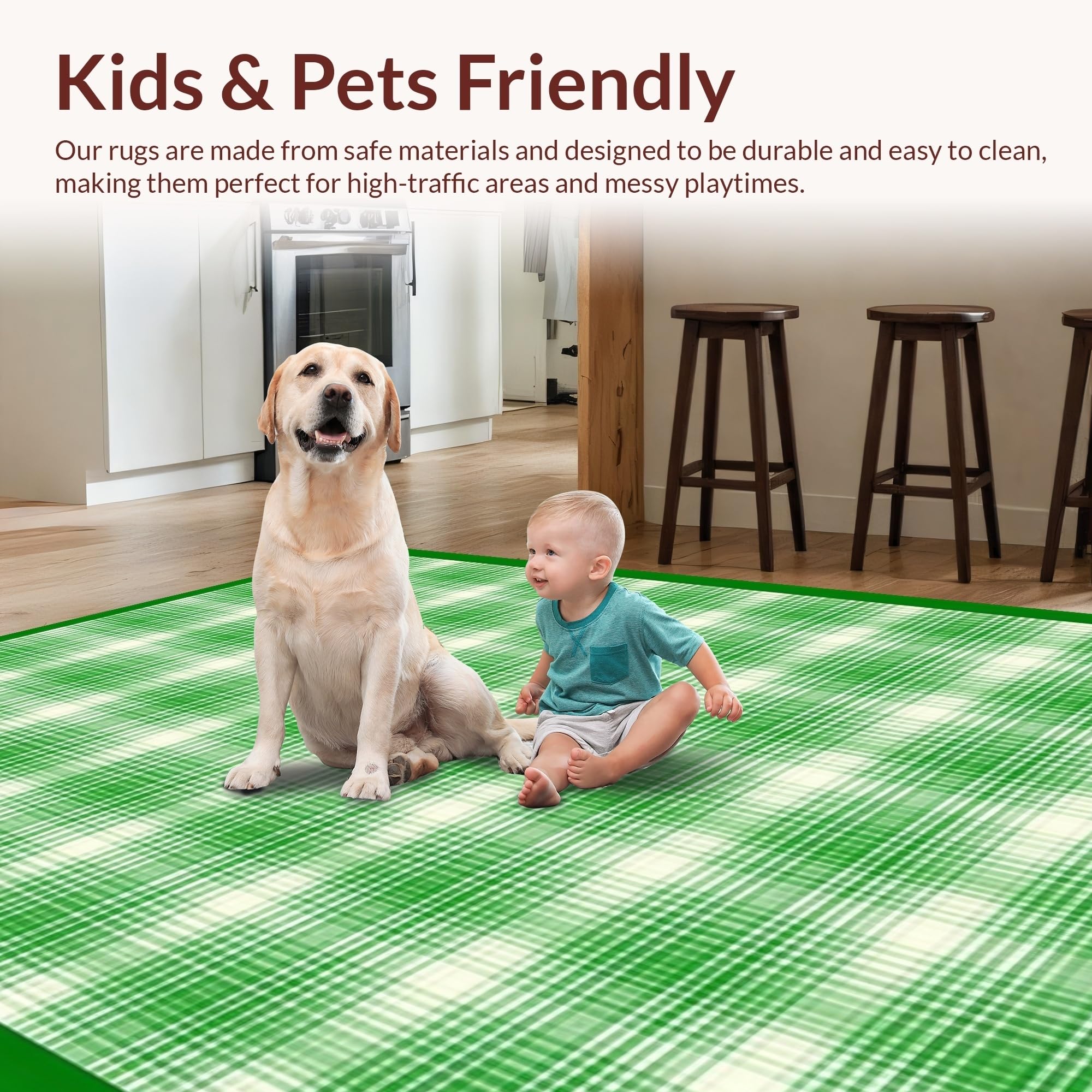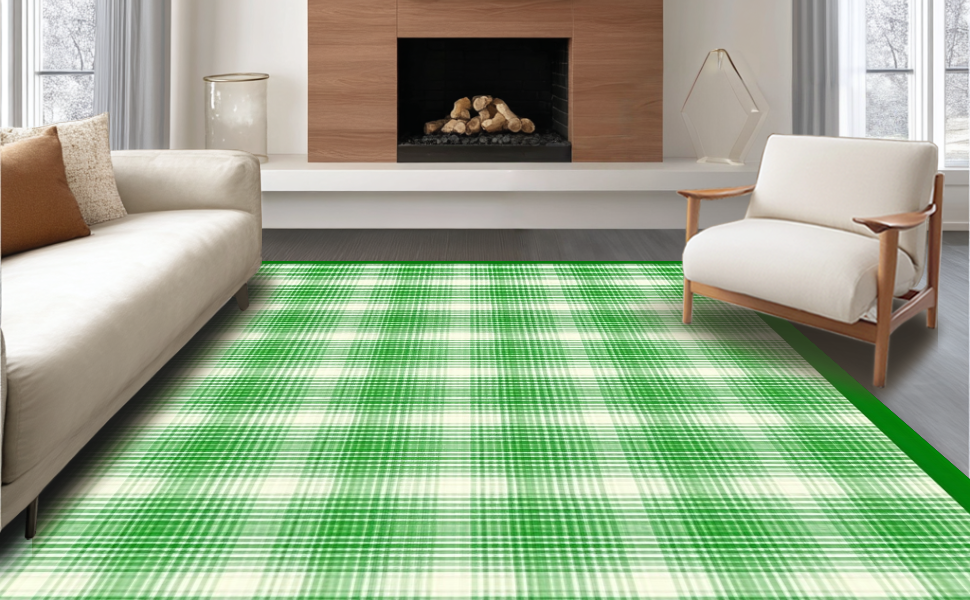 Ultra Soft Area Rug, Non Slip, Stain Resistant, Washable Area Rugs for Living Room, Bedroom, Elegant Soft Green Plaid Arrangement(Green) Overview: