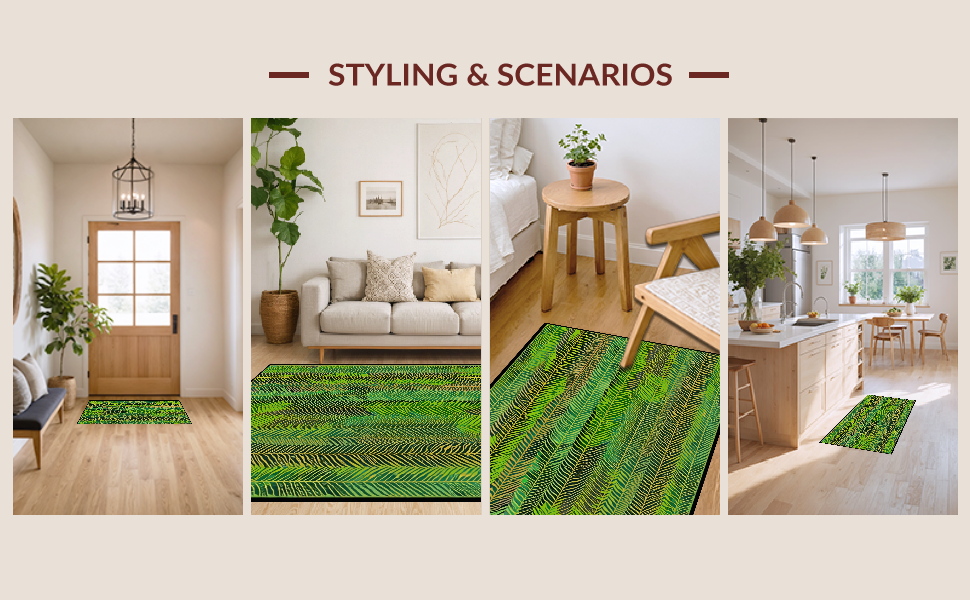Ultra Soft Area Rug, Non Slip, Stain Resistant, Washable Area Rugs for Living Room, Bedroom, Elegant Soft-Hued Geometric Print(Green) Overview: