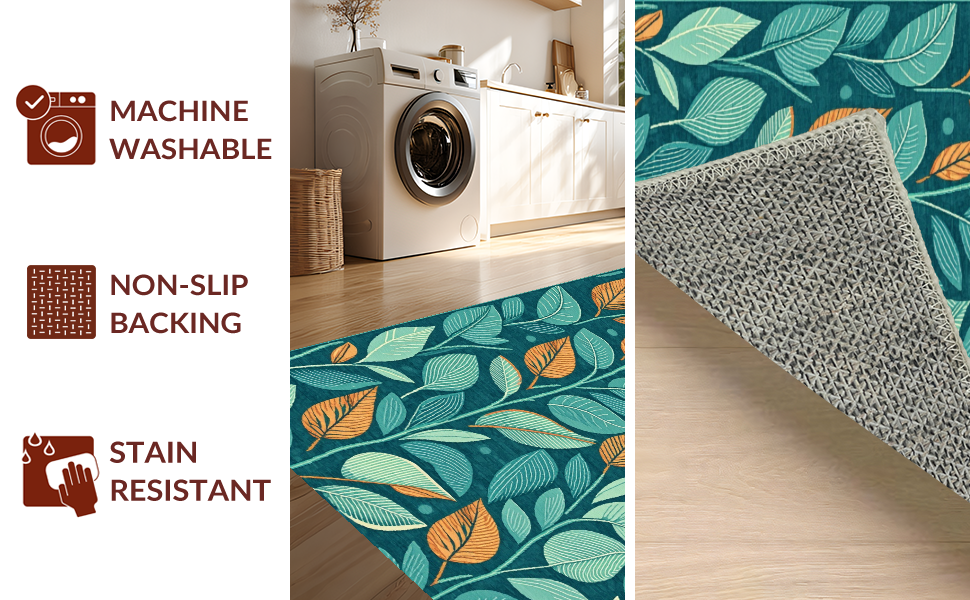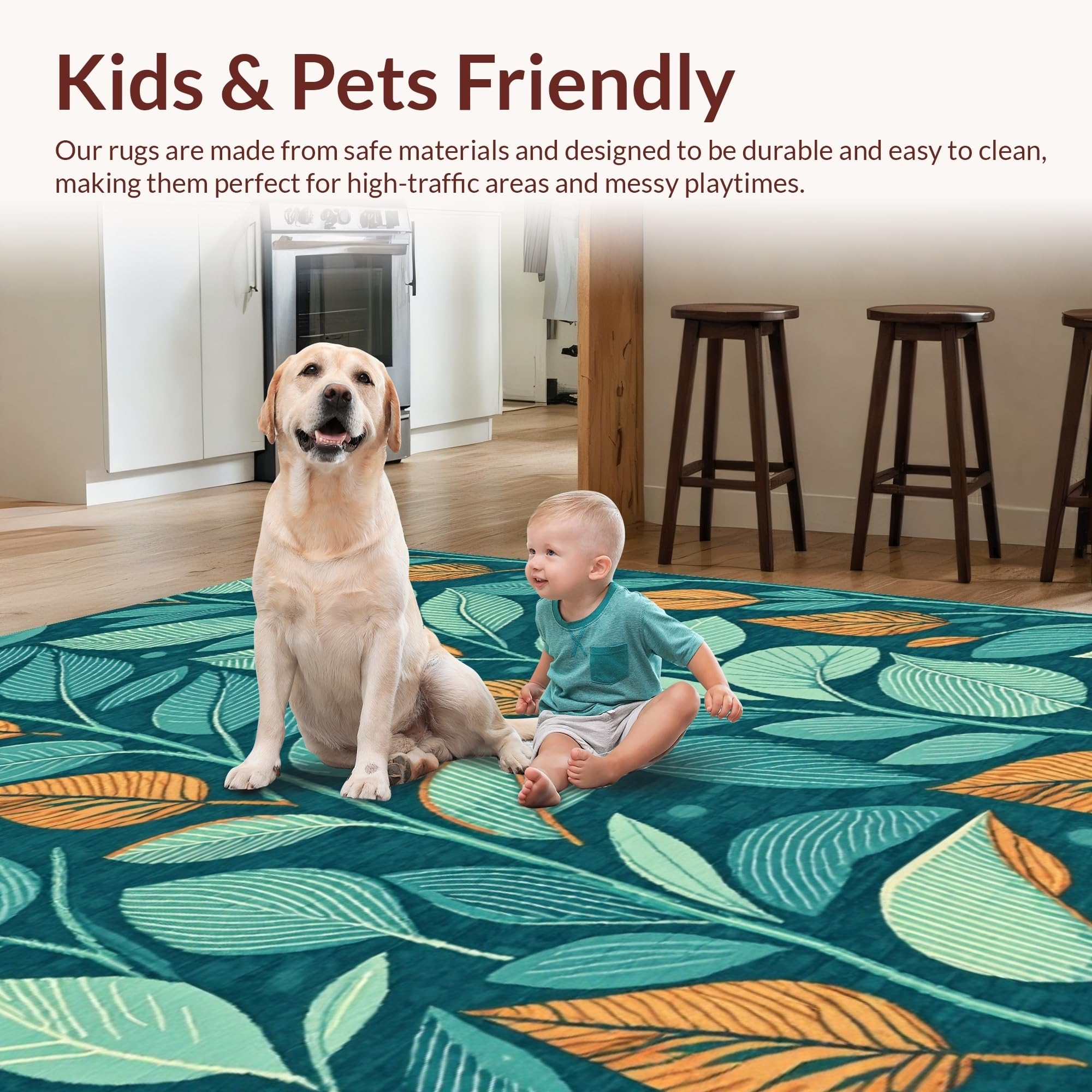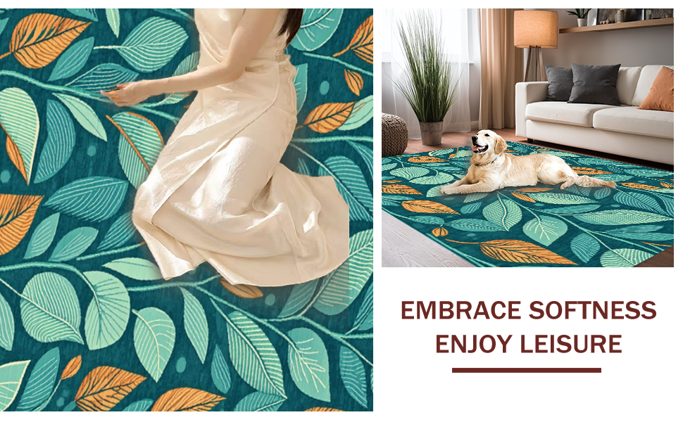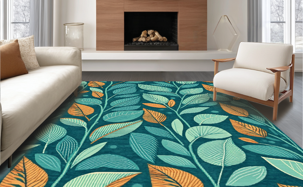 Ultra Soft Area Rug, Non Slip, Stain Resistant, Washable Area Rugs for Living Room, Bedroom, Elegant Soft Teal and Orange Contrast(Blue) Overview: