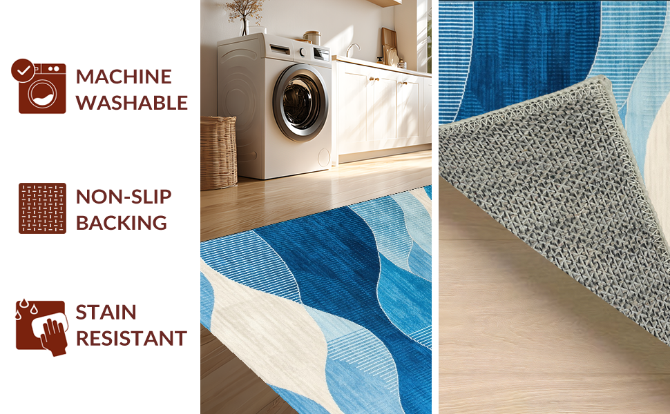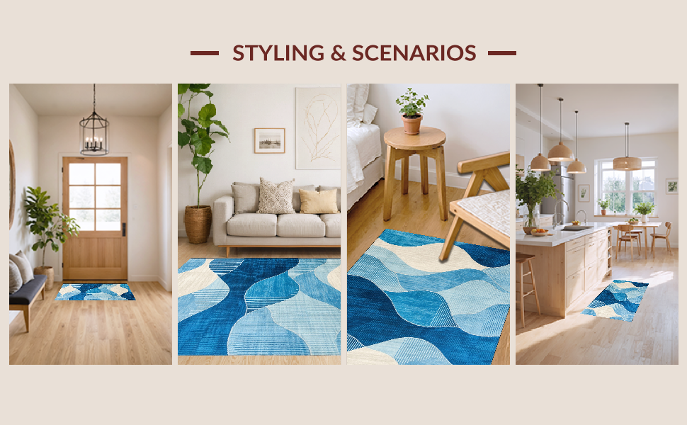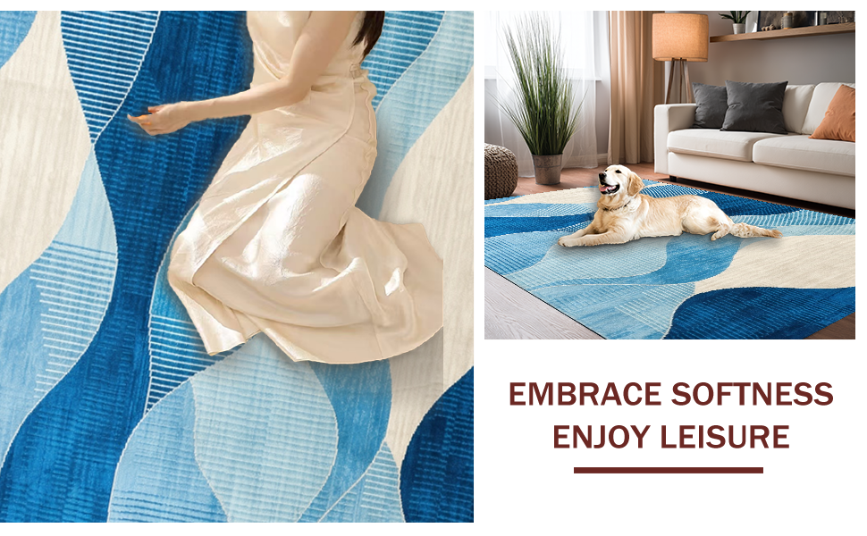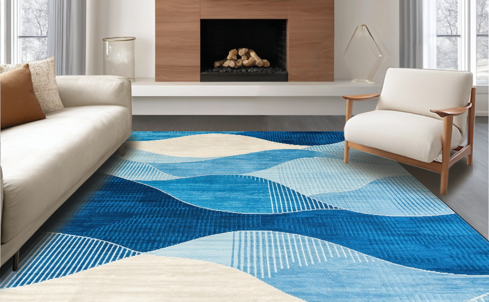 Ultra Soft Area Rug, Non Slip, Stain Resistant, Washable Area Rugs for Living Room, Bedroom, Elegant Soft Tone Artistic Design(Blue) Overview: