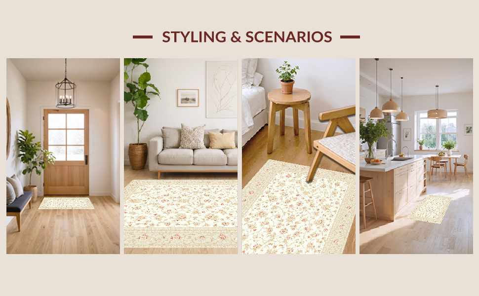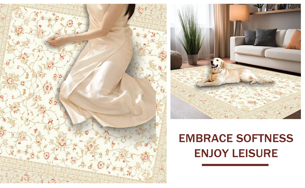 Ultra Soft Area Rug, Non Slip, Stain Resistant, Washable Area Rugs for Living Room, Bedroom, Elegant Soft Toned Botanical Arrangement(Beige) Overview: