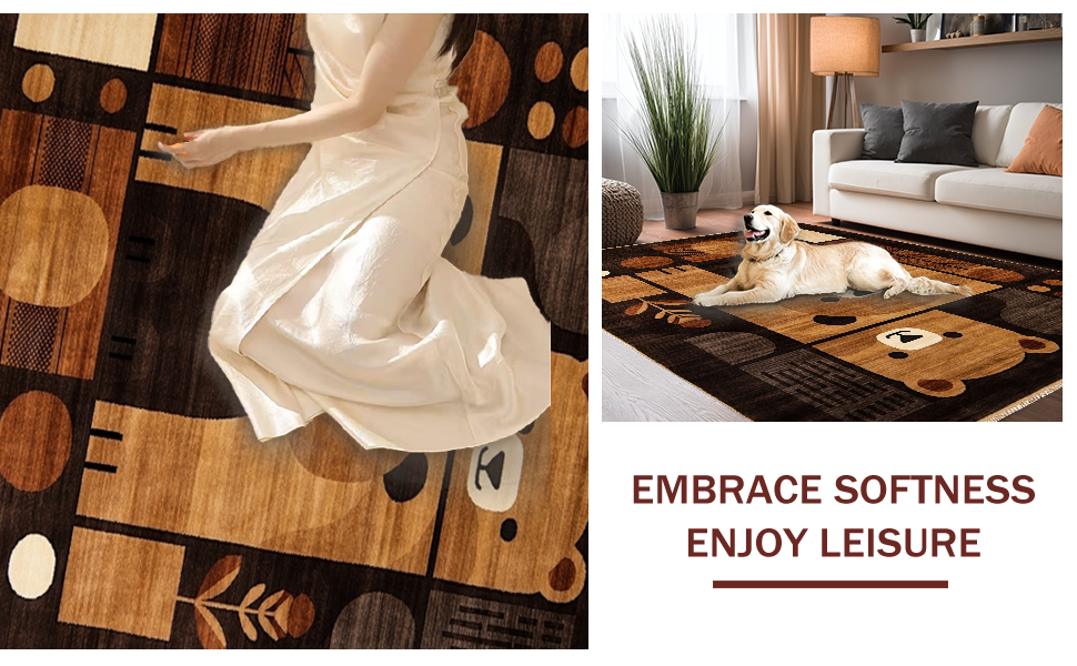 Ultra Soft Area Rug, Non Slip, Stain Resistant, Washable Area Rugs for Living Room, Bedroom, Elegant Soft Toned Furry Arrangement(Brown) Overview: