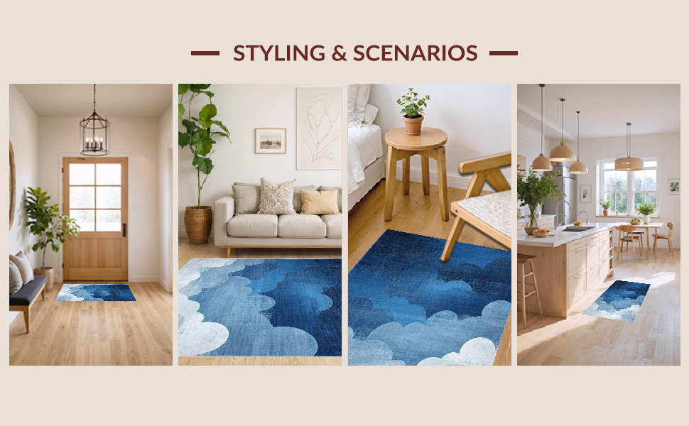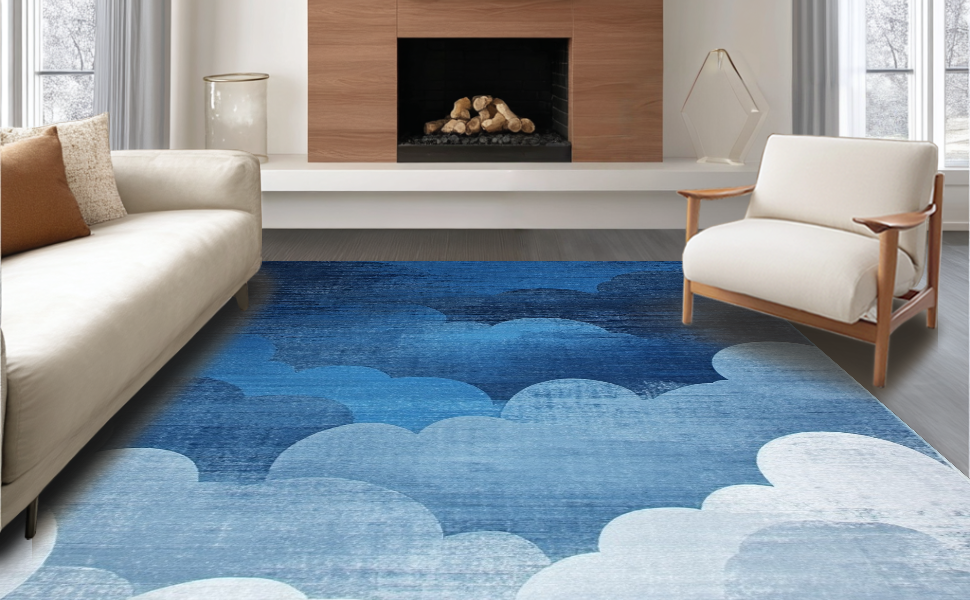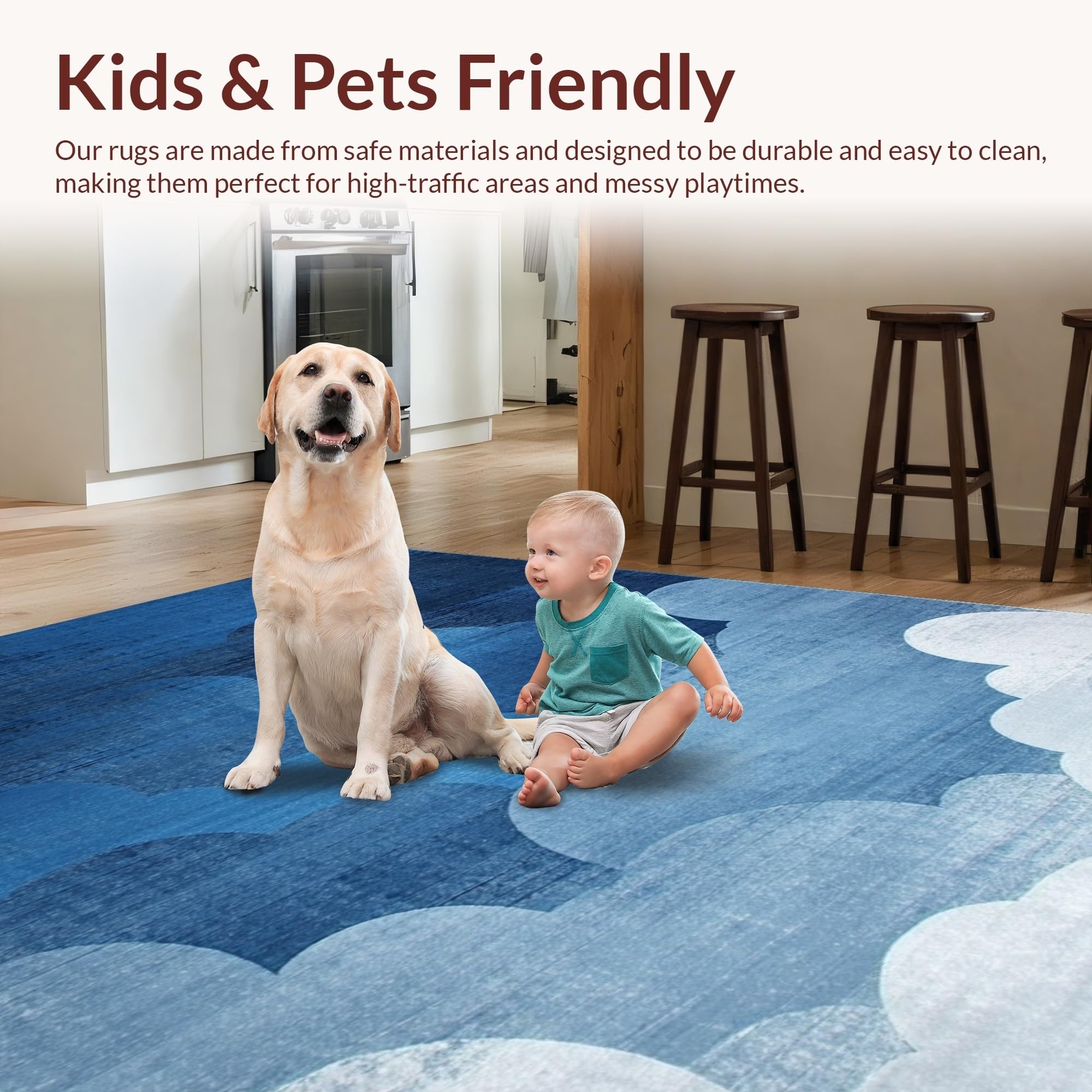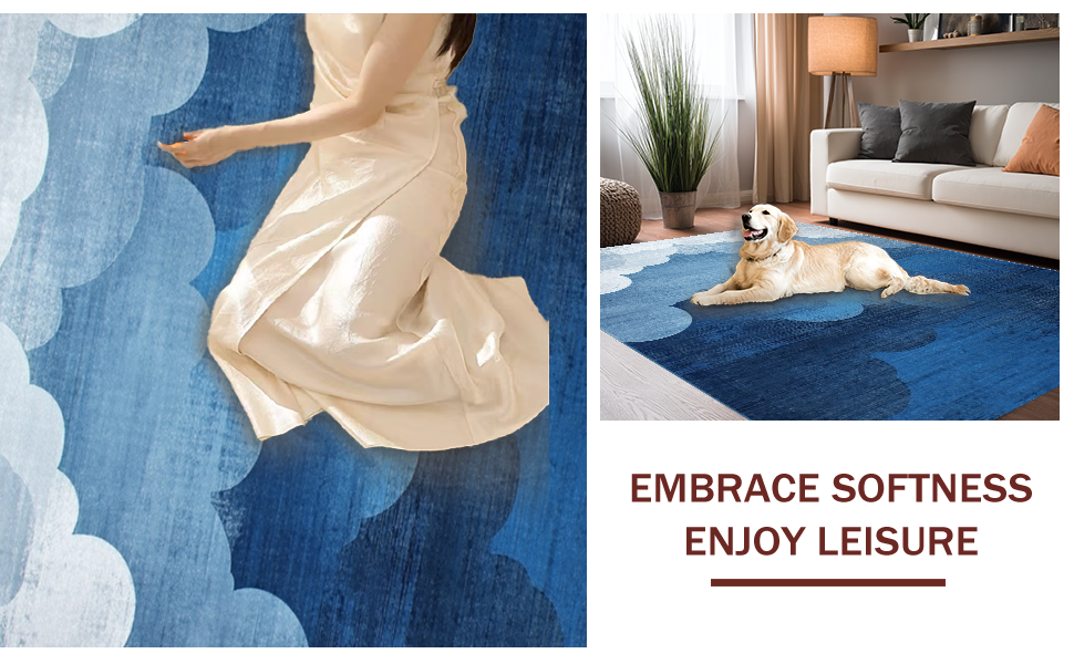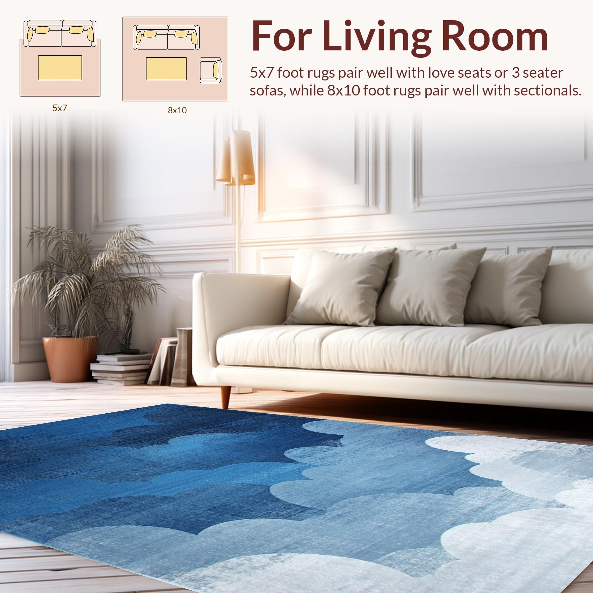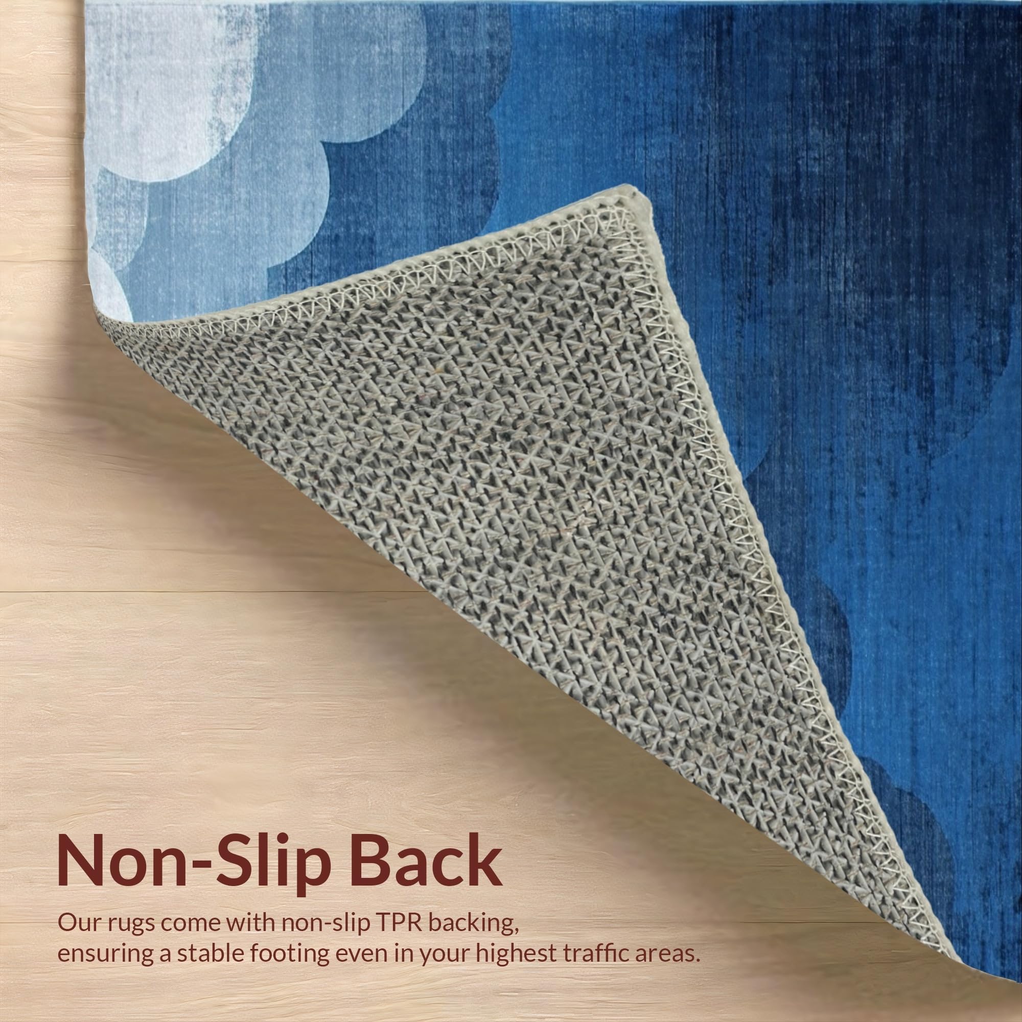 Ultra Soft Area Rug, Non Slip, Stain Resistant, Washable Area Rugs for Living Room, Bedroom, Elegant Soft Toned Pattern(Blue) Overview: