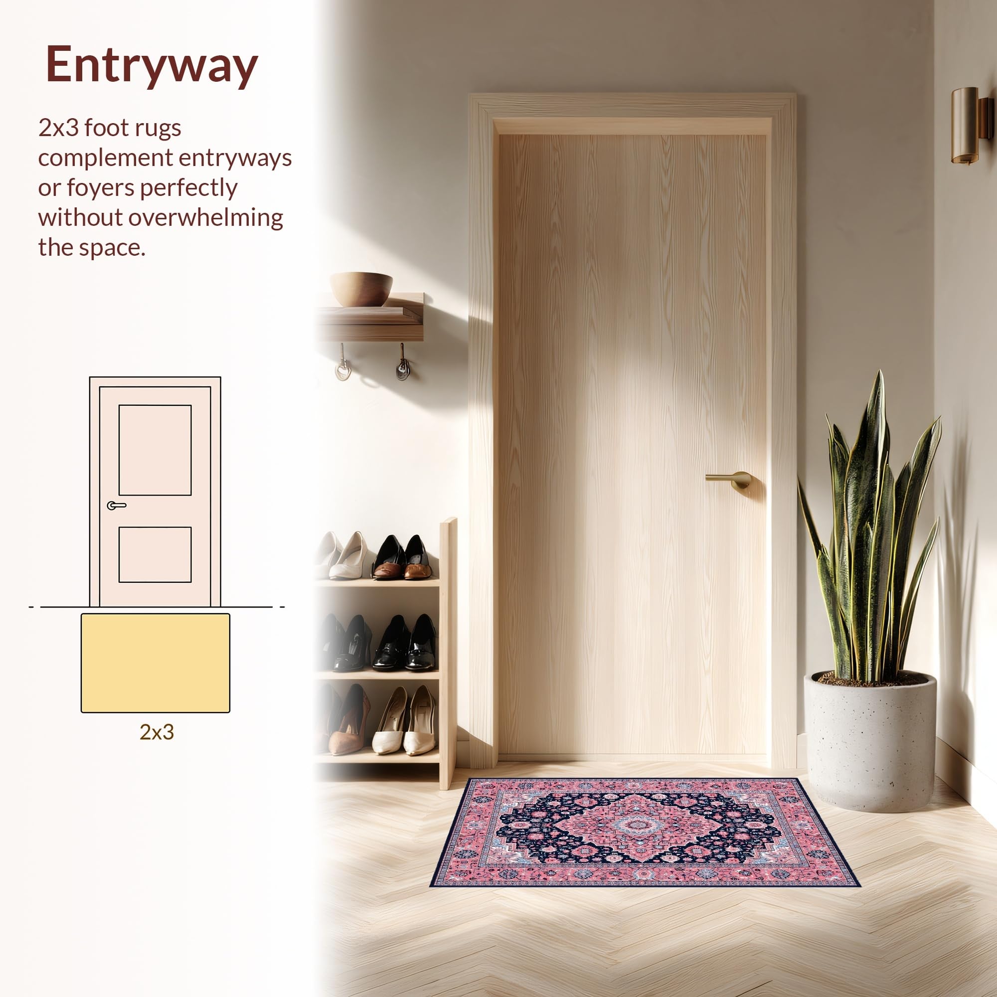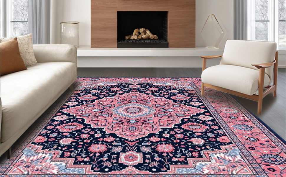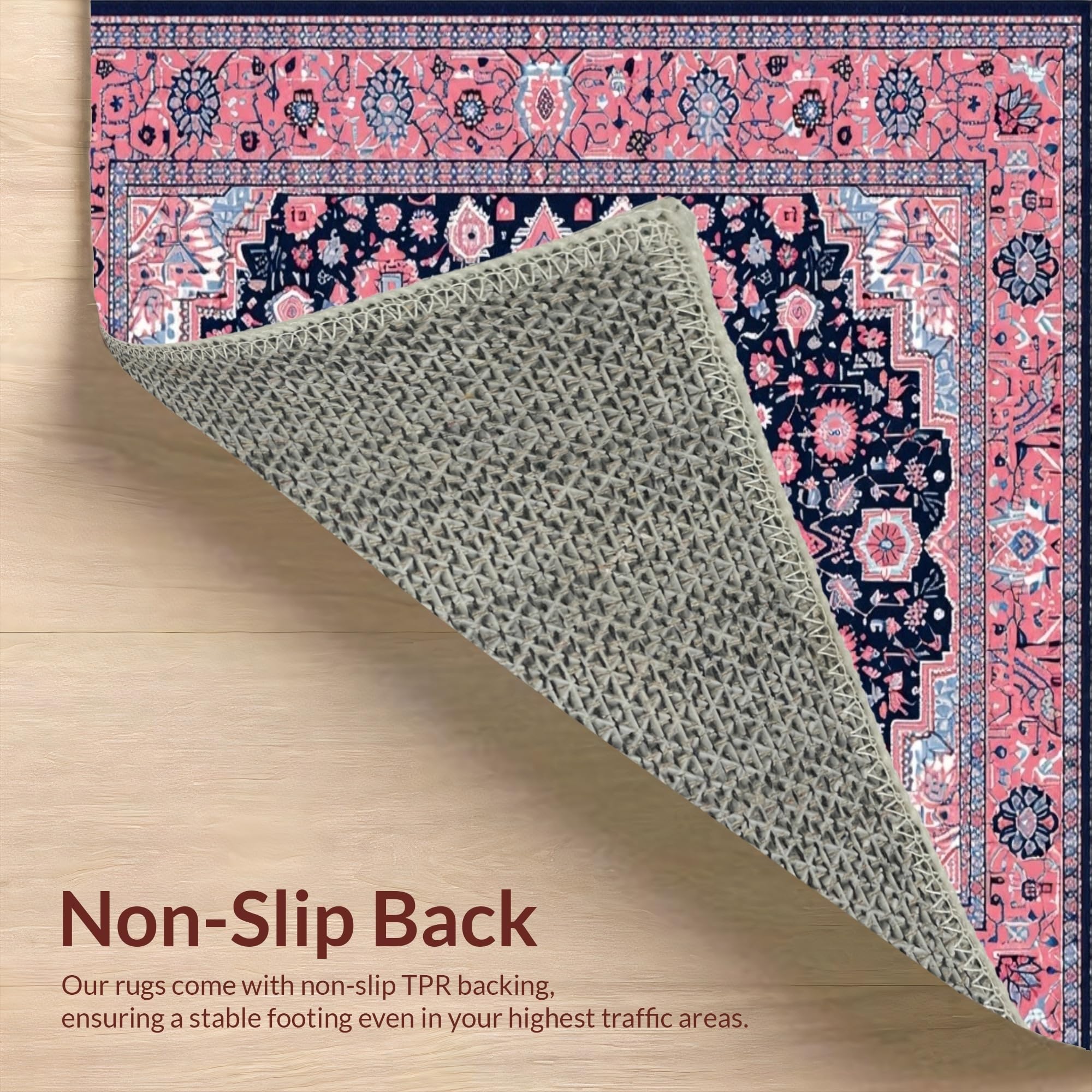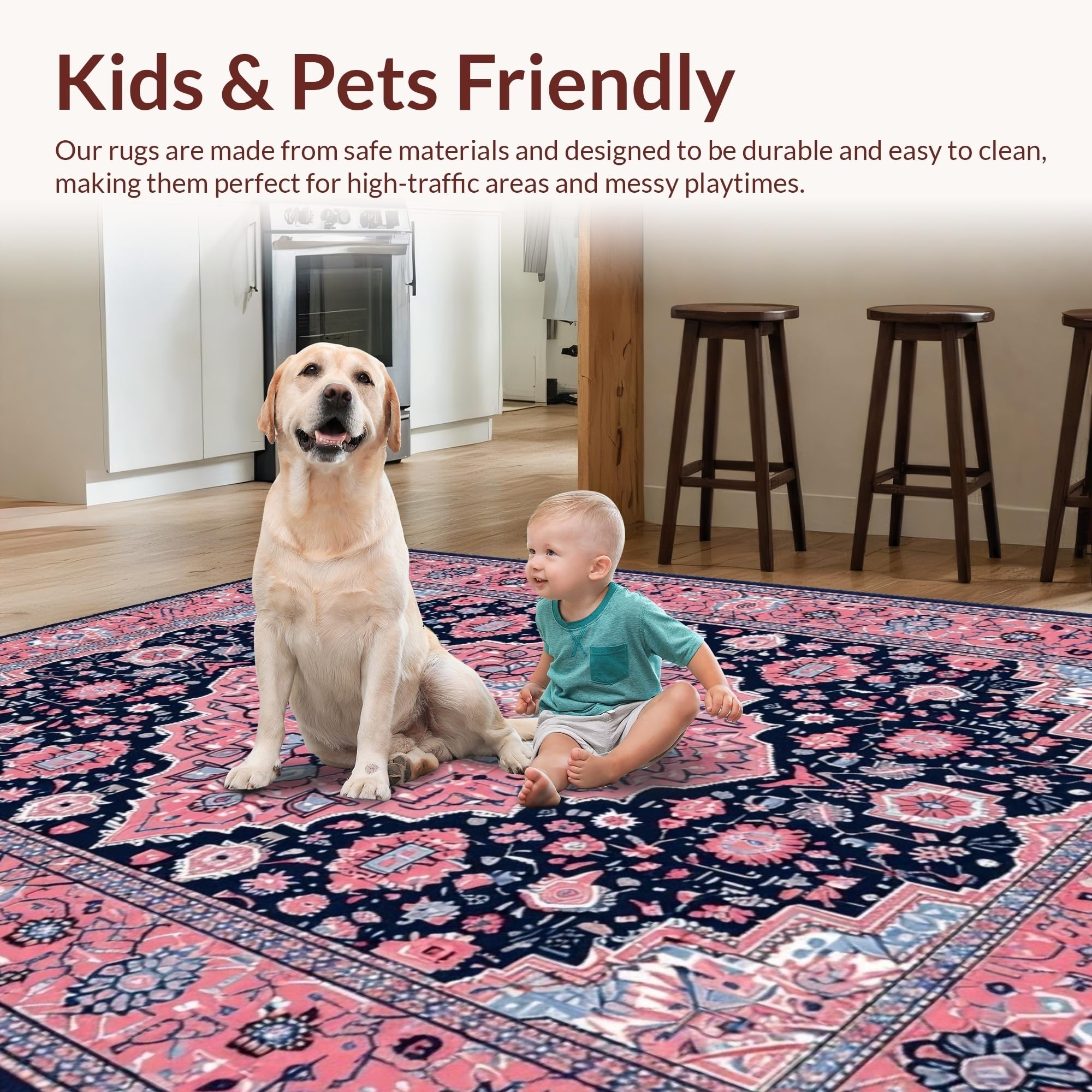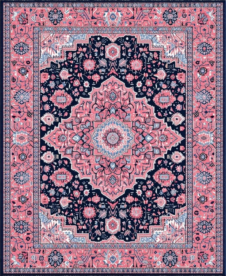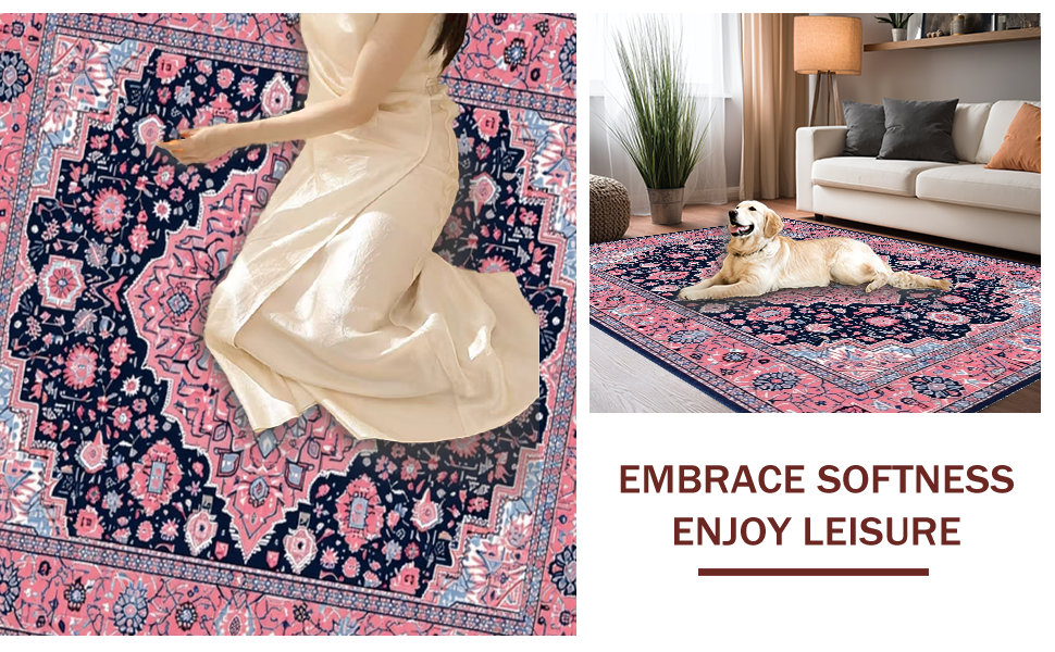 Ultra Soft Area Rug, Non Slip, Stain Resistant, Washable Area Rugs for Living Room, Bedroom, Elegant Soft Toned Tiled Composition(Pink) Overview:
