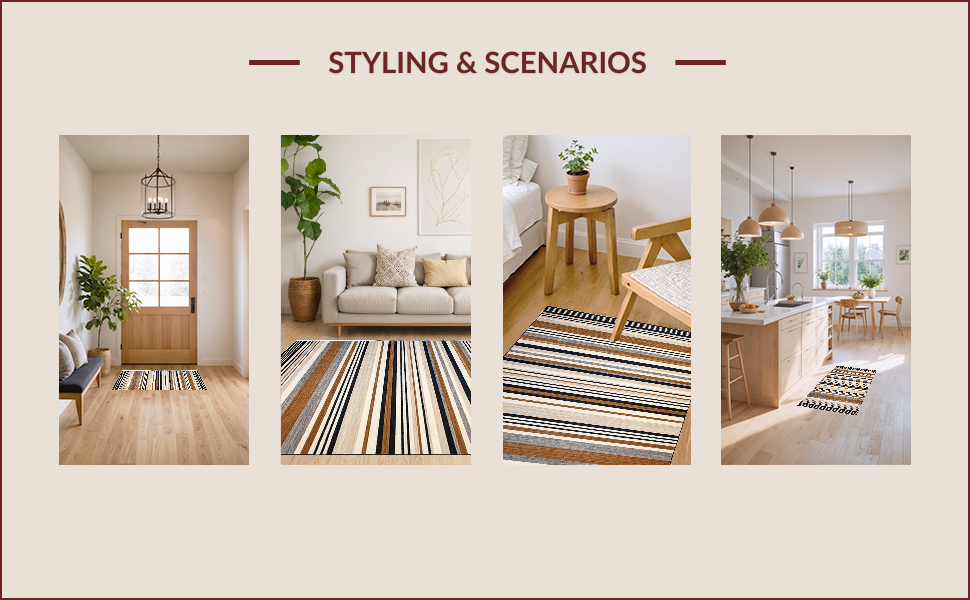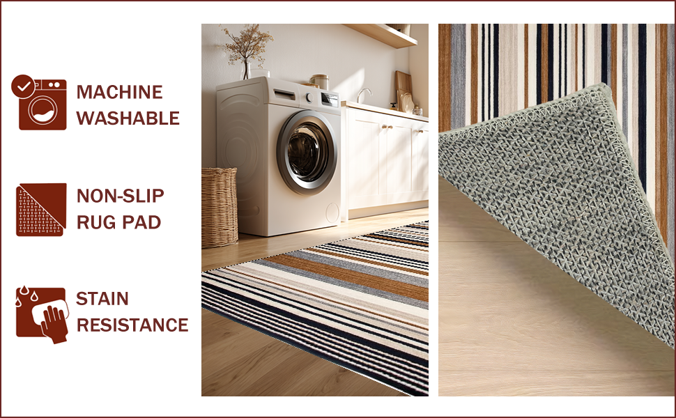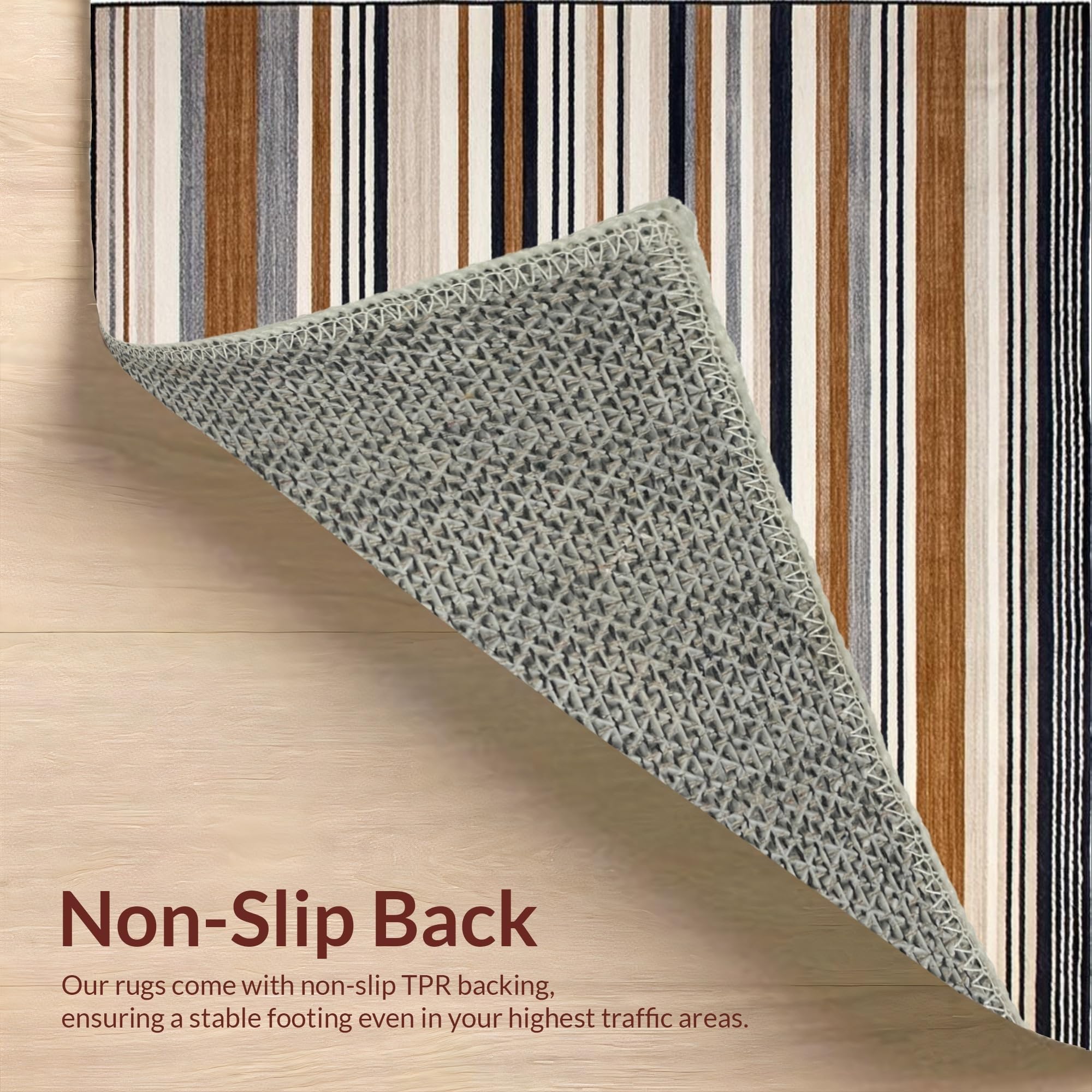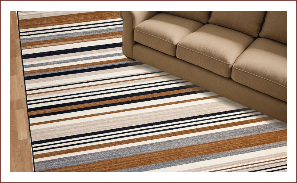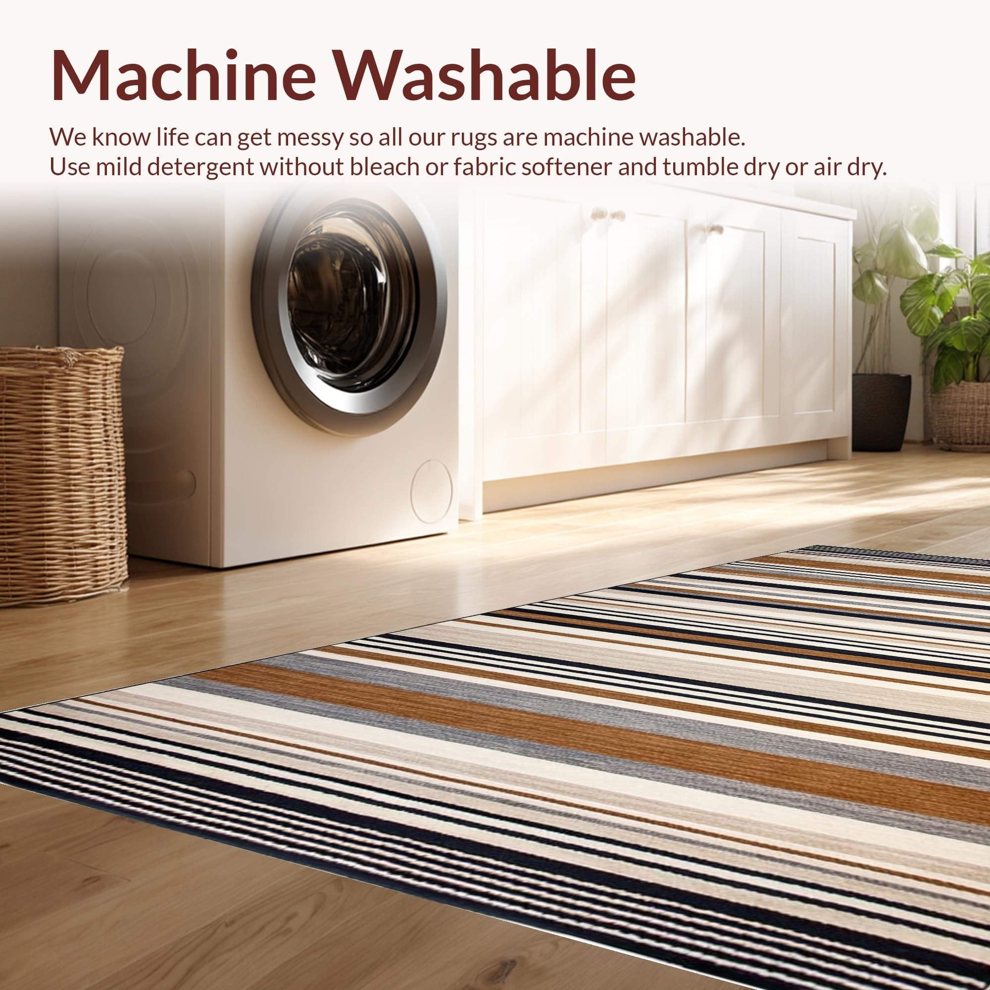 Ultra Soft Area Rug, Non Slip, Stain Resistant, Washable Area Rugs for Living Room, Bedroom, Elegant Striped Neutral Aesthetic(Brown) Overview: