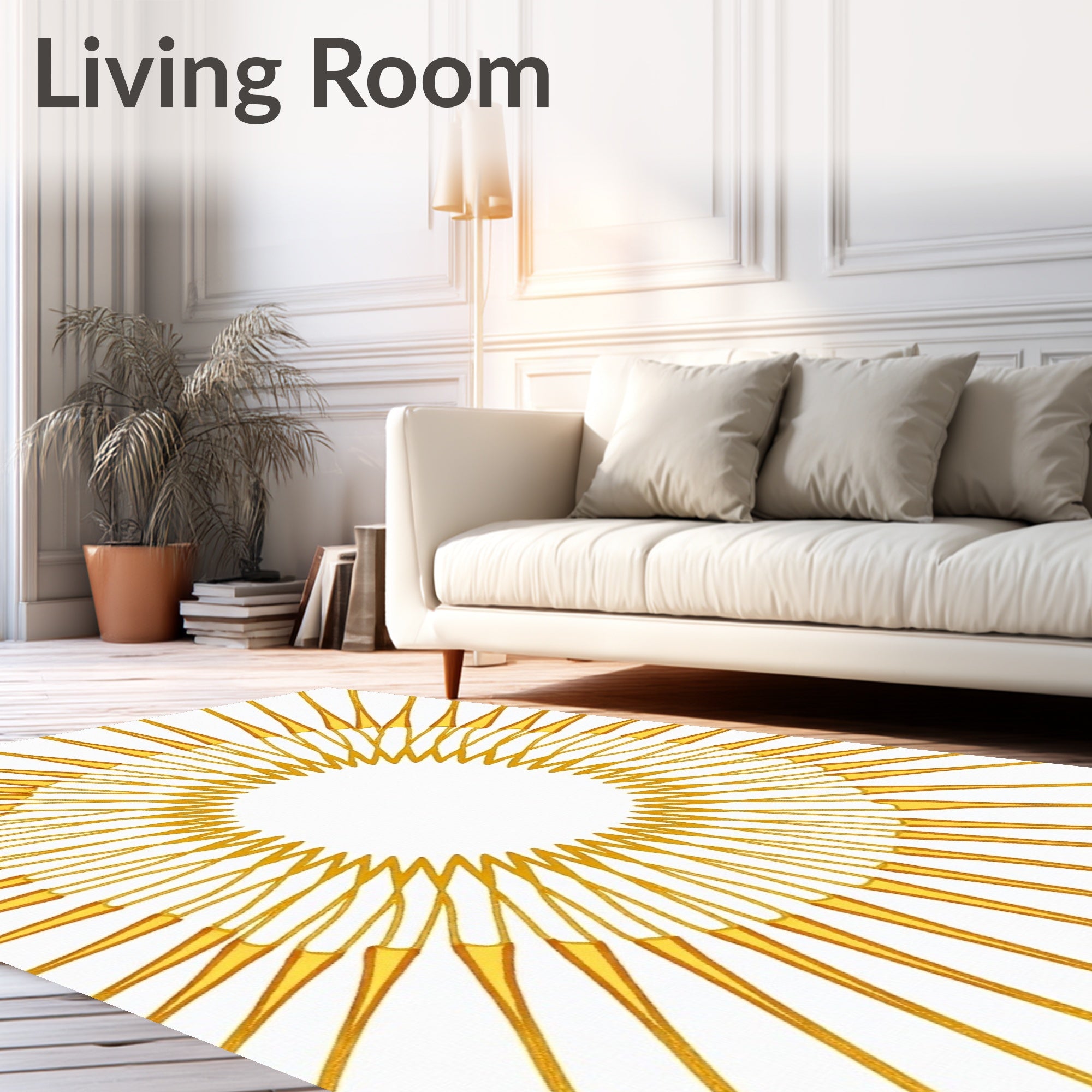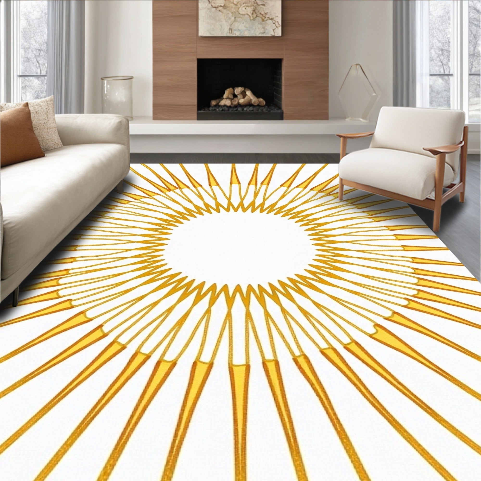 Ultra Soft Area Rug, Non Slip, Stain Resistant, Washable Area Rugs for Living Room, Bedroom, Elegant Sunburst Radial Artistic Tapestry(Gold) Overview: