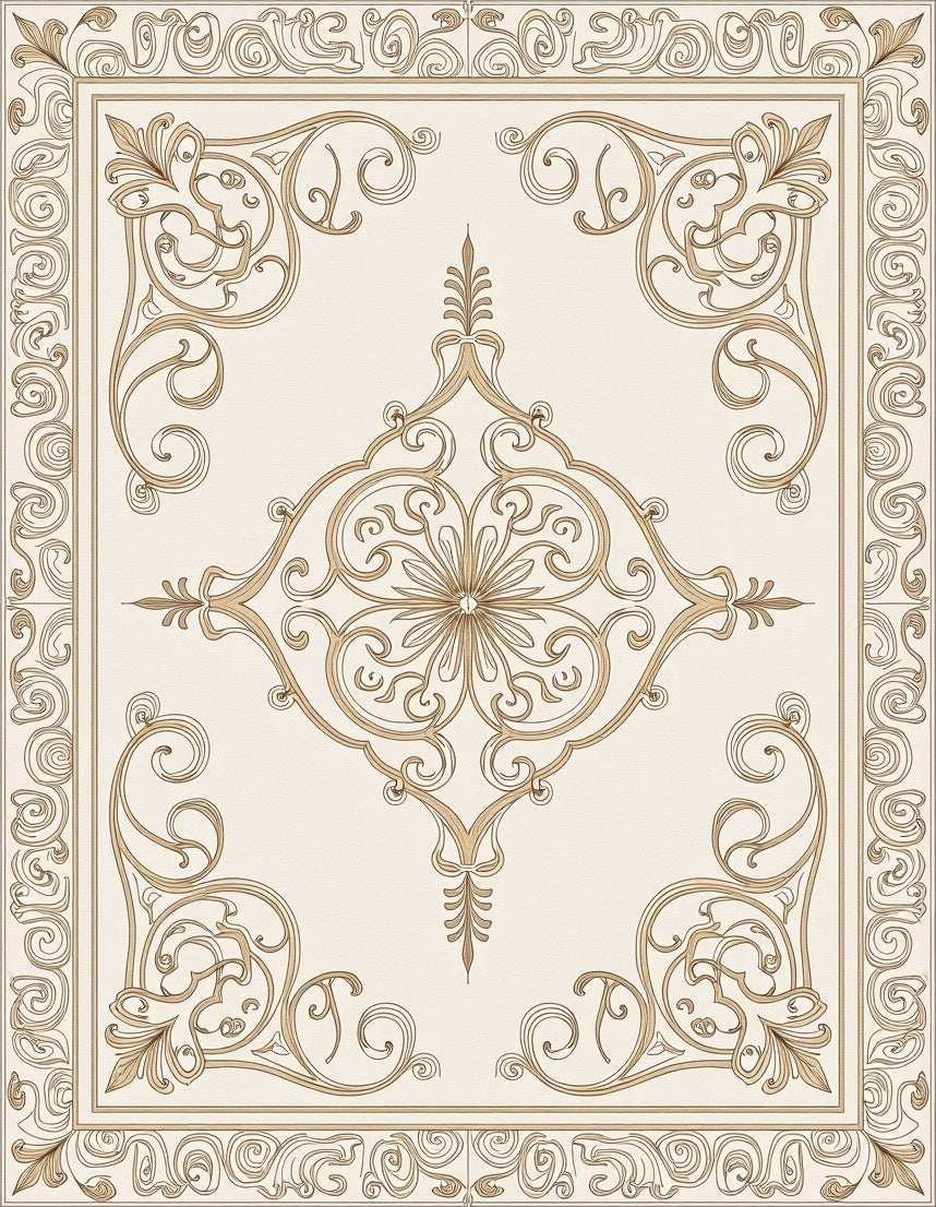 Elegant Swirl Medallion Textured Anti Slip Decorative Floor(Beige)