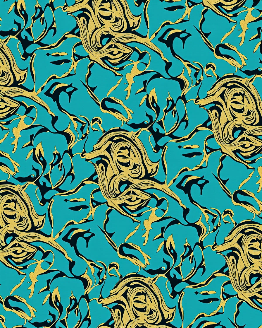 Elegant Swirling Marble Fish Medallion Motif(Turquoise)