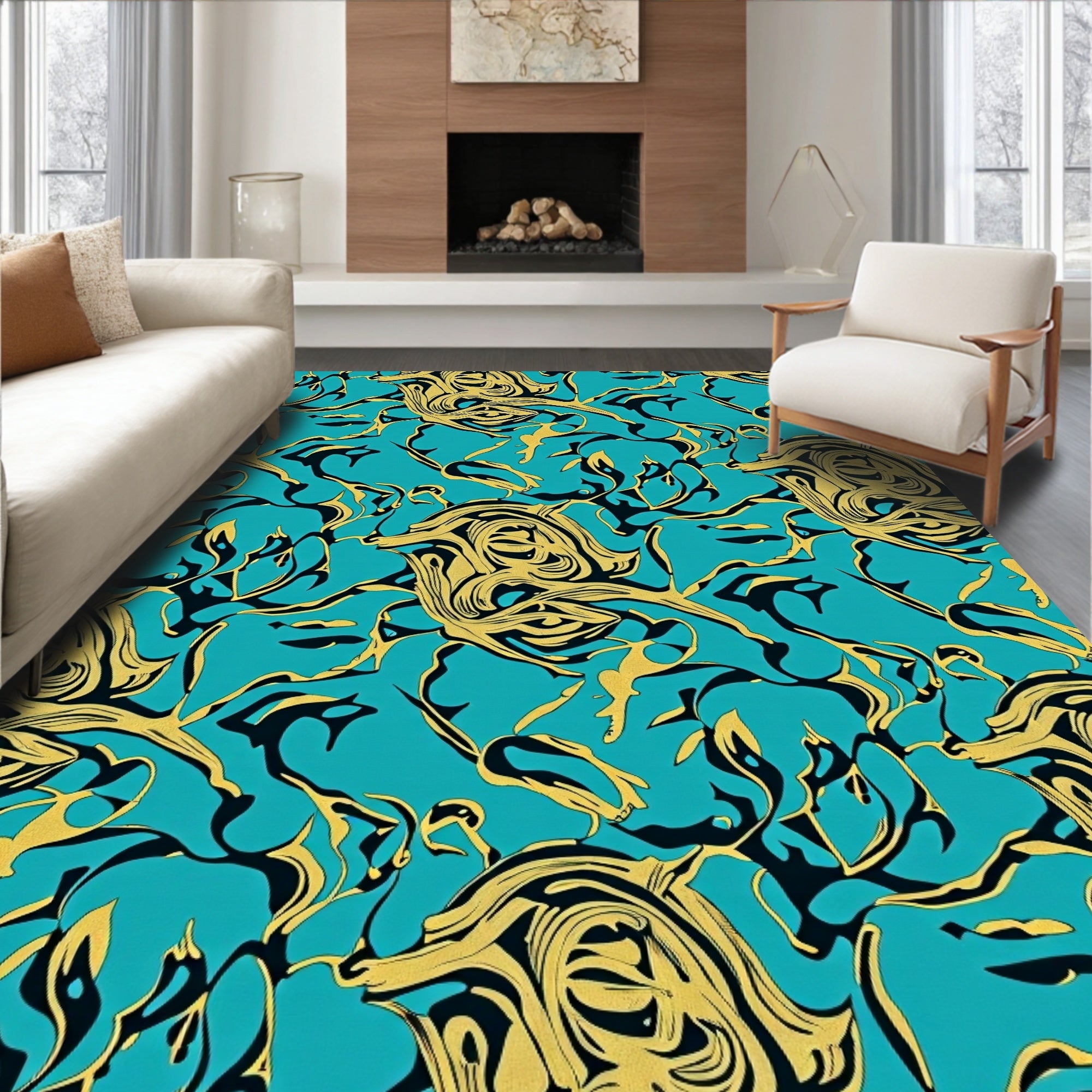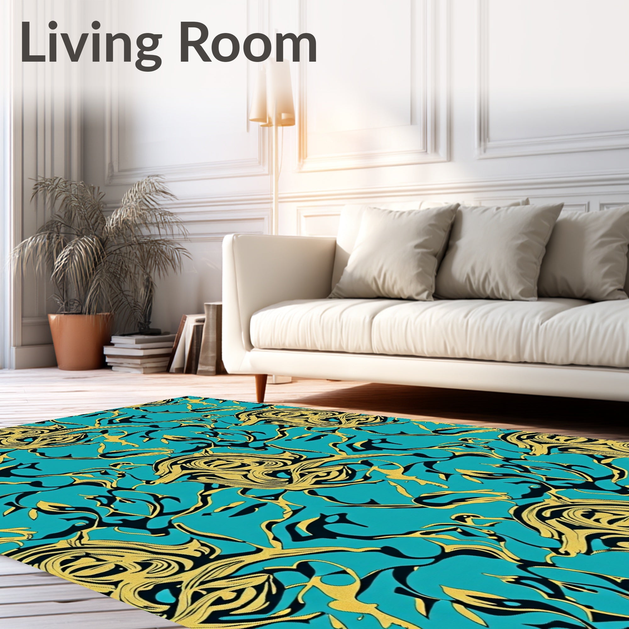 Ultra Soft Area Rug, Non Slip, Stain Resistant, Washable Area Rugs for Living Room, Bedroom, Elegant Swirling Marble Fish Medallion Motif(Turquoise) Overview: