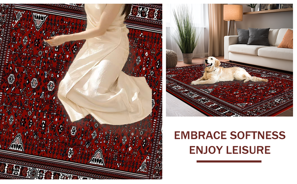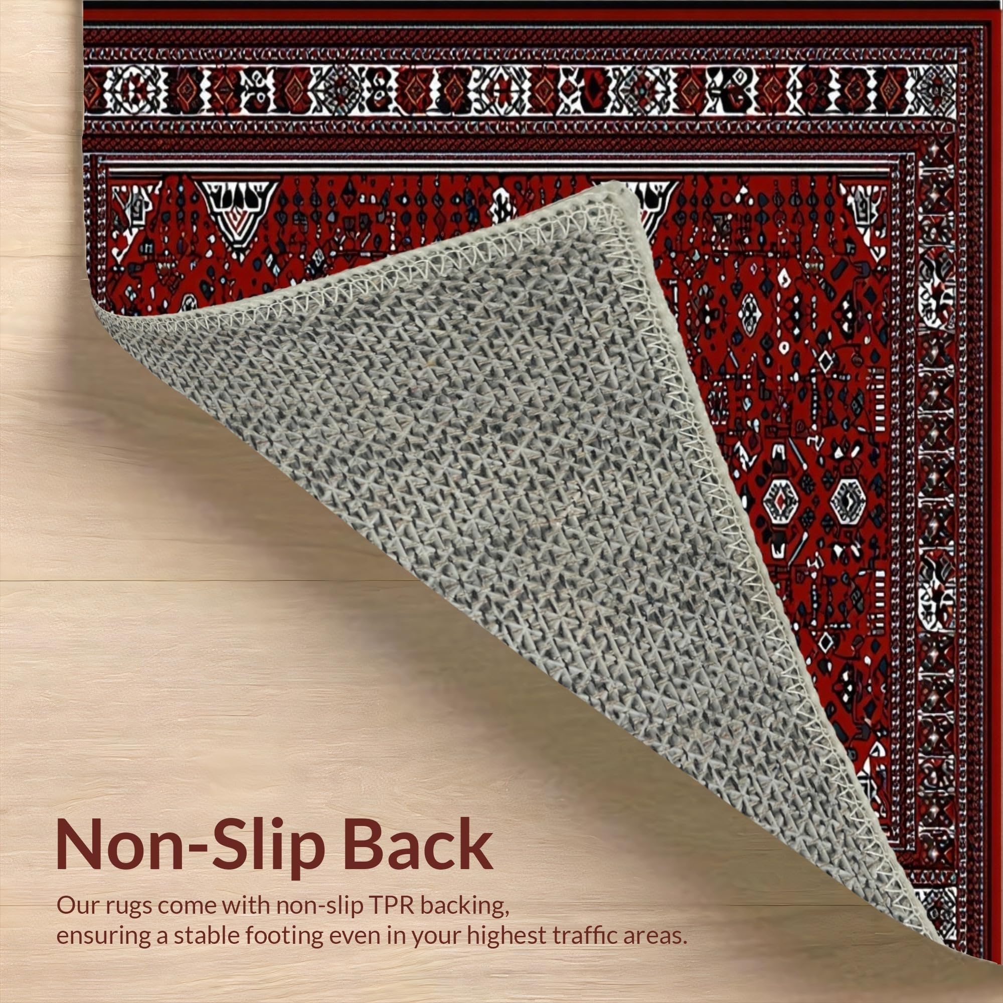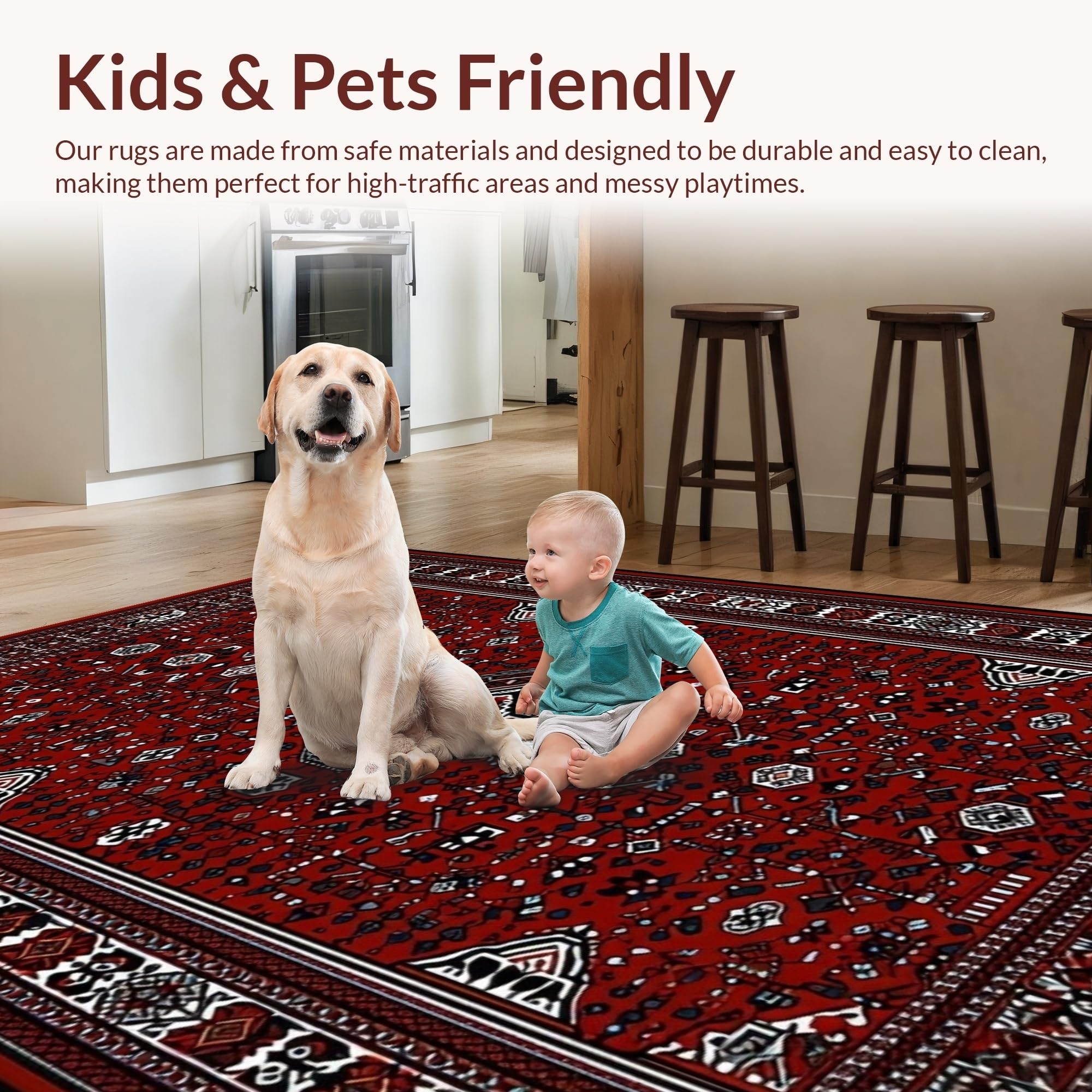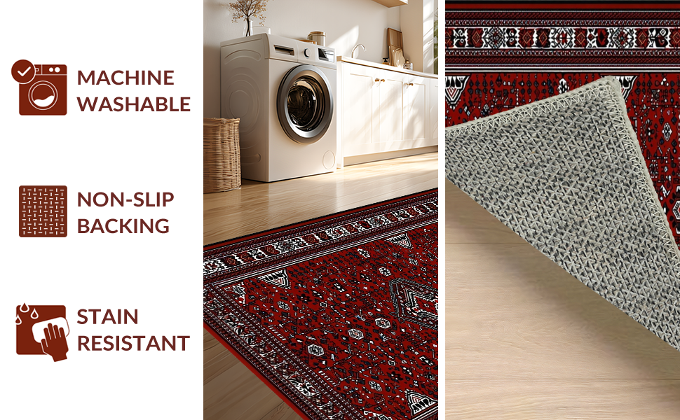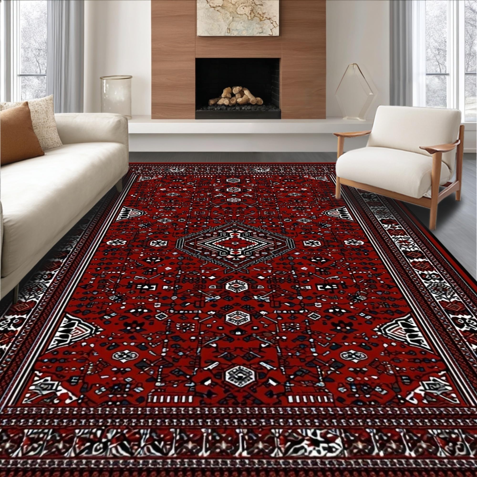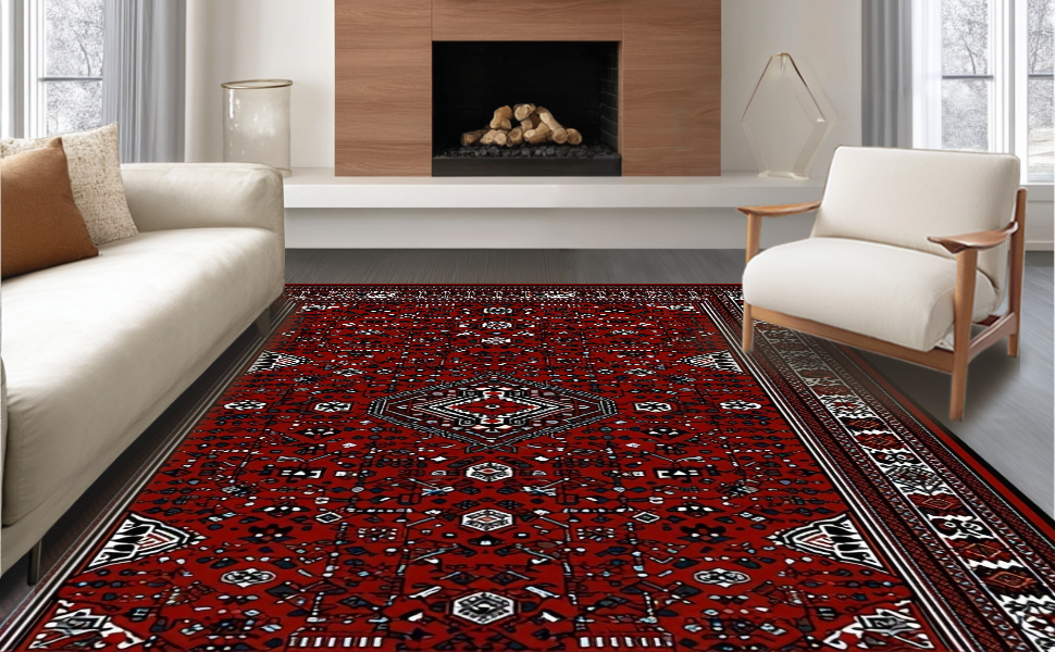 Ultra Soft Area Rug, Non Slip, Stain Resistant, Washable Area Rugs for Living Room, Bedroom, Elegant Symmetrical Geometric Arrangement(Red) Overview: