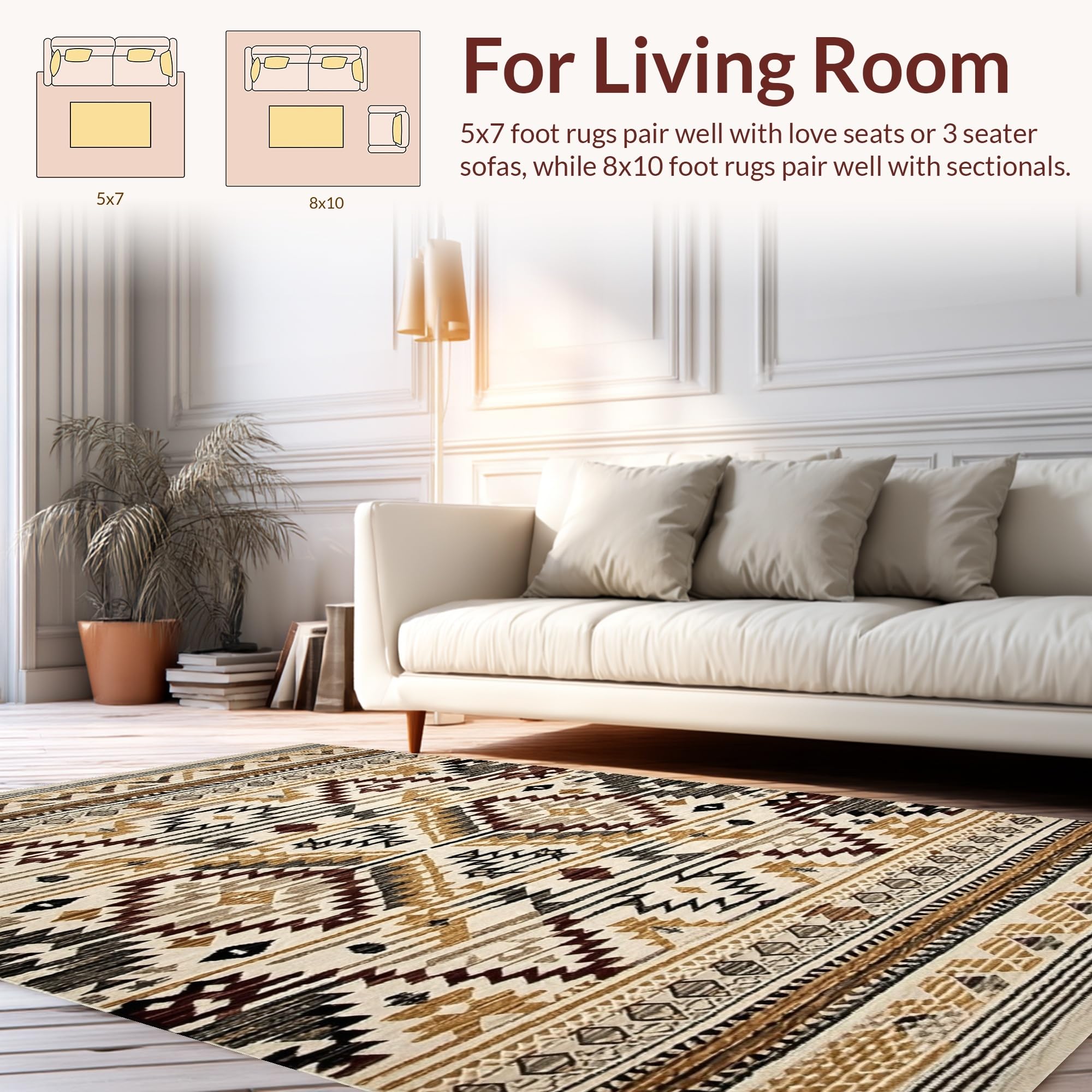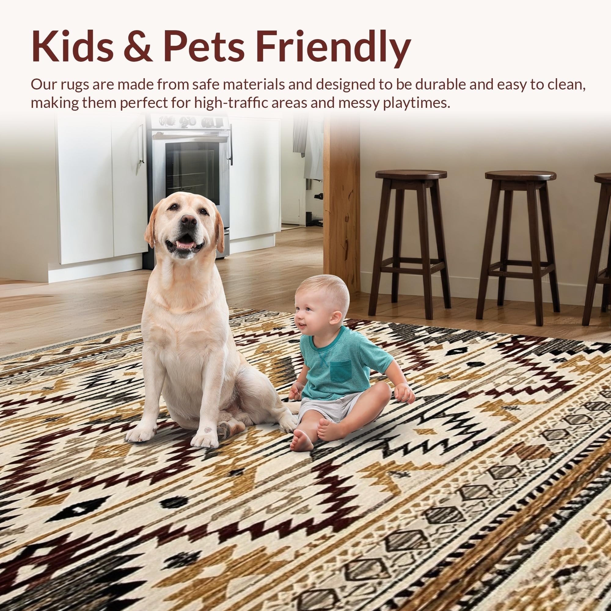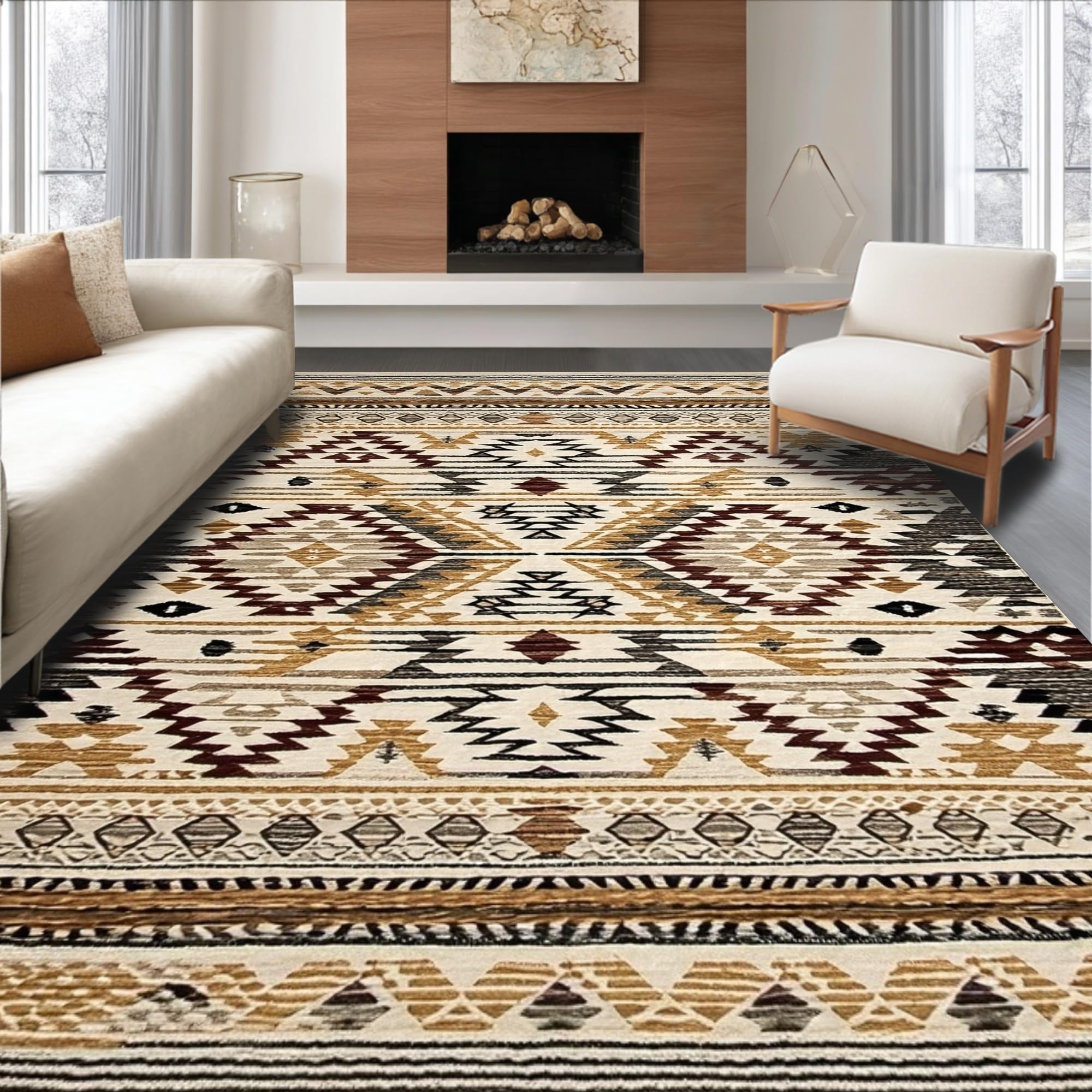 Ultra Soft Area Rug, Non Slip, Stain Resistant, Washable Area Rugs for Living Room, Bedroom, Elegant Symmetrical Grid Design(Beige) Overview: